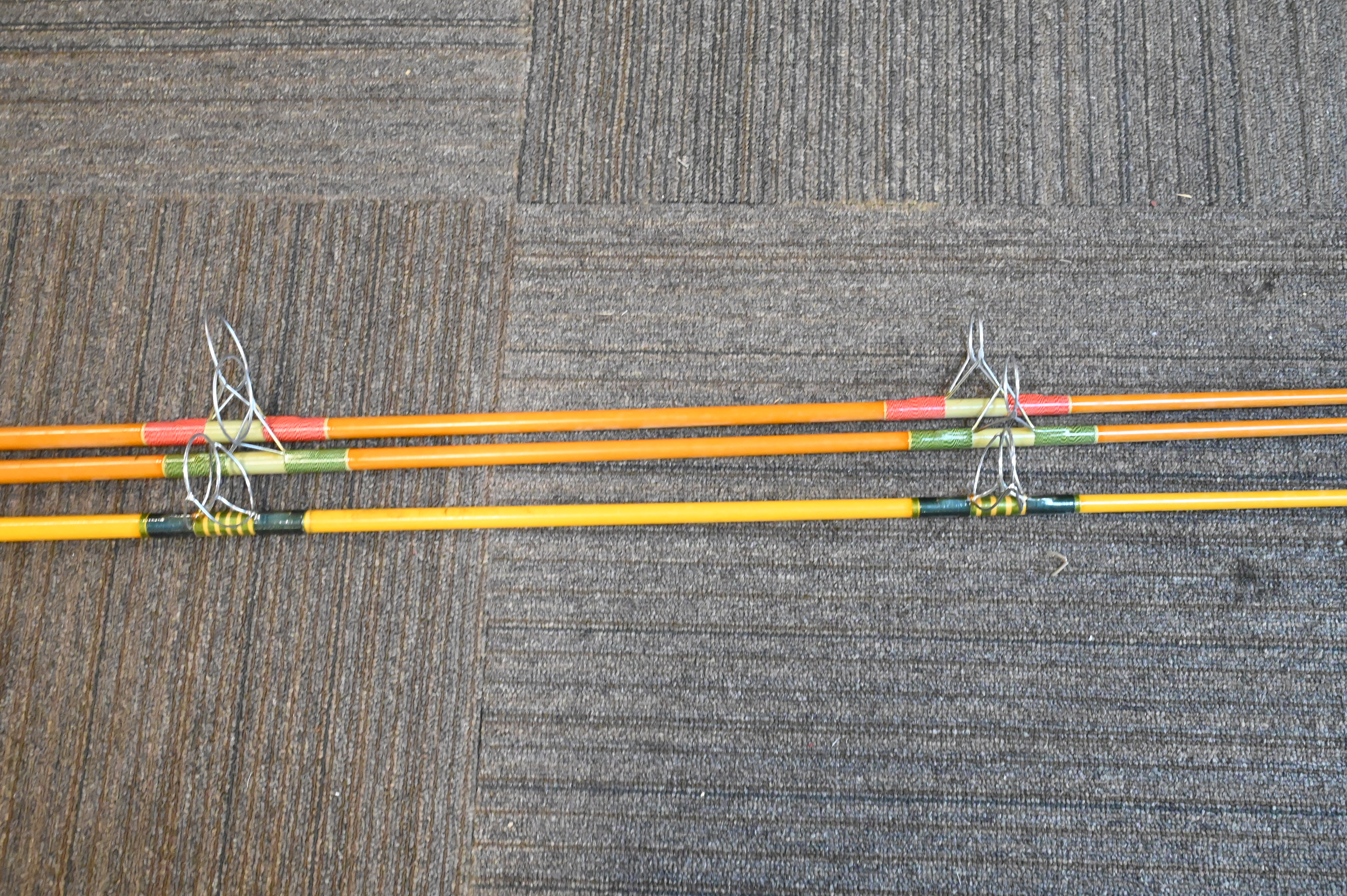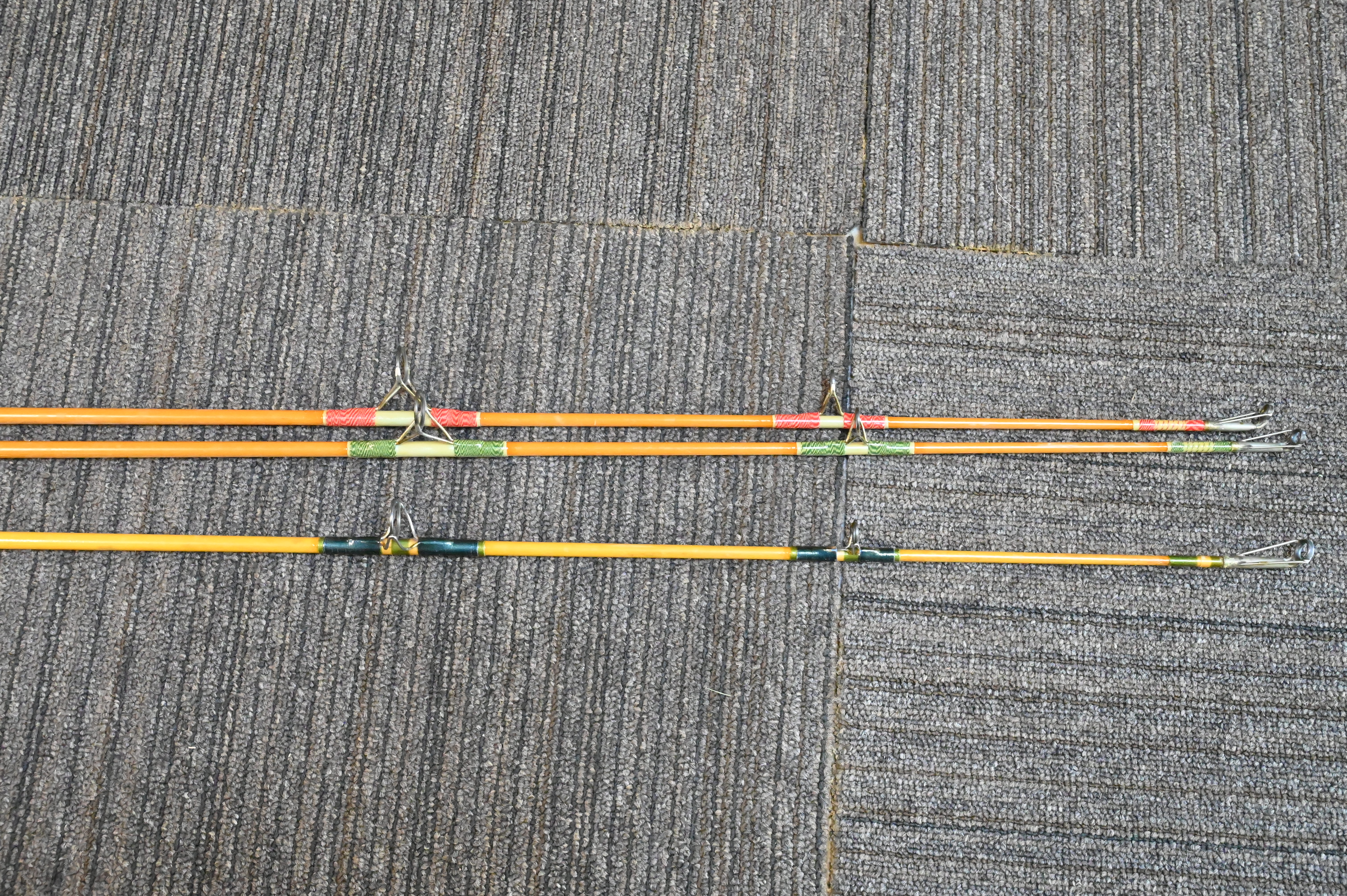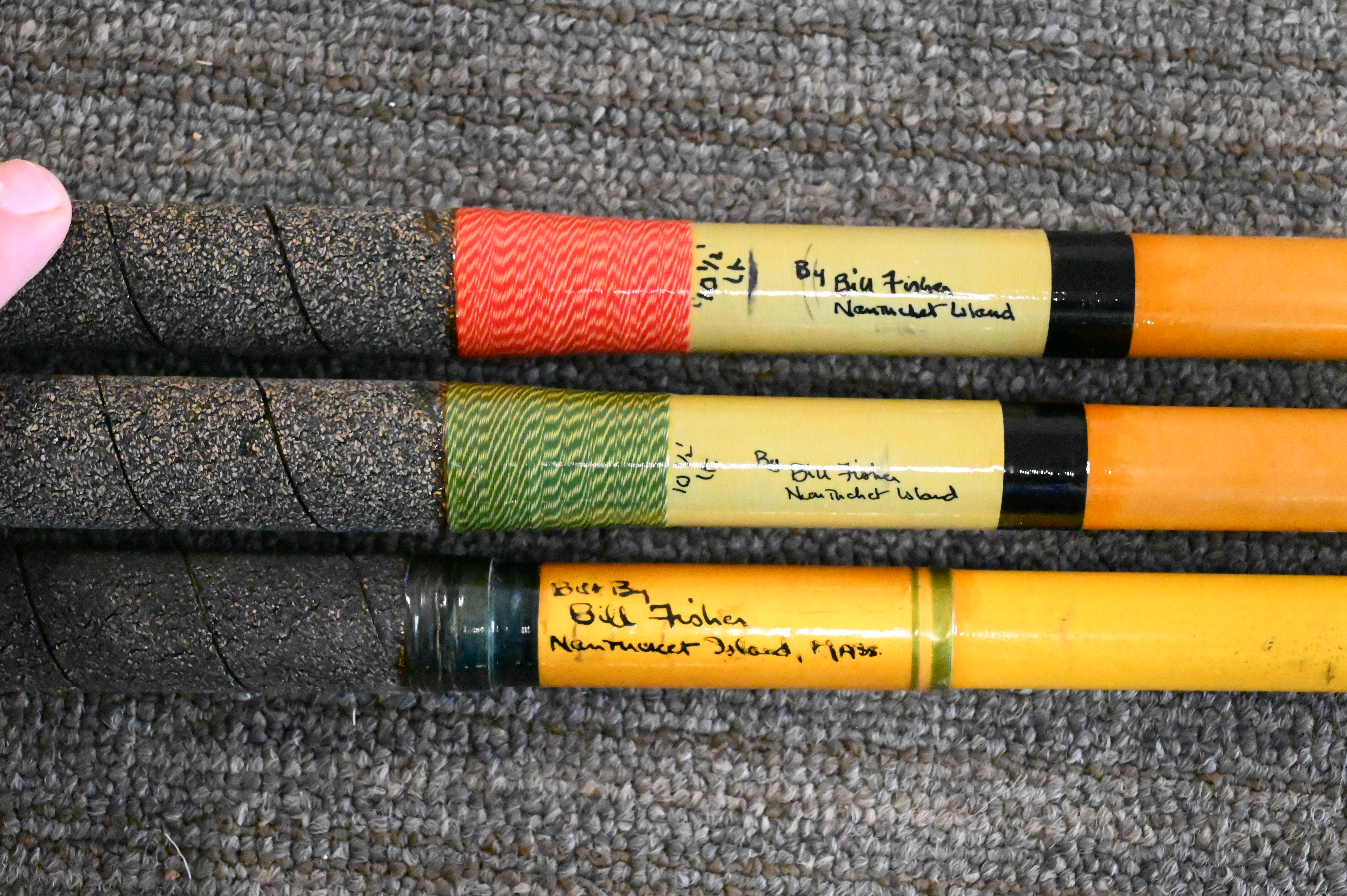 Three Bill Fisher Nantucket Island Custom Surf Casting Rods, length 10 1/2 feet.