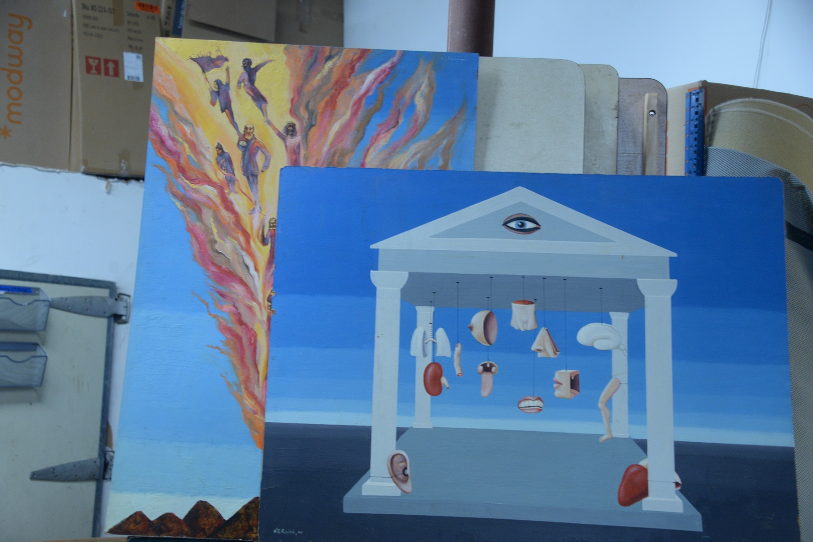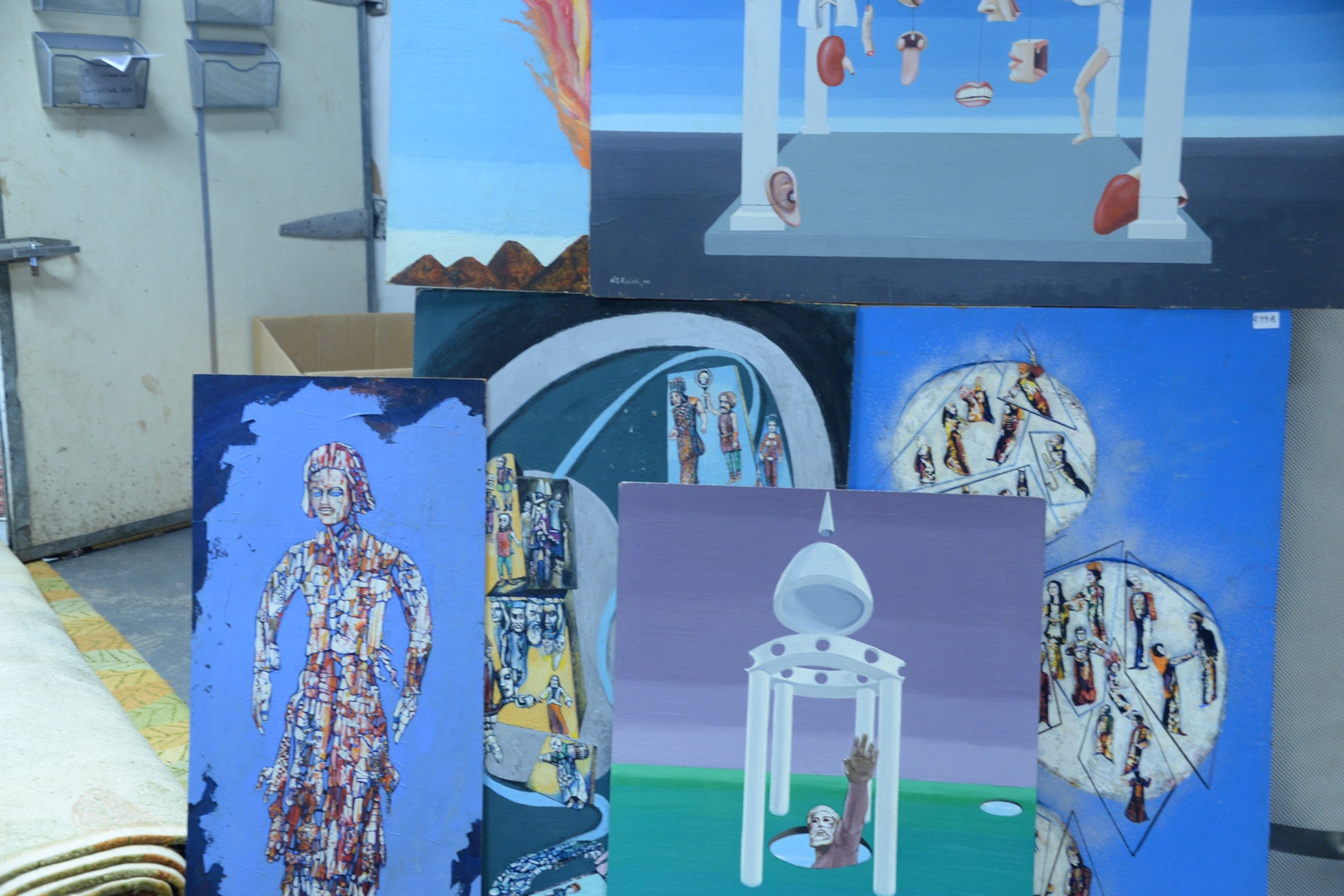 Group of Six Large Nathaniel Reich Acrylics, on Masonite, each signed, 36″ x 48″.