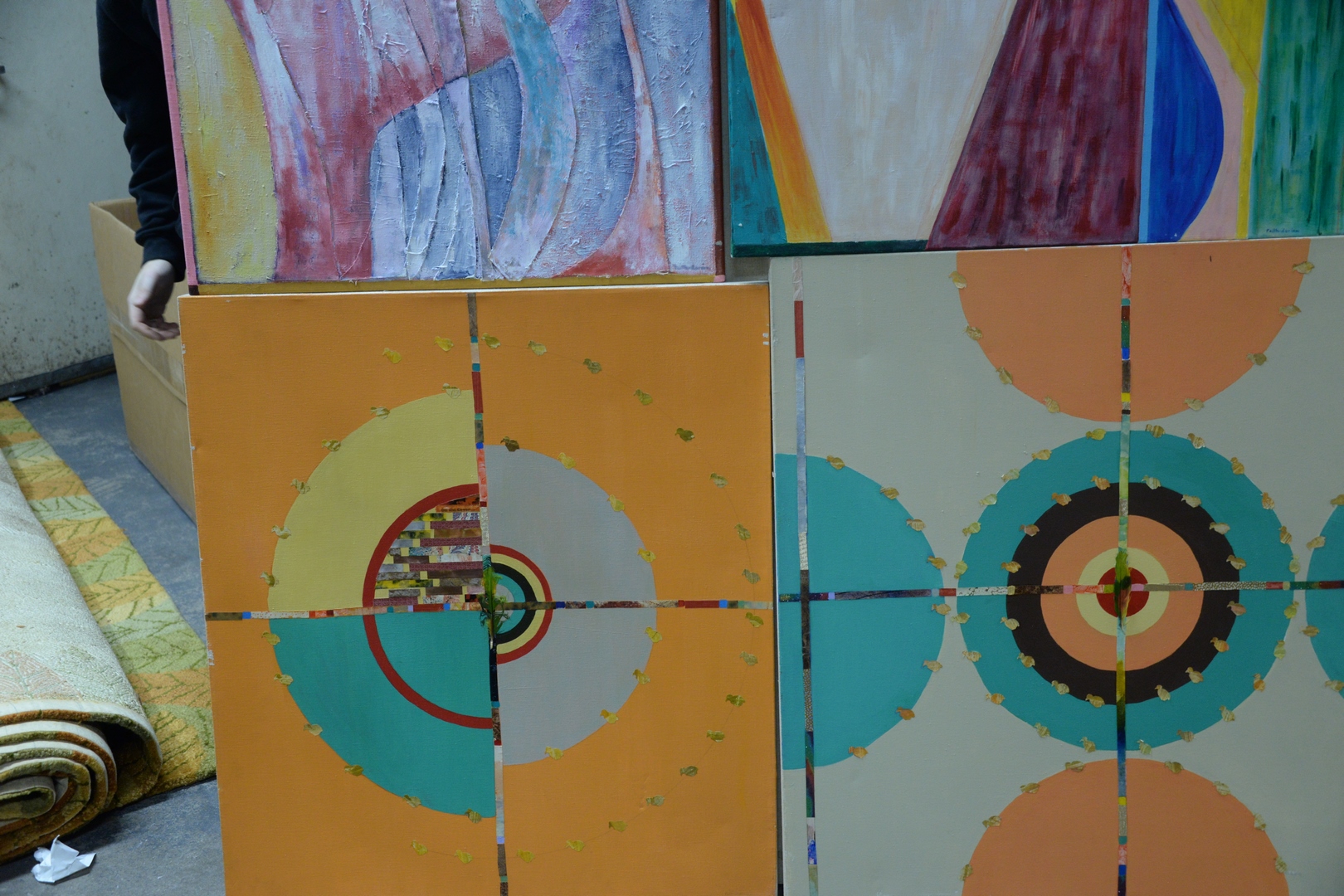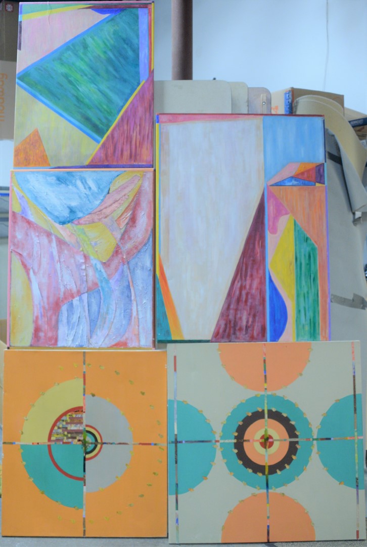 Group of Five Faith Dorian Wright Abstracts, mixed media on canvas, each signed and titled on stretcher bar, largest 40″ x 40″.