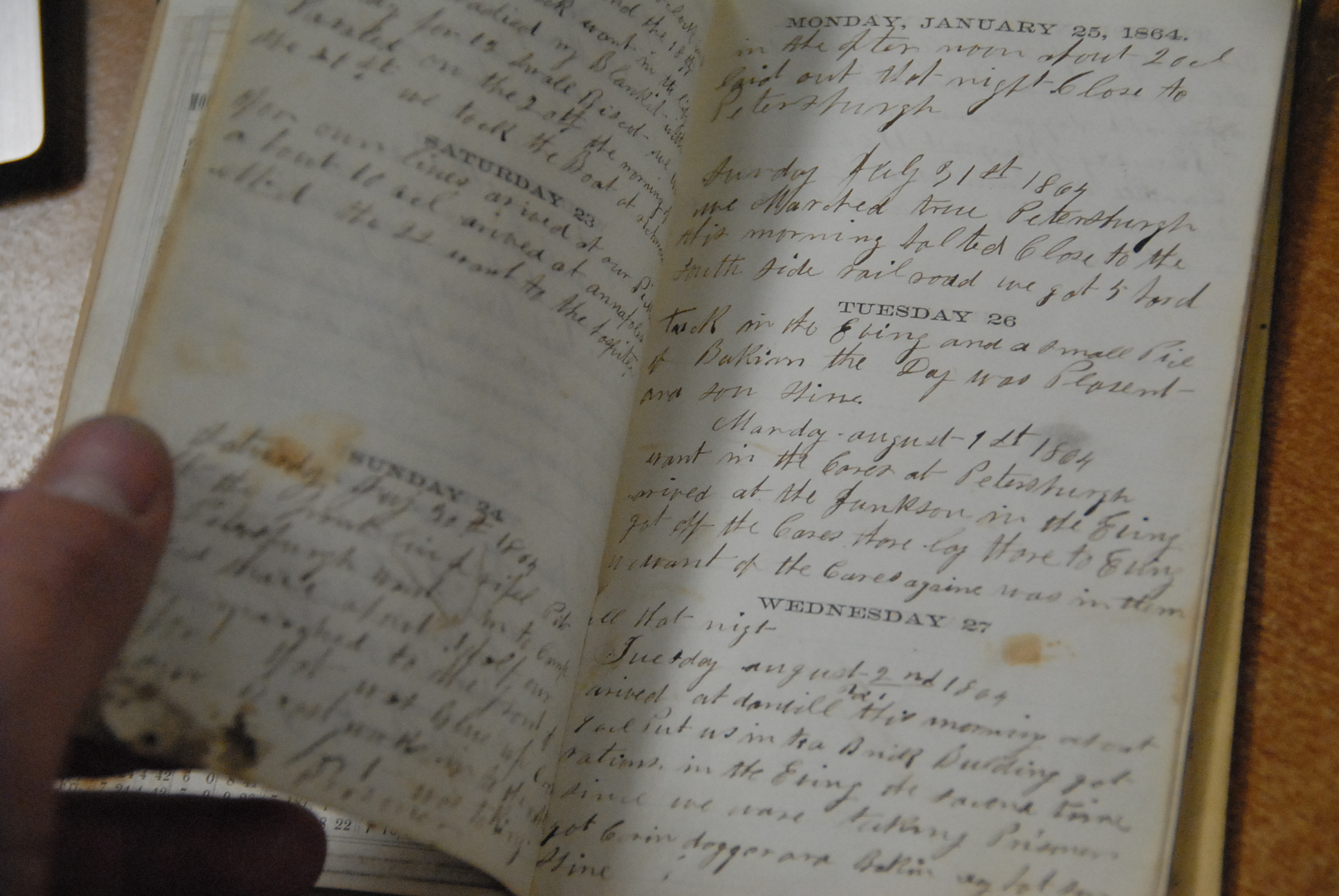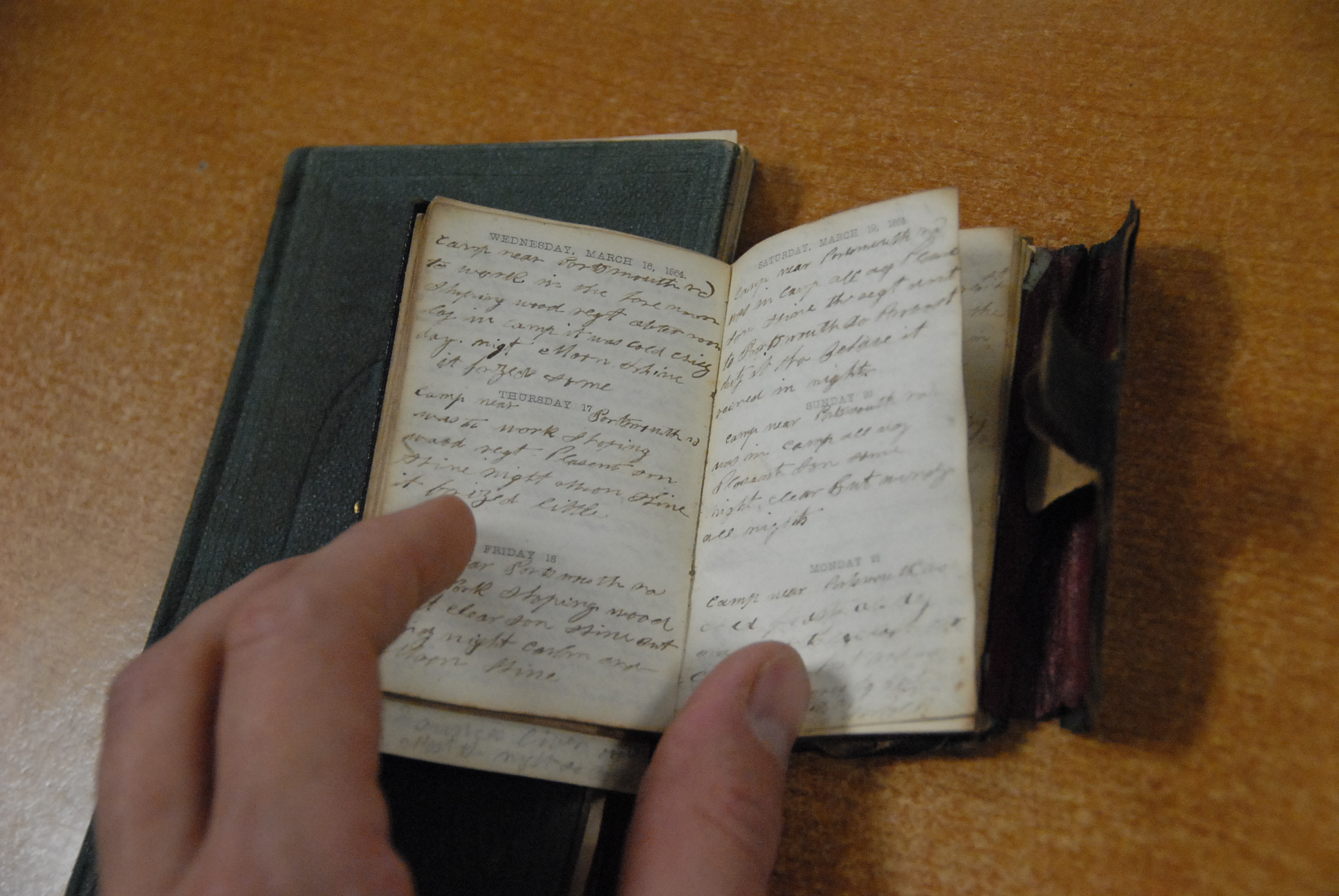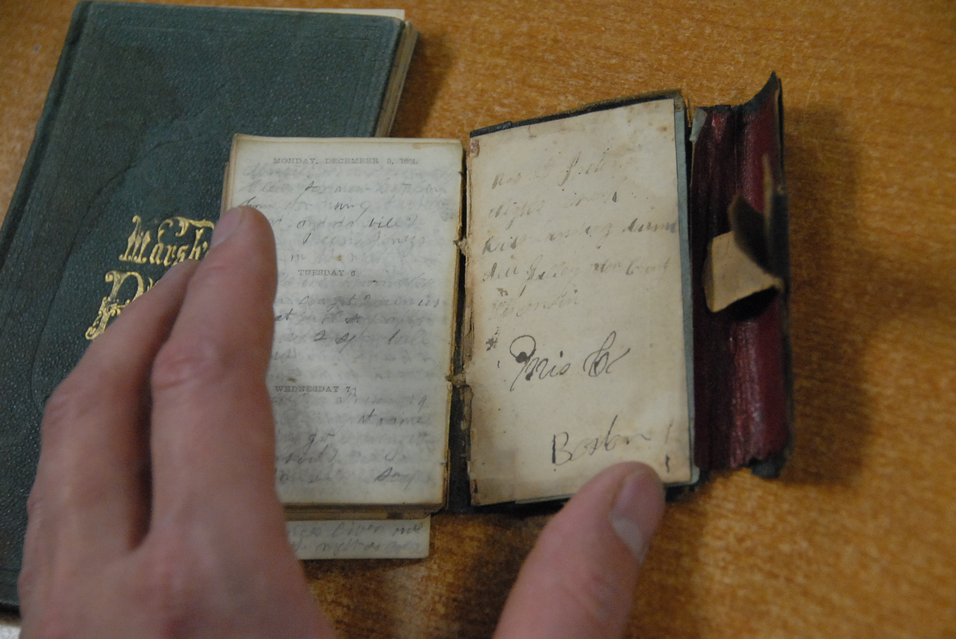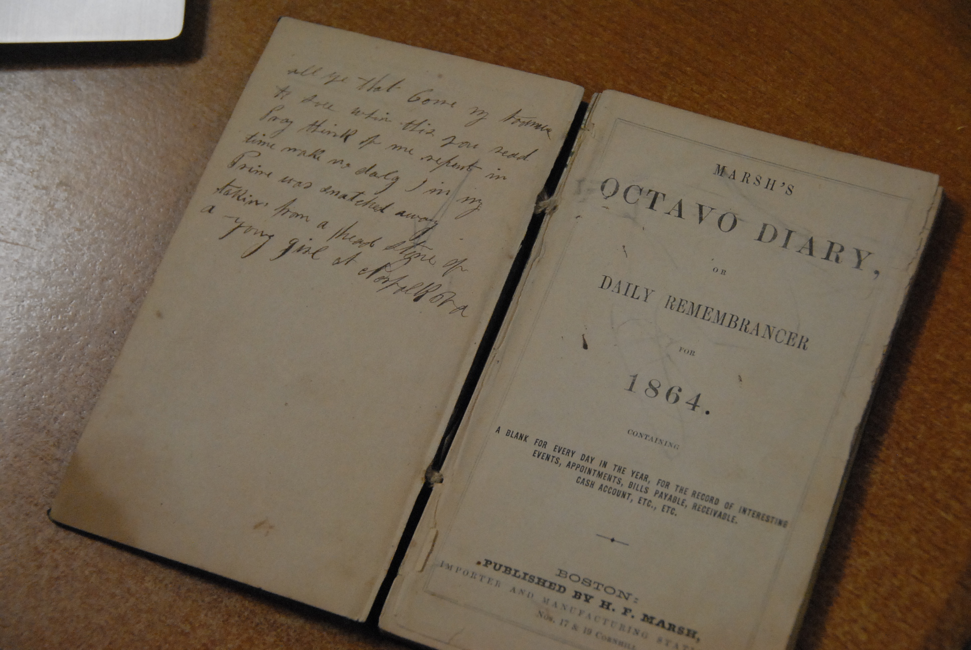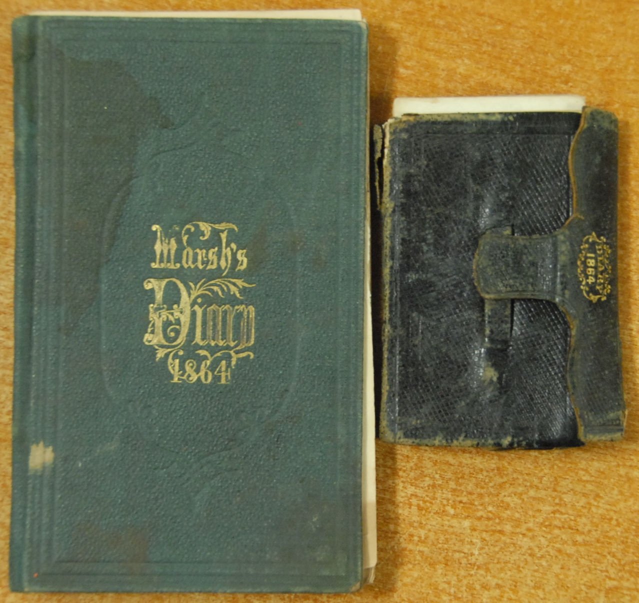 Two 1864 diaries to include a pocket diary written from January through December of 1864 by a soldier original from Rhode Island stationed in camp near Portsmouth, MA, then to Norfolk, MA, and Daniel, MA and a Marshs’ Diary 1864 Octavo diary written January 1st and redated for 1865 January to February.