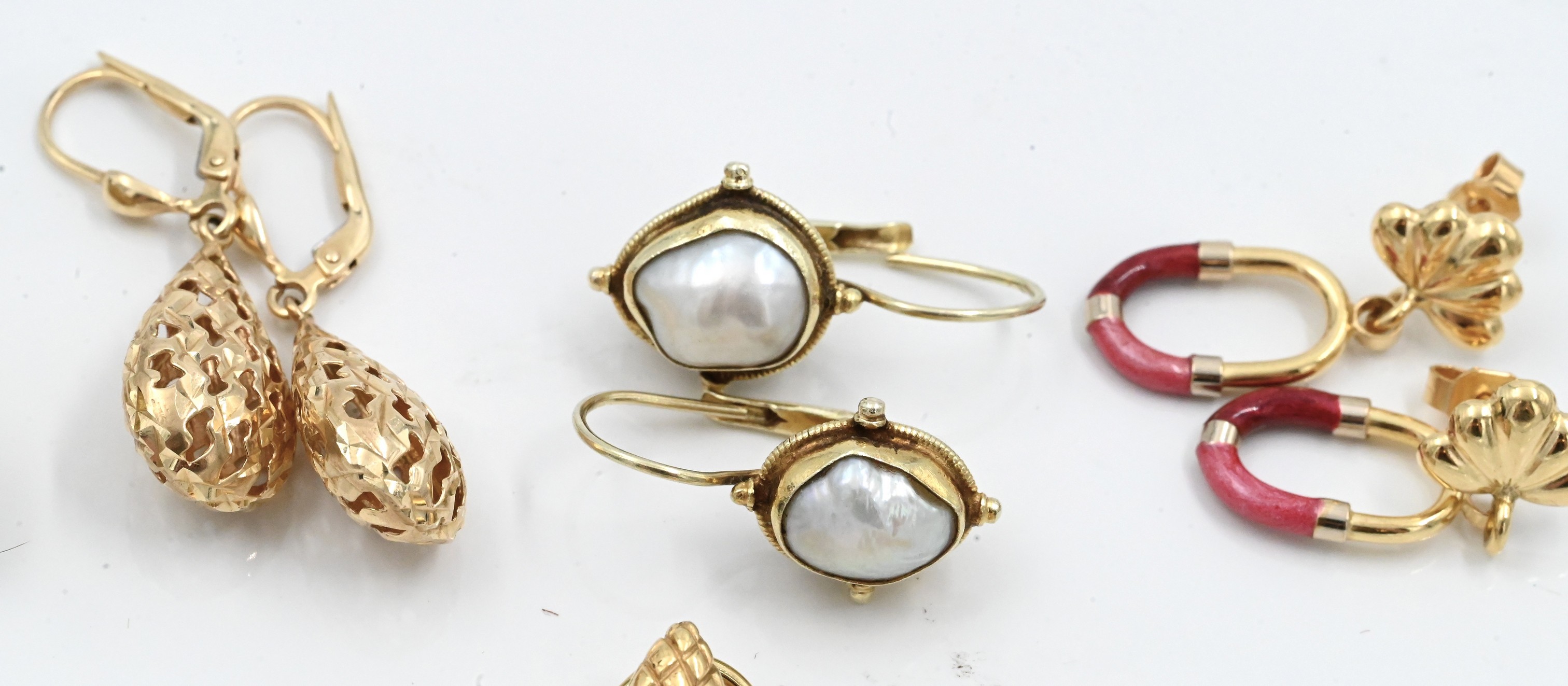 along with a single 14K clip earring and one 18K clip earring