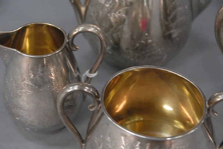 Four piece English silver tea set with floral design. 53.8 t oz.