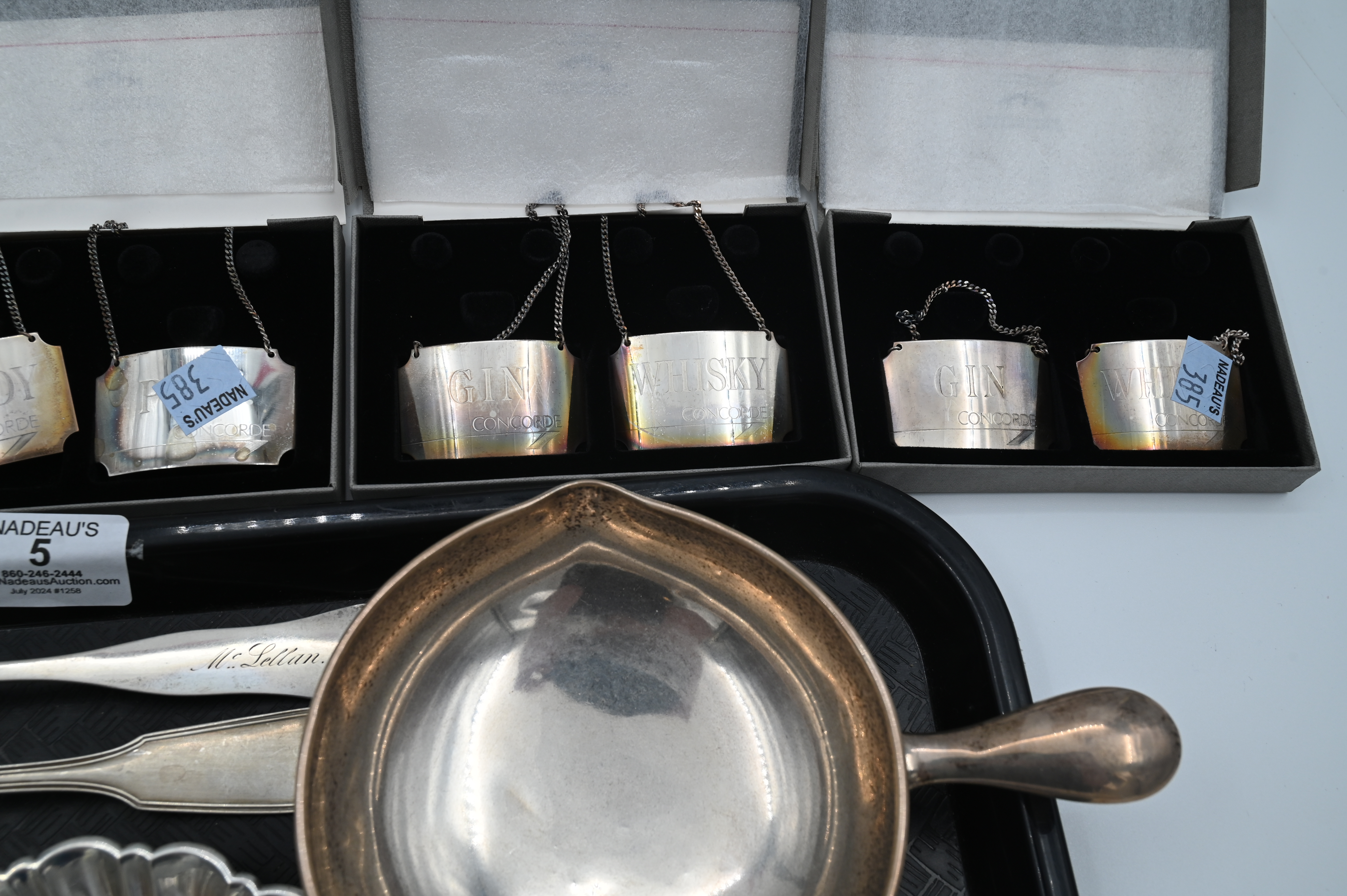 to include four sets of decanter labels, two shell form dishes, two serving spoons, four ashtrays, and handled bowl