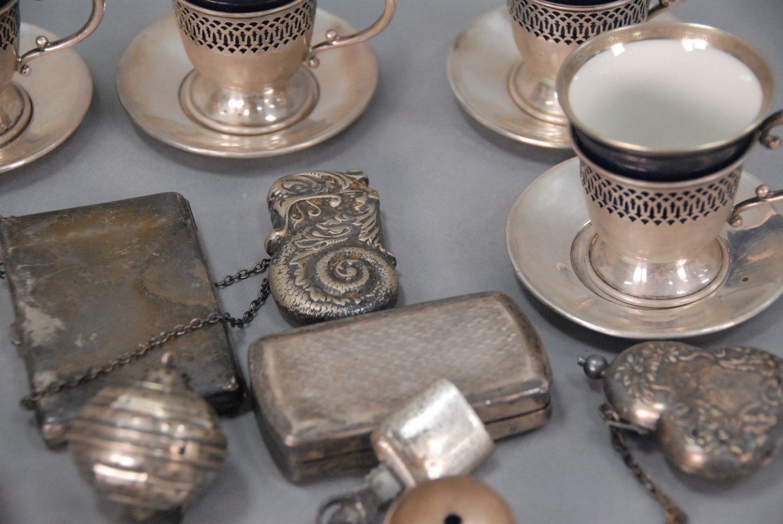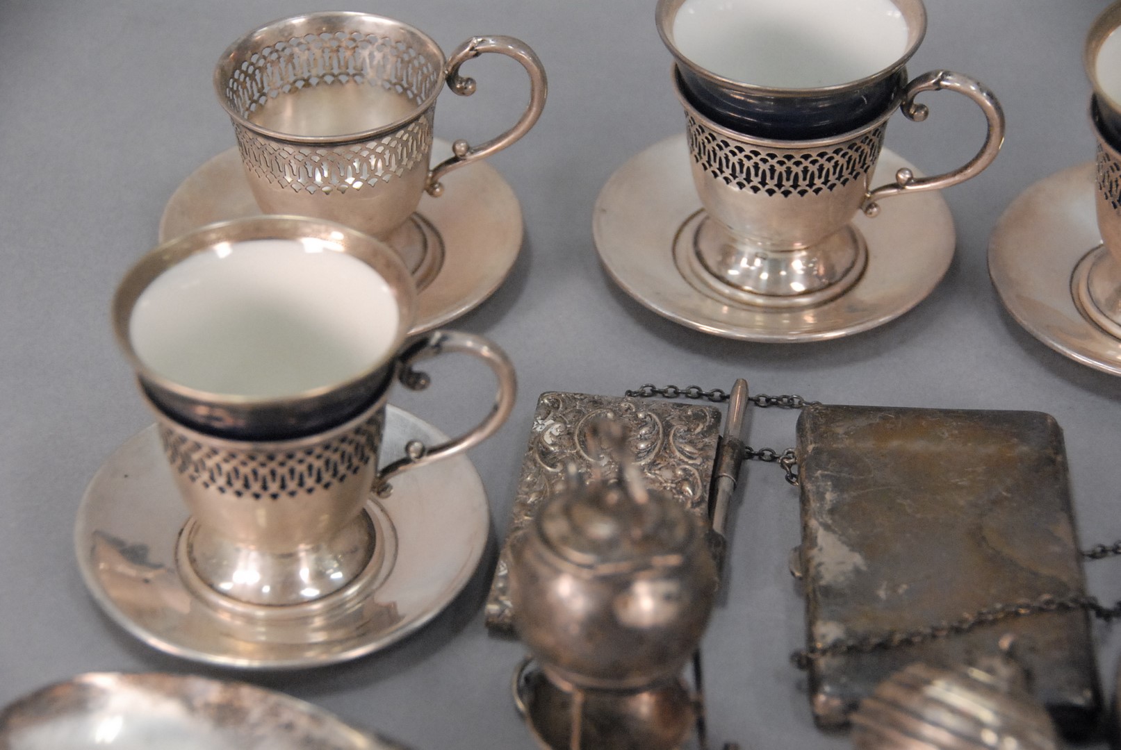 Sterling silver lot to include cups and saucers, Lenox insert missing, tea balls, boxes, shoe horn, etc.