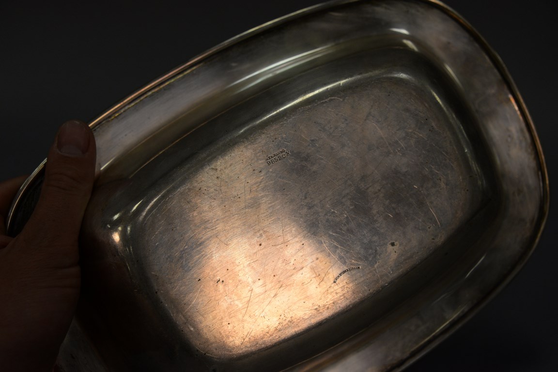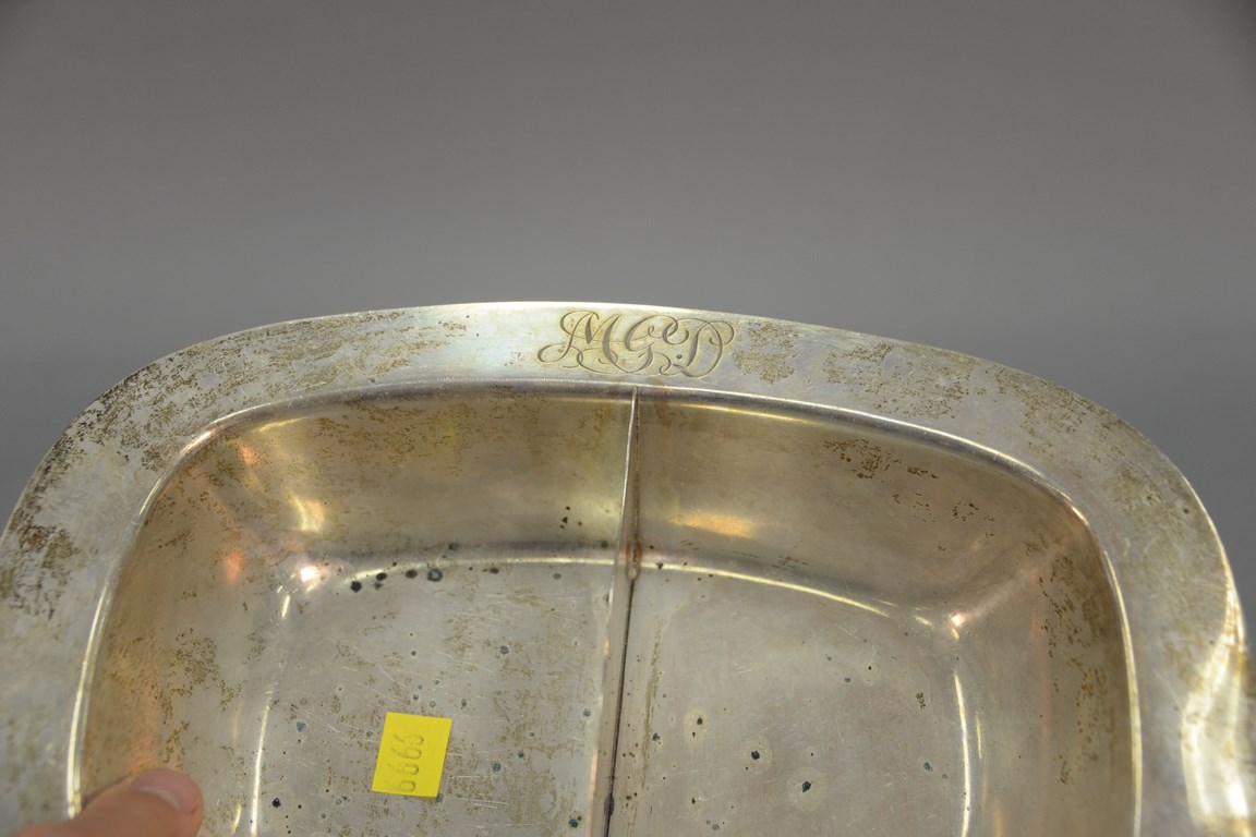 Sterling silver two section serving dish, lg. 11 in. 19.3 t oz.