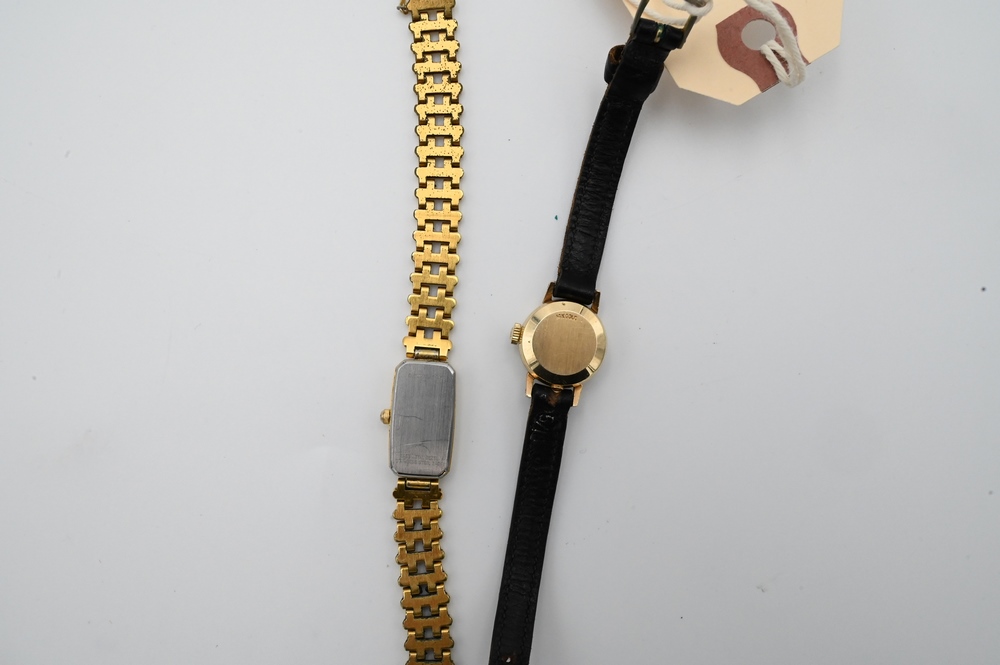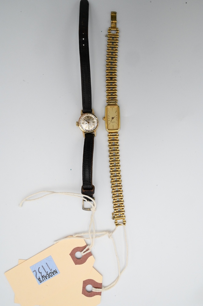 Two Ladies Wristwatches, 14 karat gold Omega along with a Hamilton.
