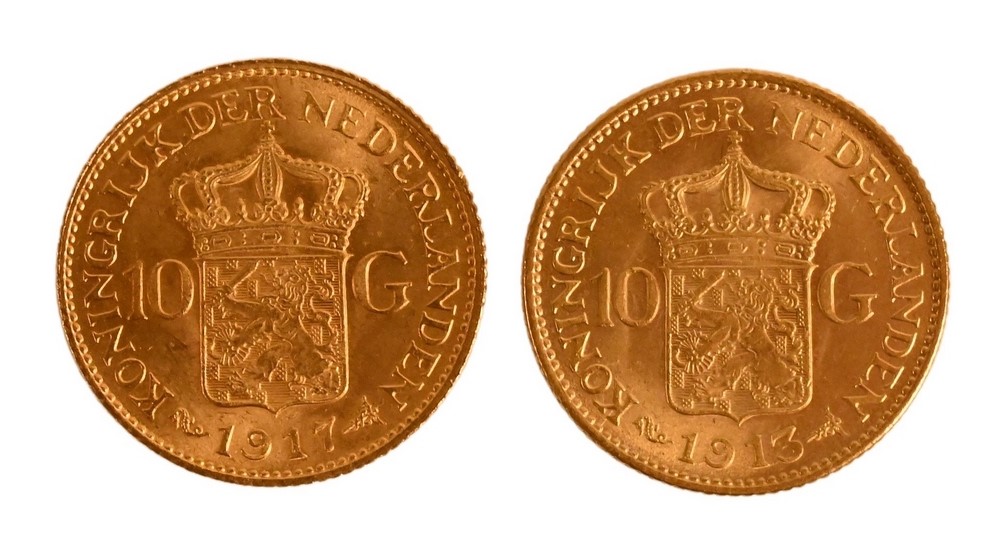 Lot 5: Two Netherlands 10 Gulden, 13.5 grams.