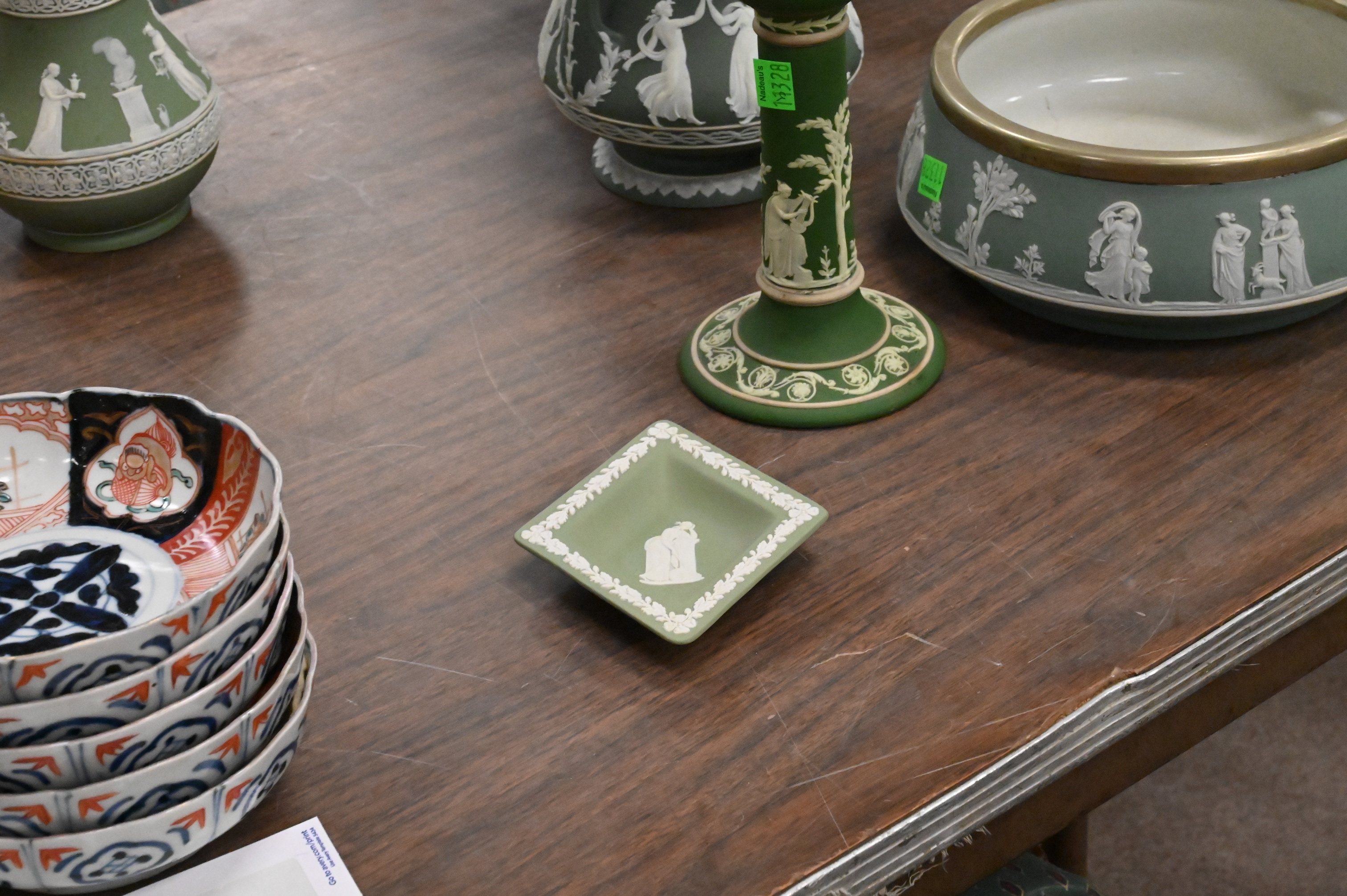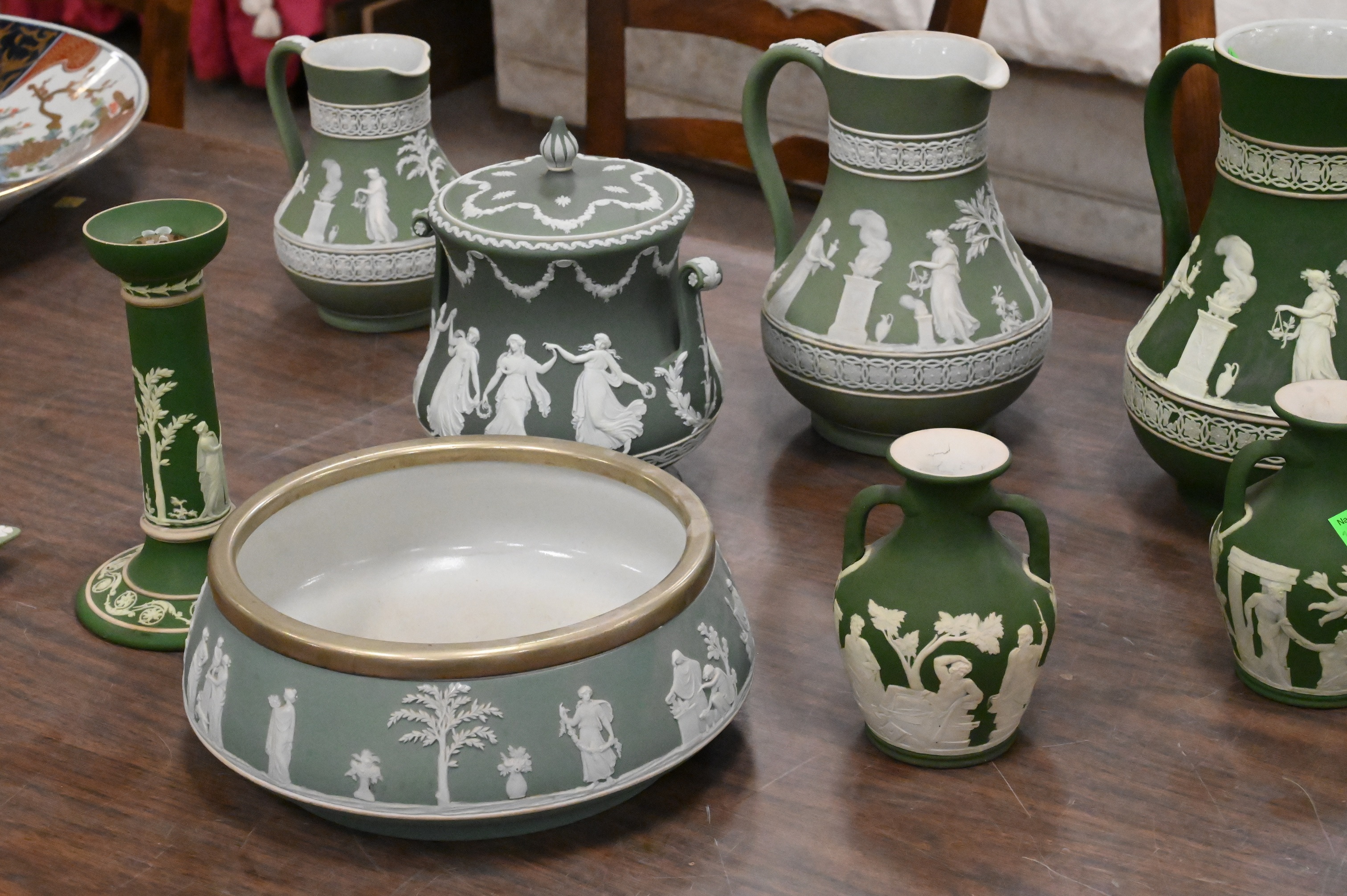 Lot 50: 13 Piece Green Wedgwood Jasperware Group