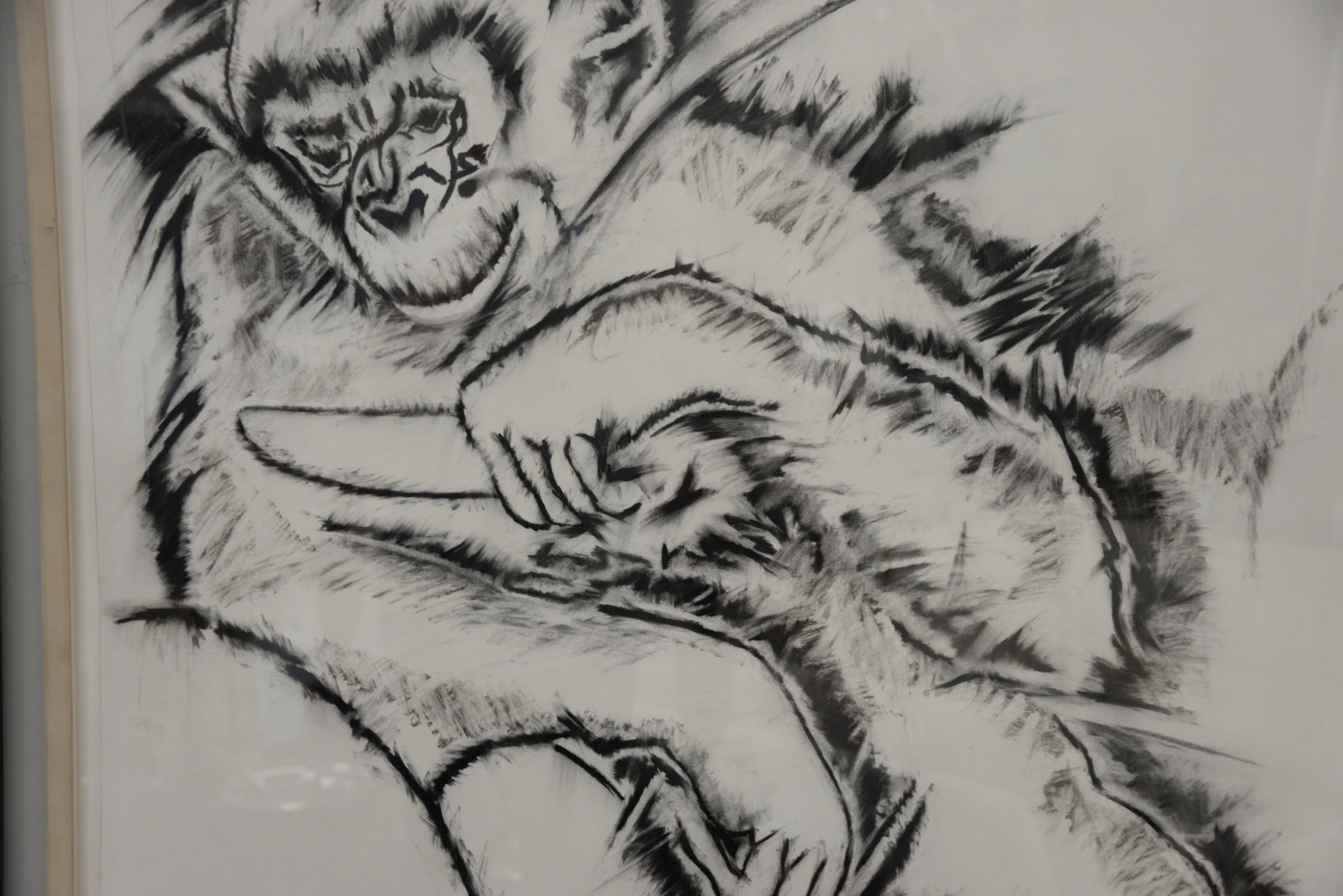 Bill Copley (American, b. 1946), Untitled (Chimpanzee), 1983, charcoal on paper, unsigned, 48″ x 38″.