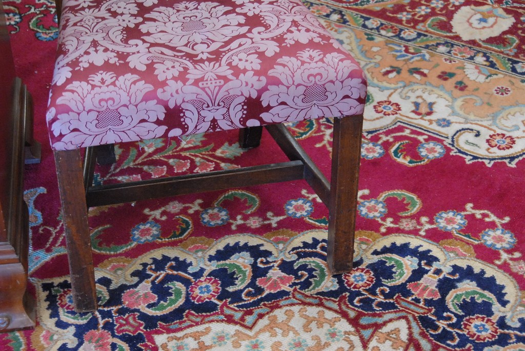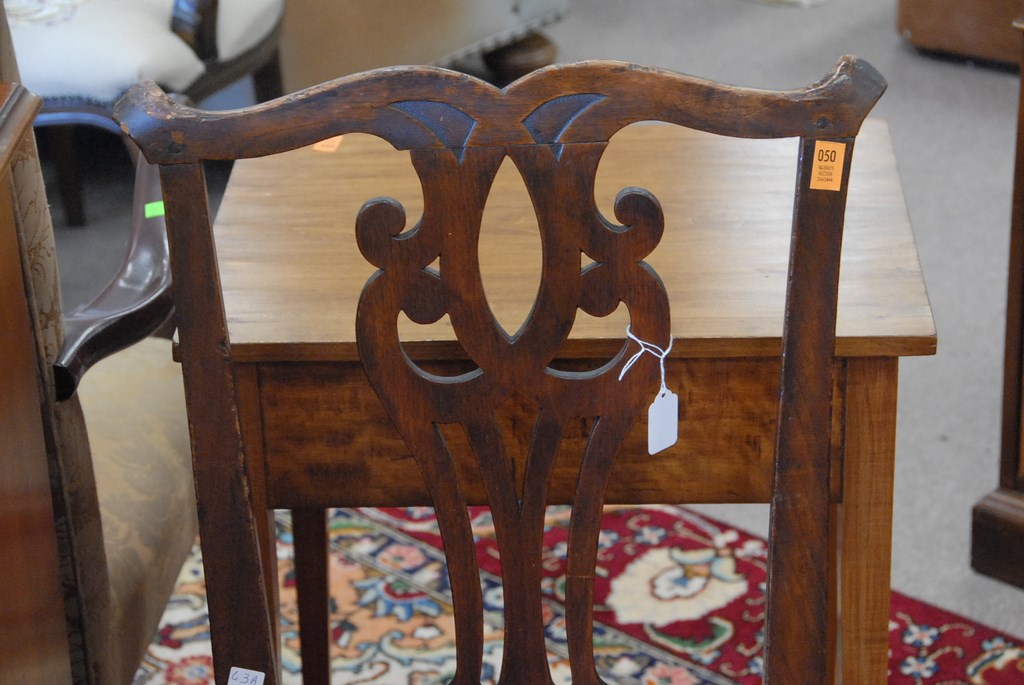 Lot 50: Chippendale mahogany side chair with pierced splat and fully upholstered seat on square legs, 18th century.