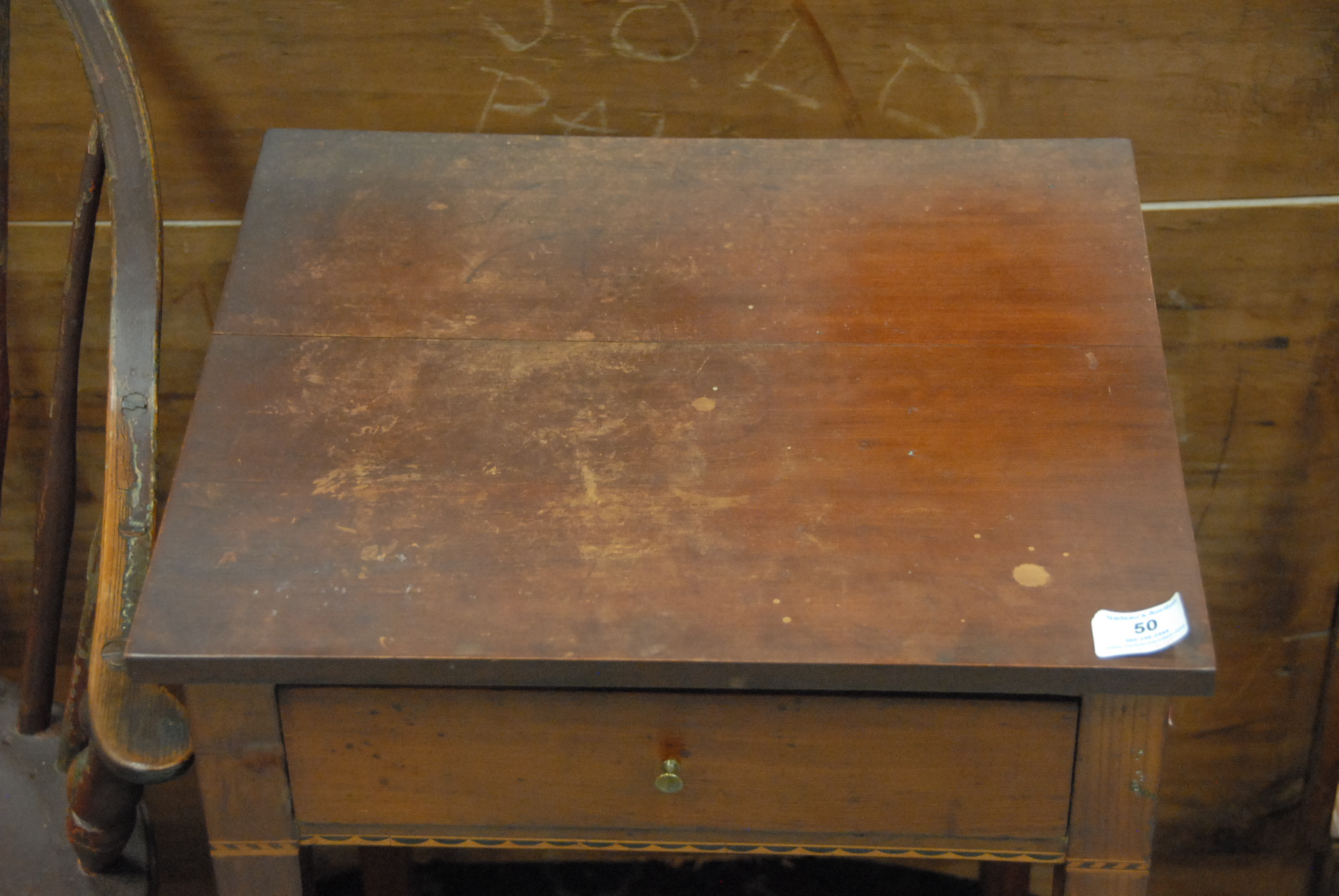 Federal cherry stand having one drawer and inlaid edge, all set on square tapered legs, circa 1790-1810. ht. 28 in. top: 15 x 17 Provenance: Property from the Estate of Elizabeth and Edward Wallace of The Tracy House in Meriden, Connecticut.