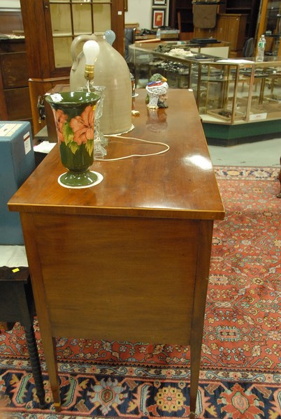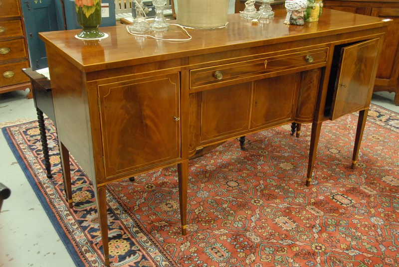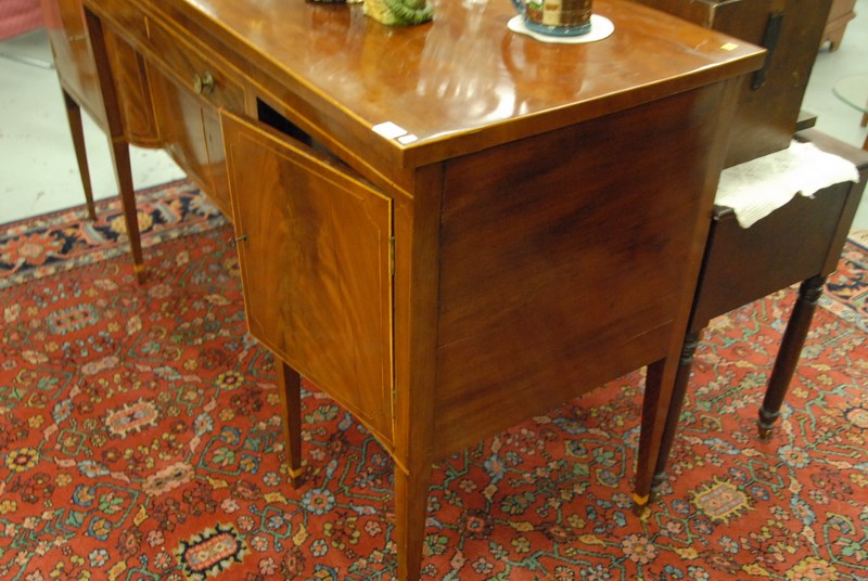 Lot 50: Federal mahogany sideboard having one central drawer over two doors flanked by two doors, set on square tapered legs with line inlay…