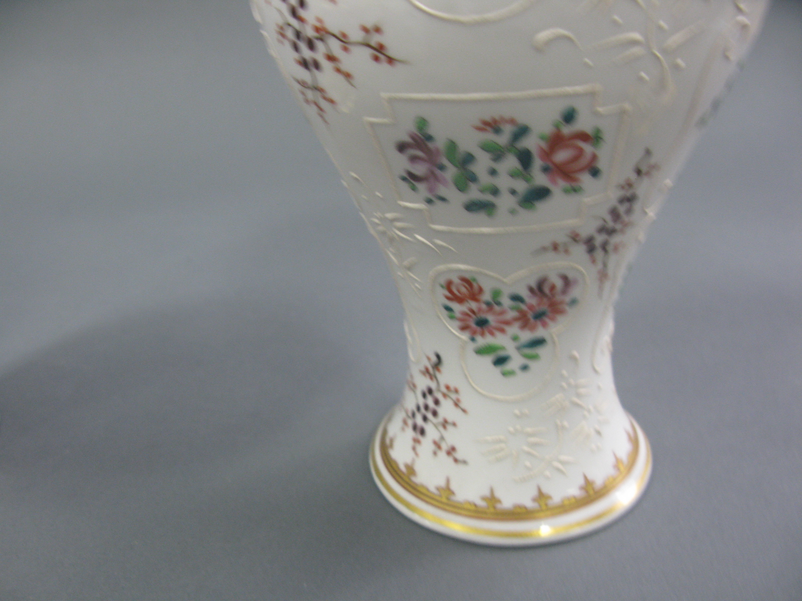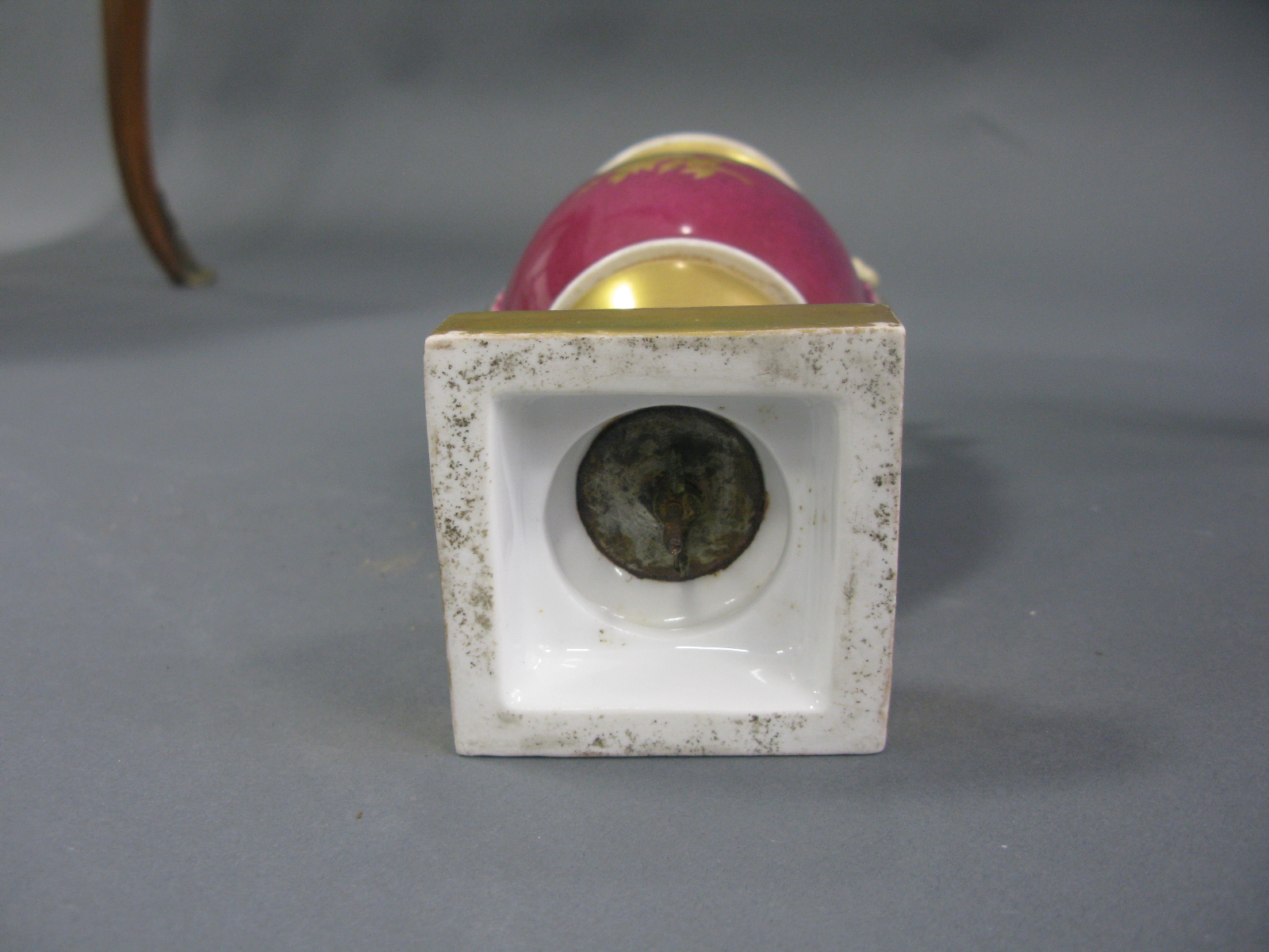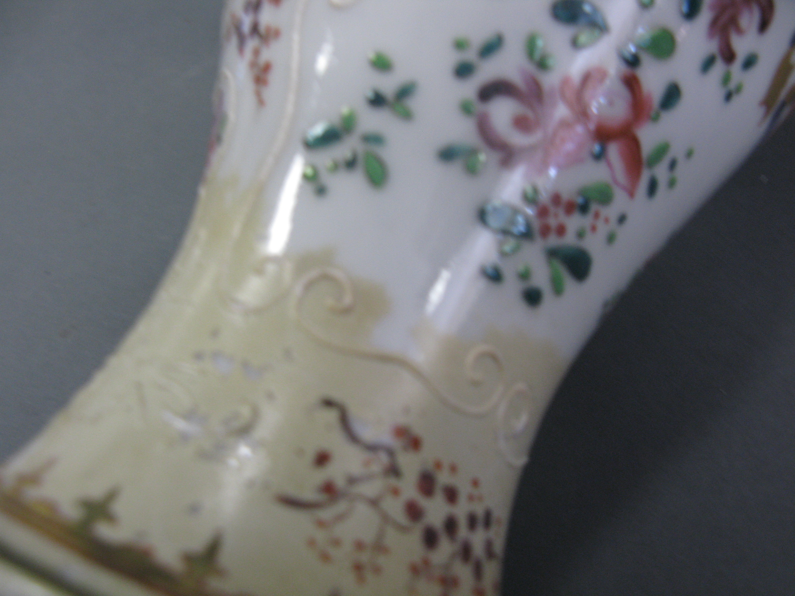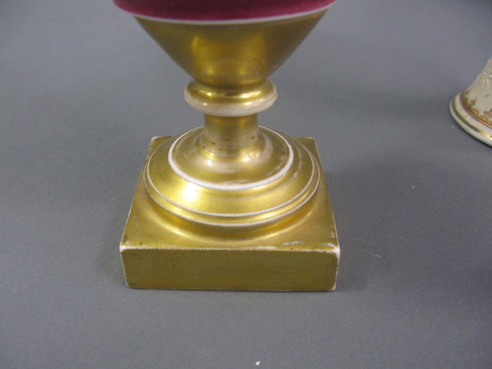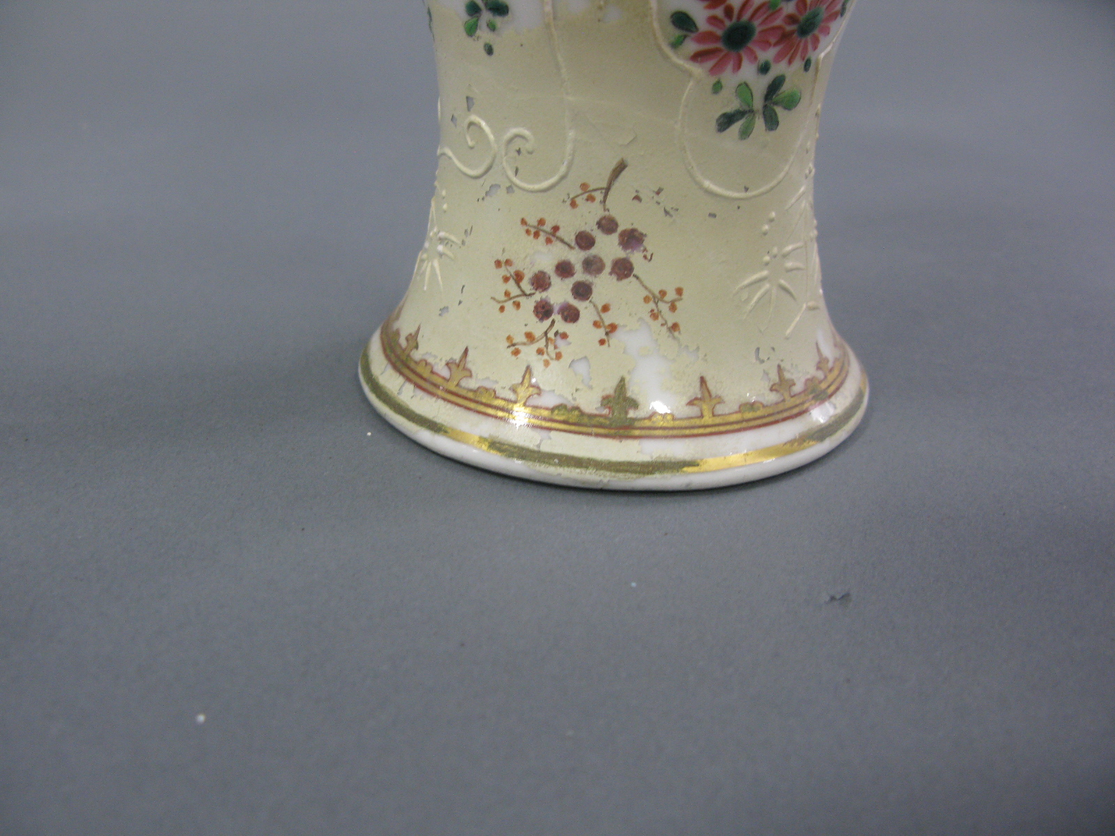 Five piece lot 3 Samson porcelain vases with foo dog finial tops imperfections and pair of French porcelain urns.