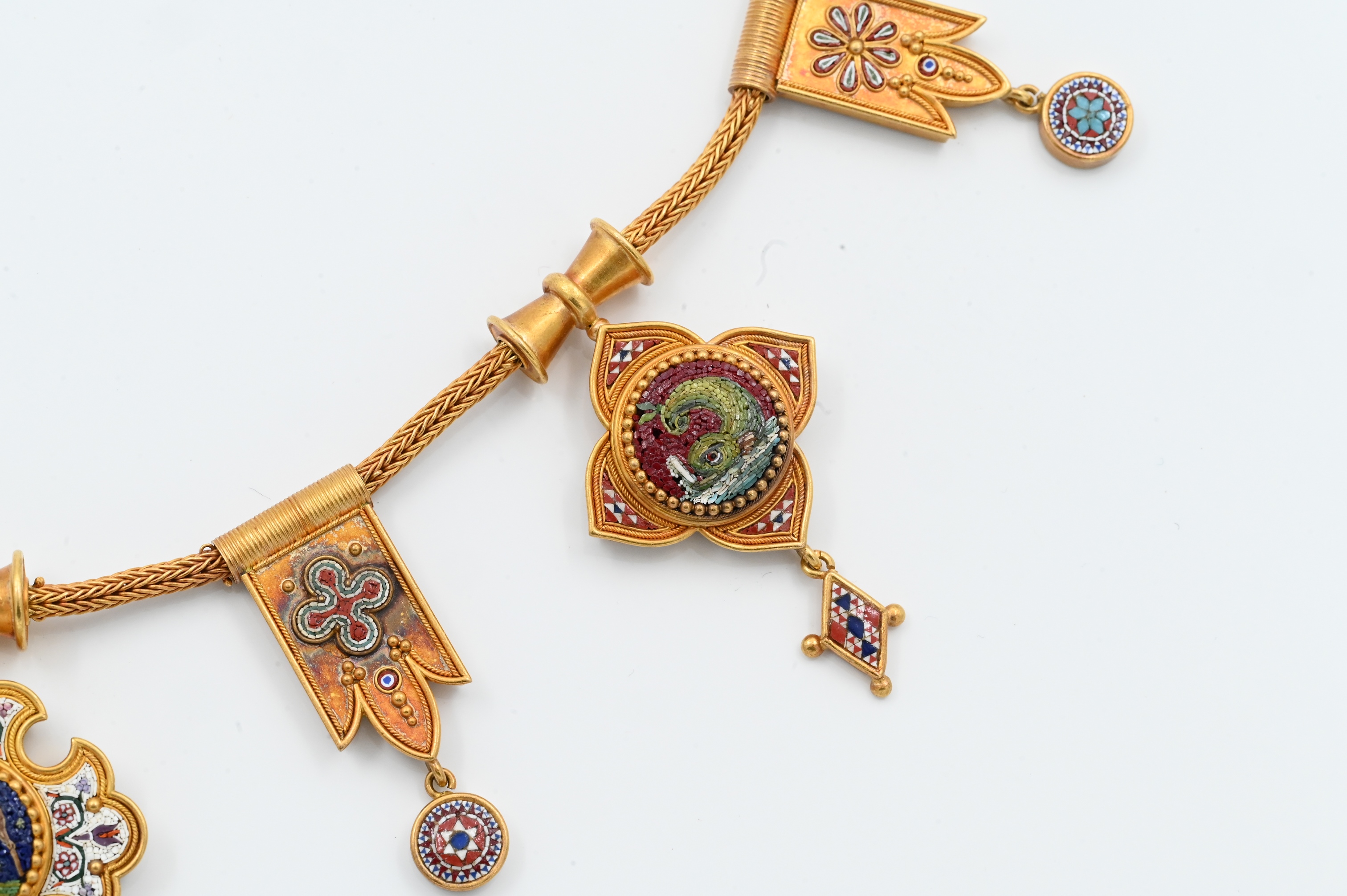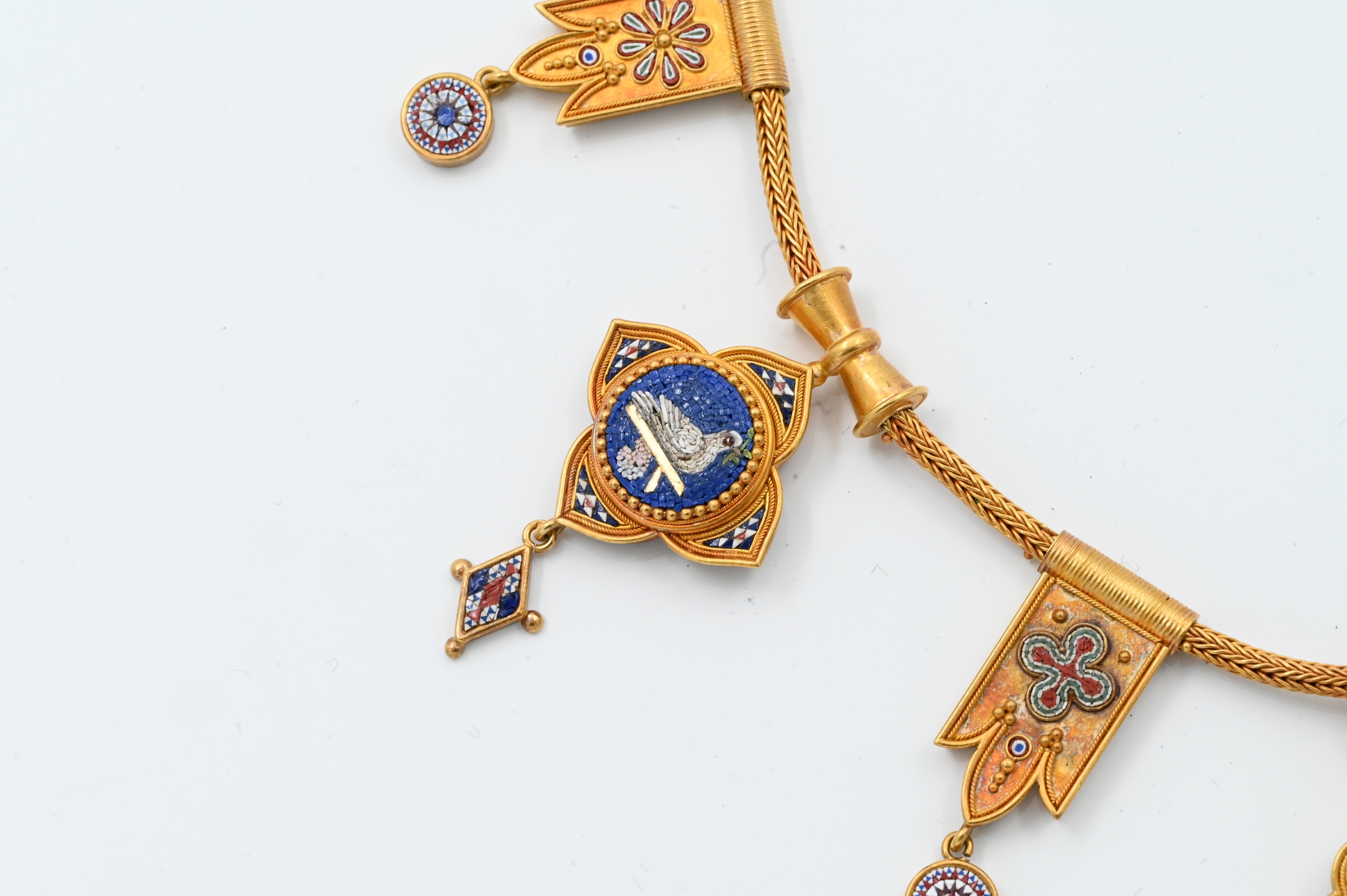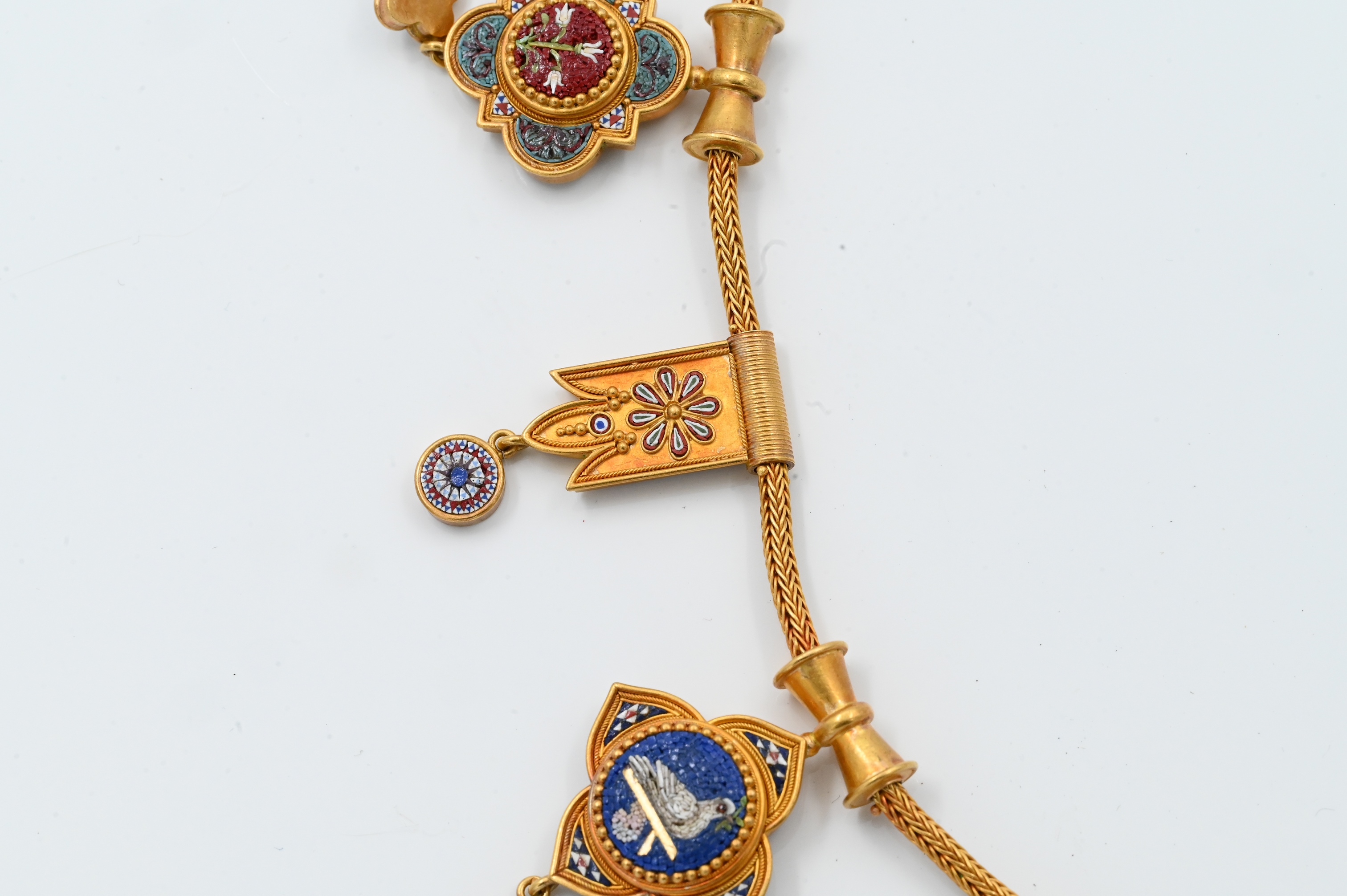 Grand Tour 18K Yellow Gold Micro Mosaic Necklace Attributed to Antonio Civilotti (1798-1870)