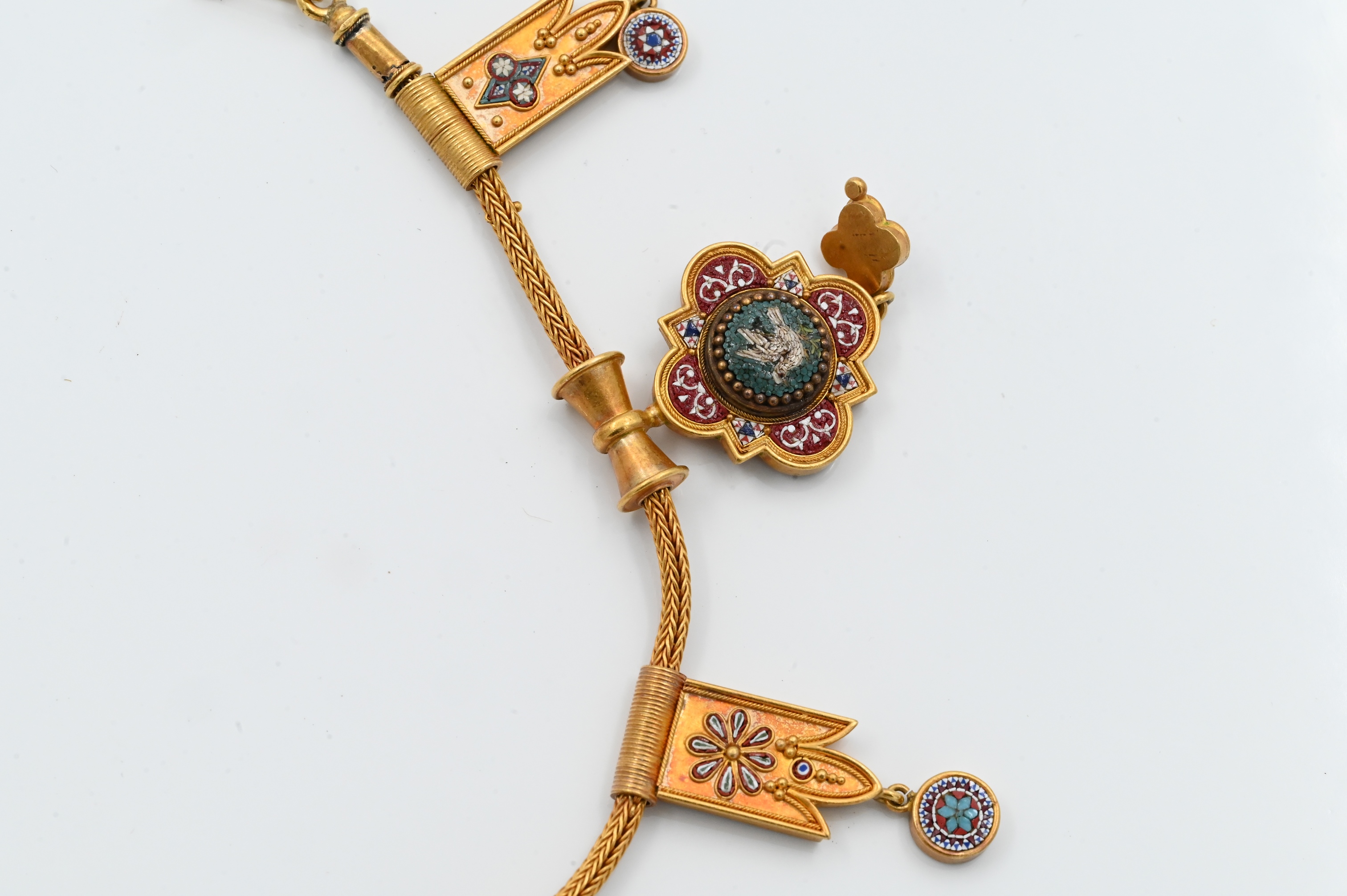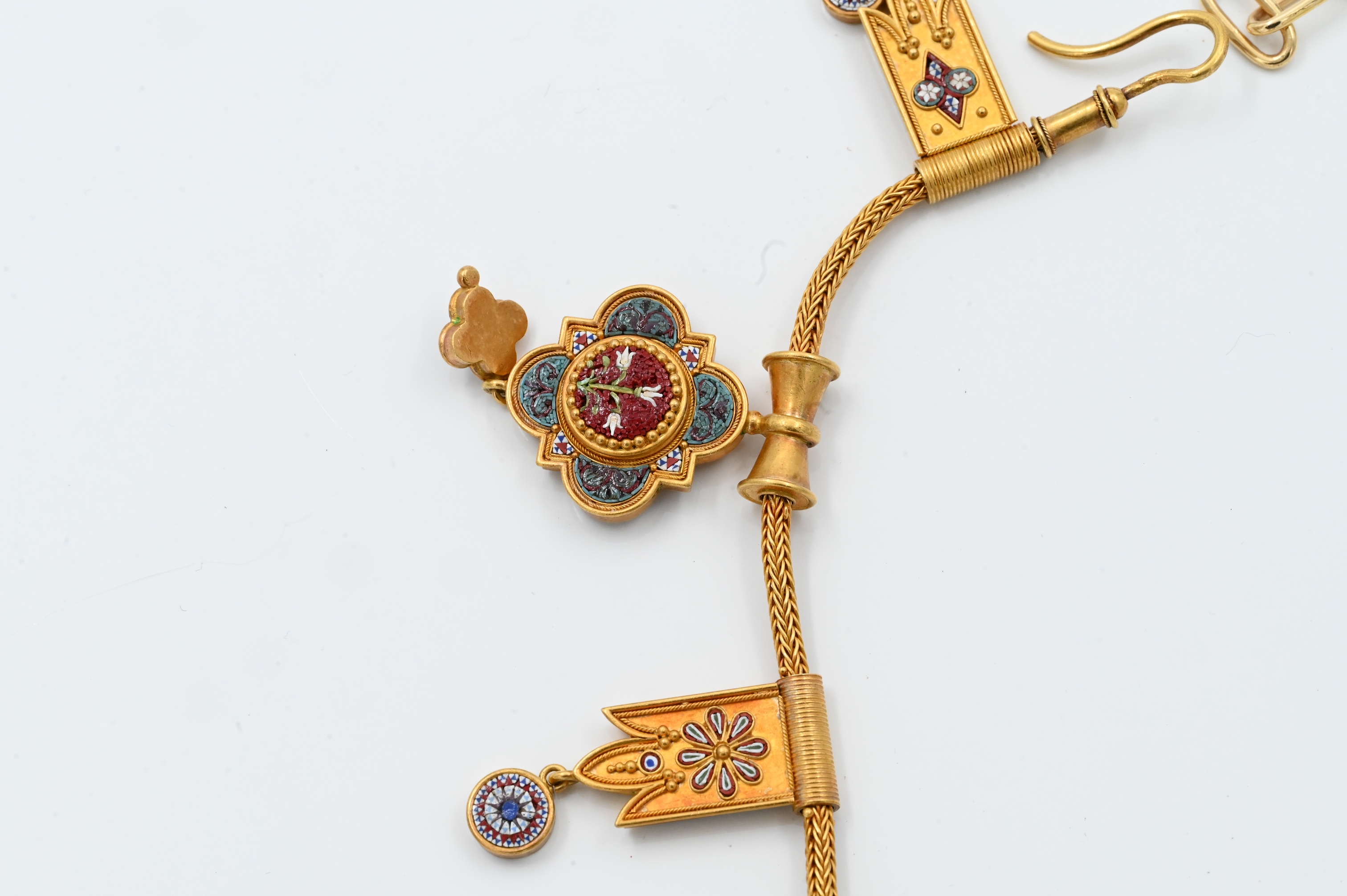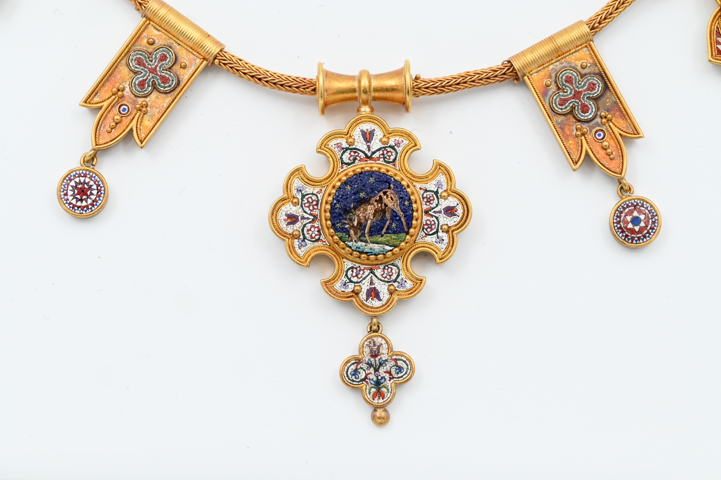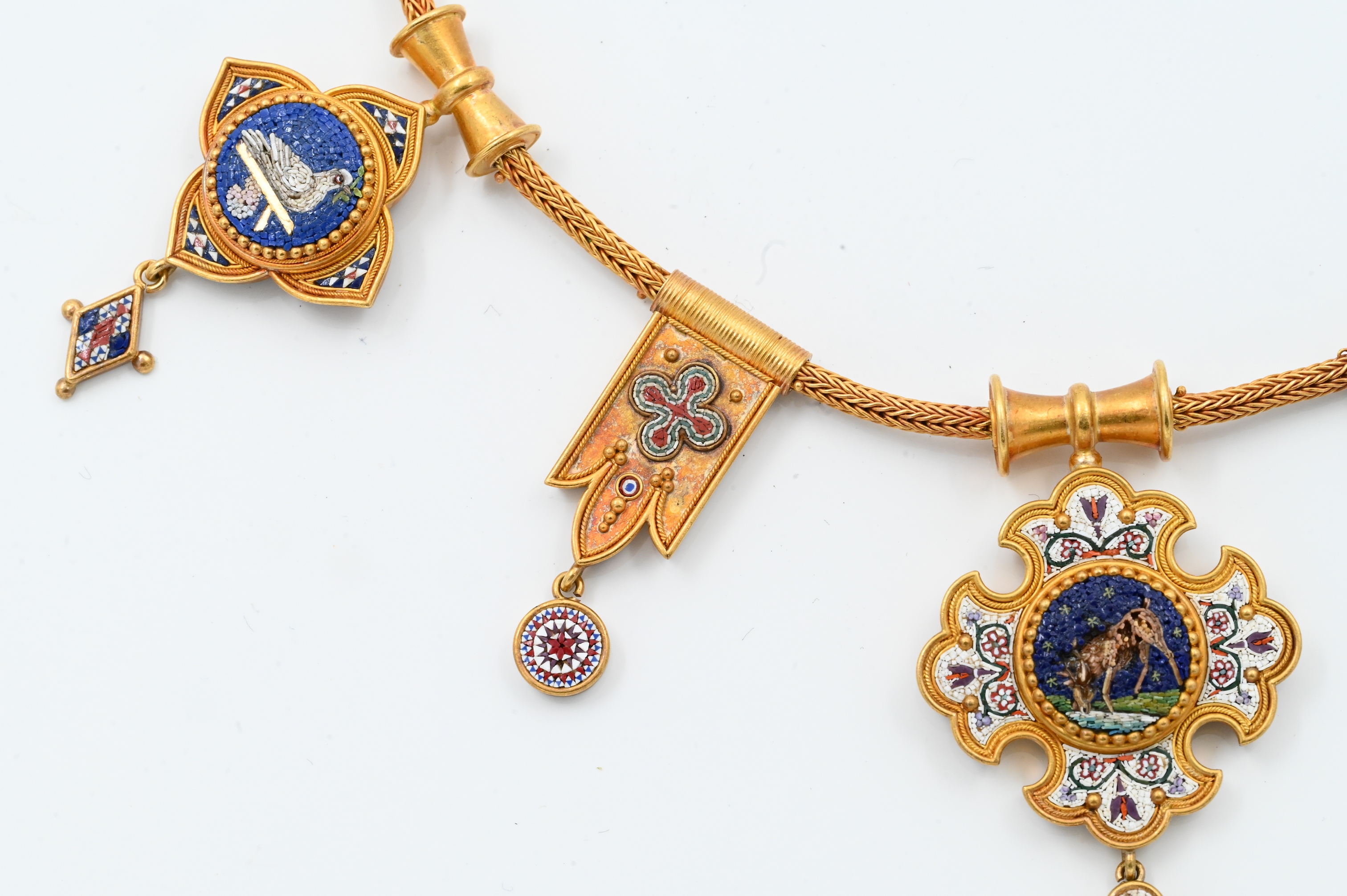 Grand Tour 18K Yellow Gold Micro Mosaic Necklace Attributed to Antonio Civilotti (1798-1870)
