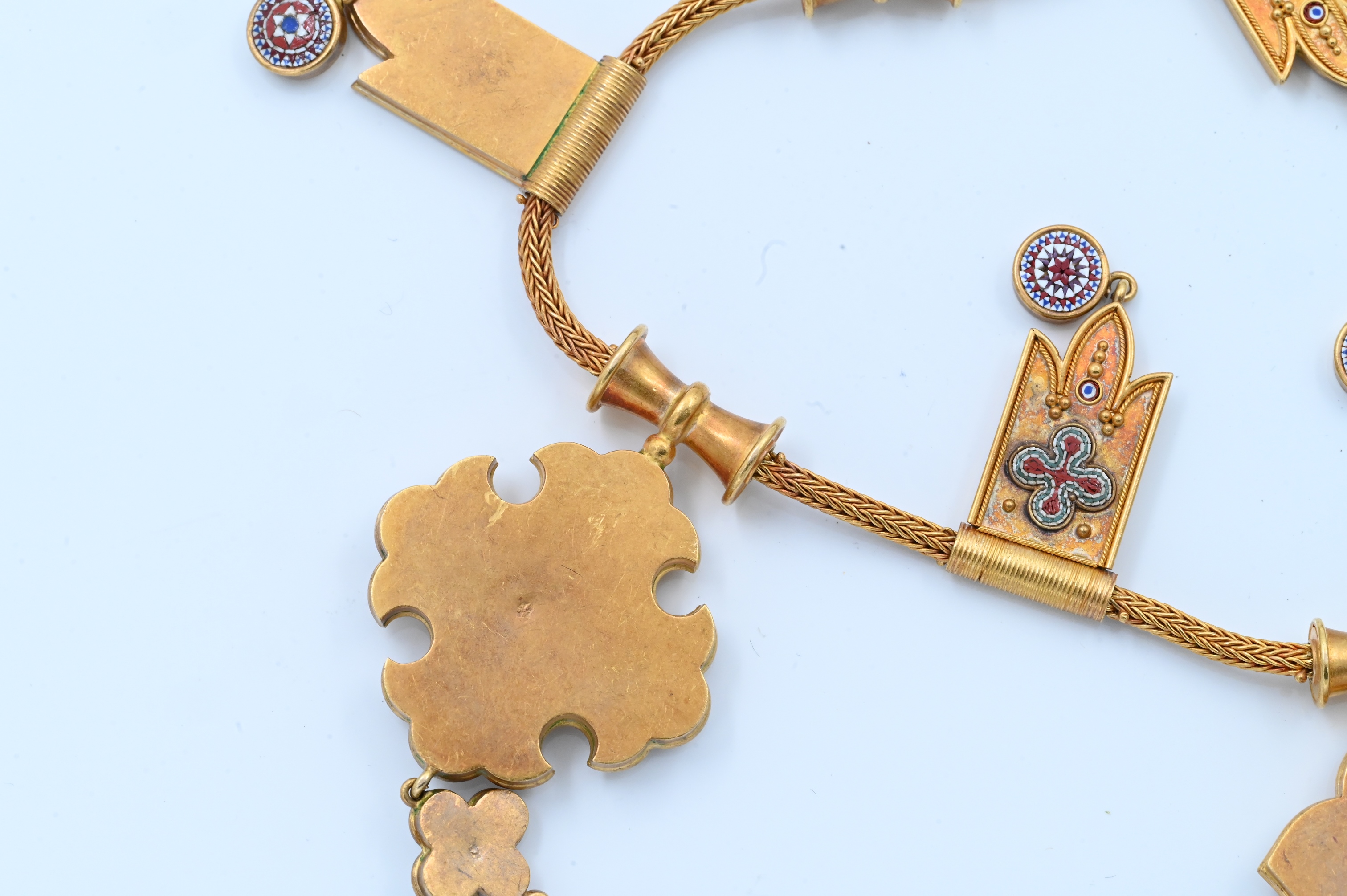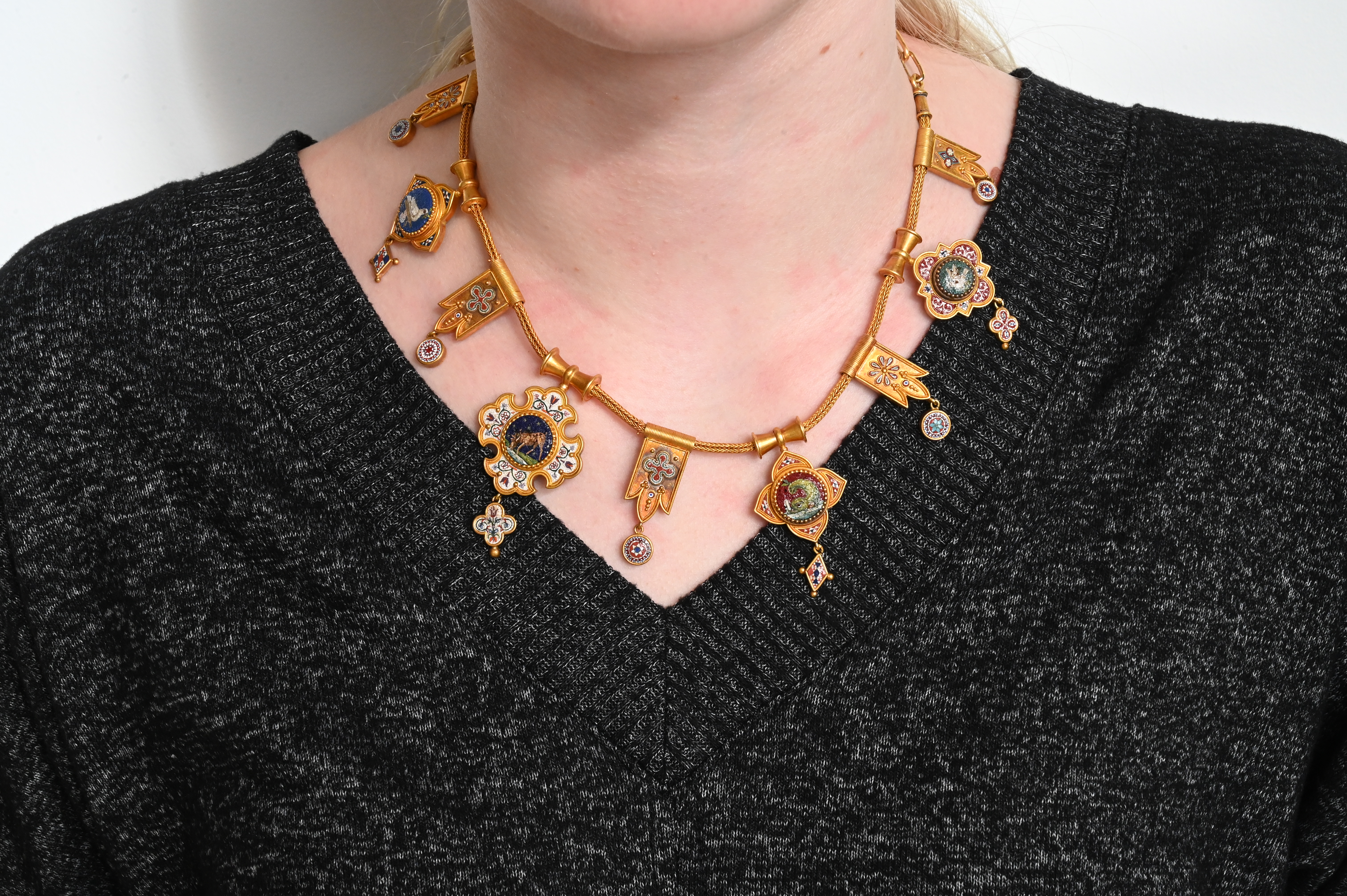 Lot 50: Grand Tour 18K Yellow Gold Micro Mosaic Necklace Attributed to Antonio Civilotti (1798-1870)