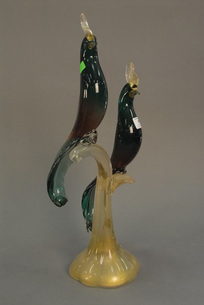 Murano glass two birds on stand. ht. 23in.
