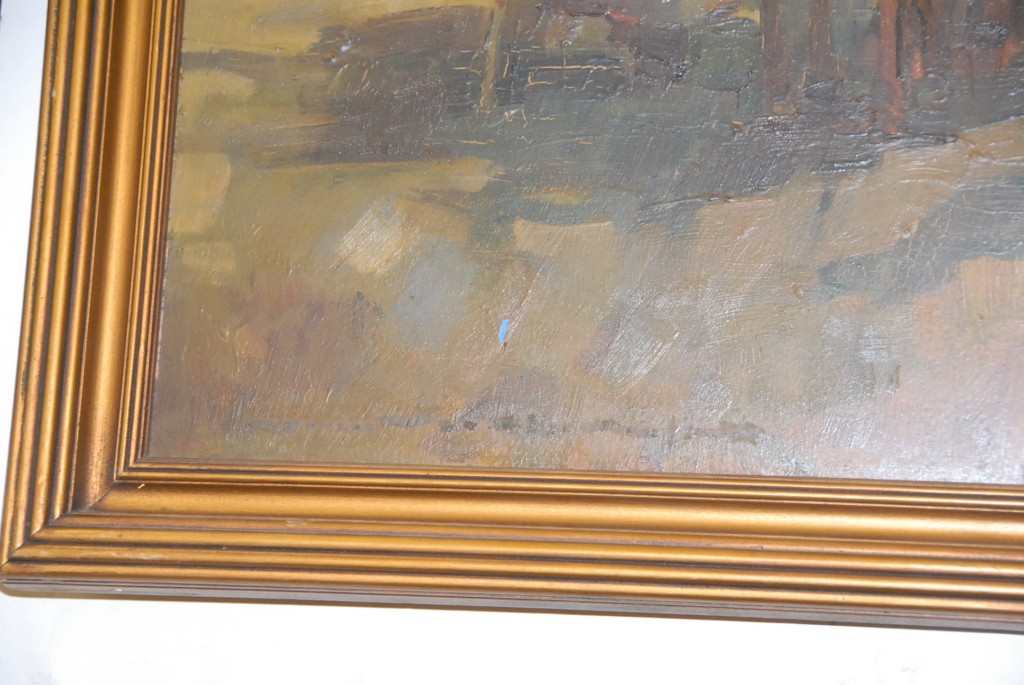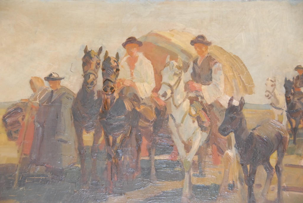 Oil on board painting Heading Across the Plains signed lower left Zigui artist name written on back 1925-27.