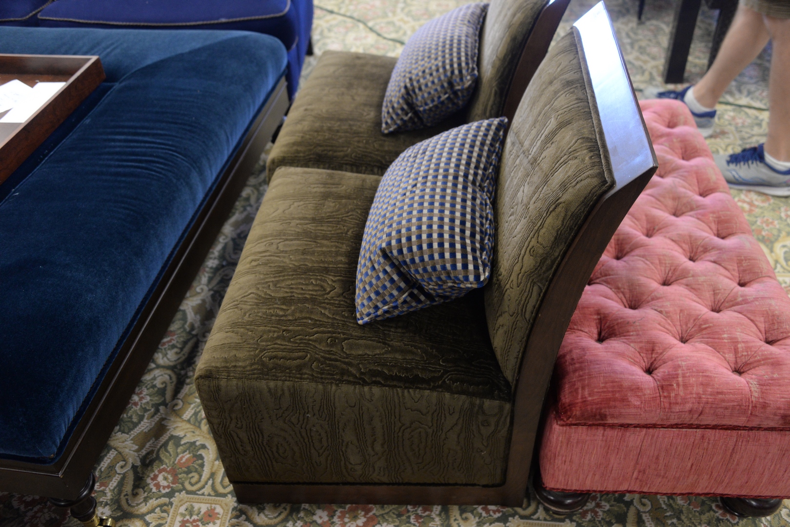 Lot 50: Pair of Henredon Upholstery Collection Slipper Chairs, medium walnut finish, frame with brown upholstery, seat height 17 inches. Provenance: David and Cynthia Kim, 22 Stoney Wylde Lane, Greenwich, Connecticut. View home by visiting: https://www.zillow.com/homedetails/22-Stoney-Wylde-Ln-Greenwich-CT-06830/177238281_zpid/