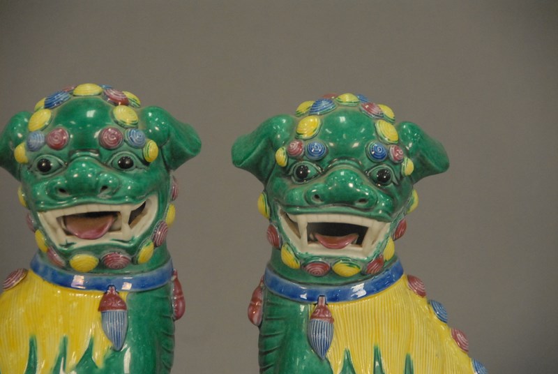 Pair of porcelain foo dogs, ht. 18 1/2in.