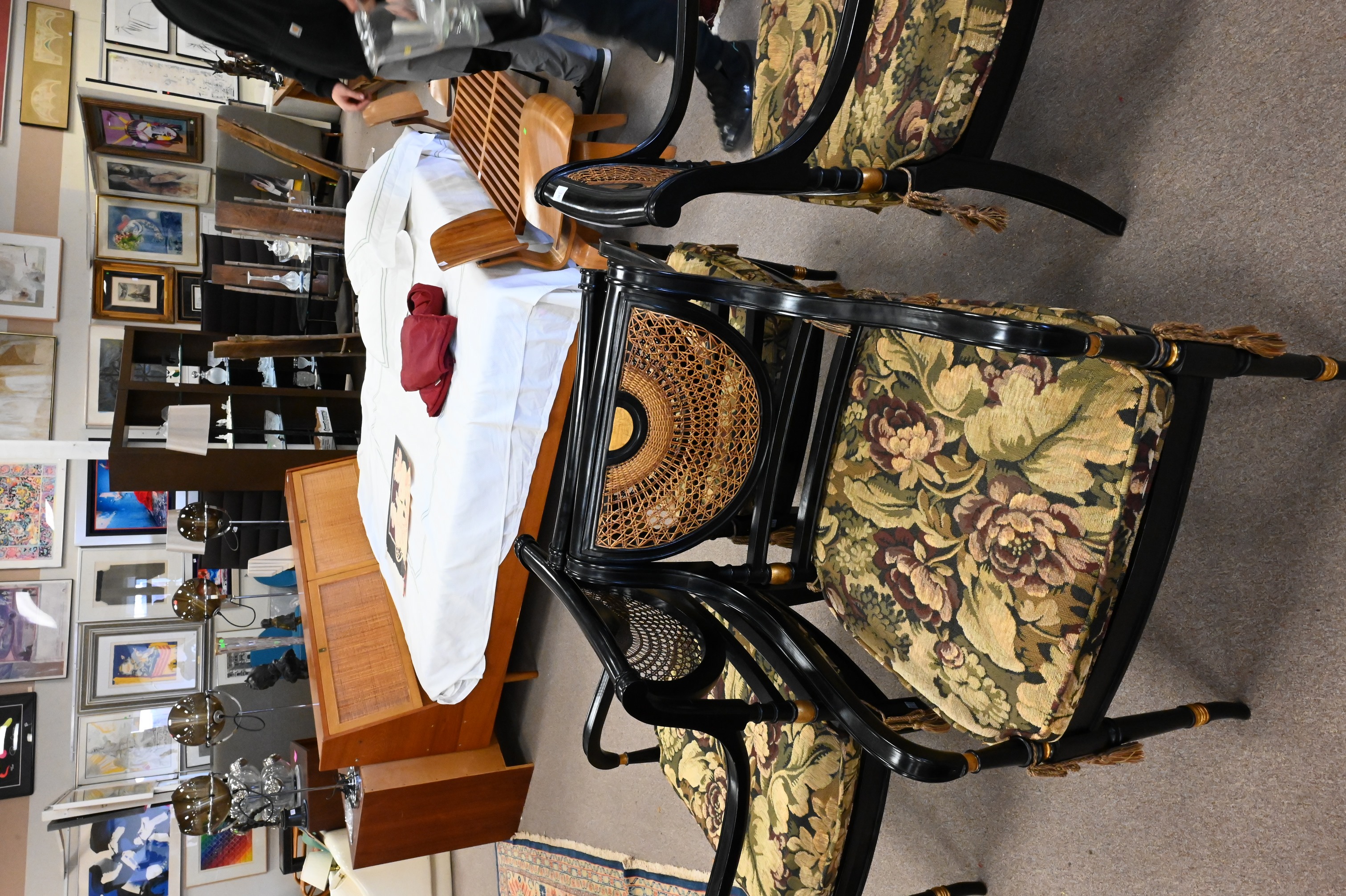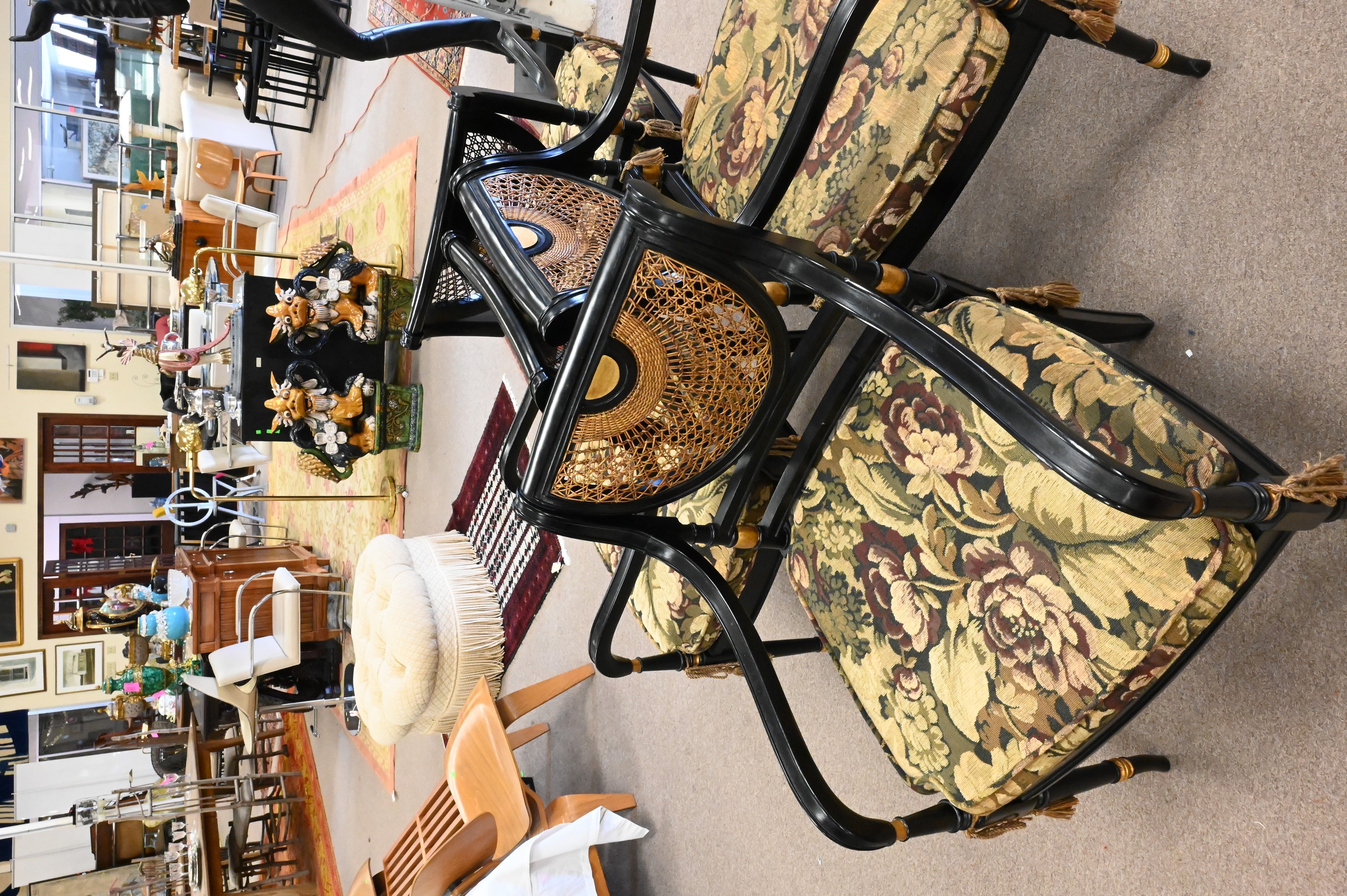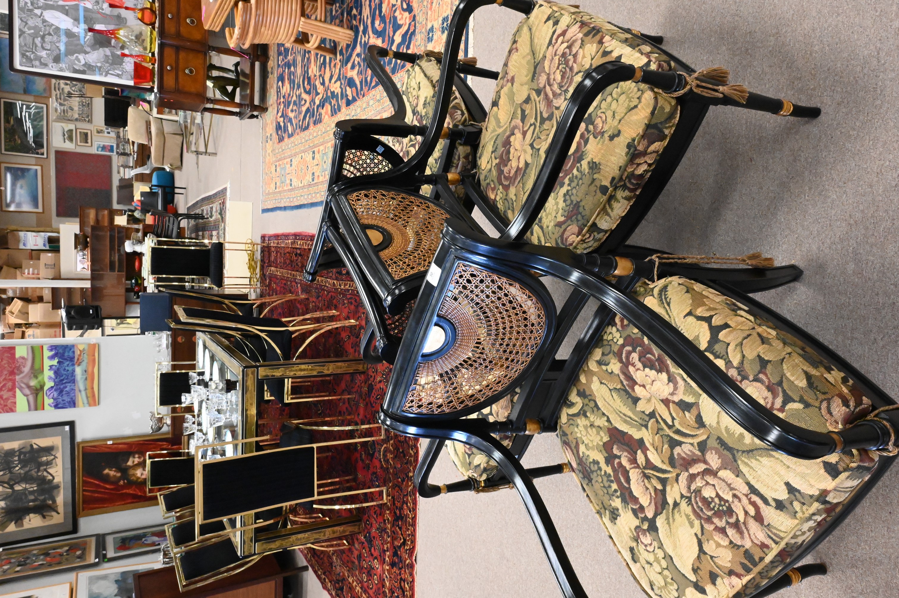 each having caned backs and seats along with custom upholstered cushions