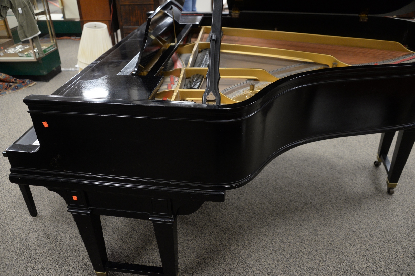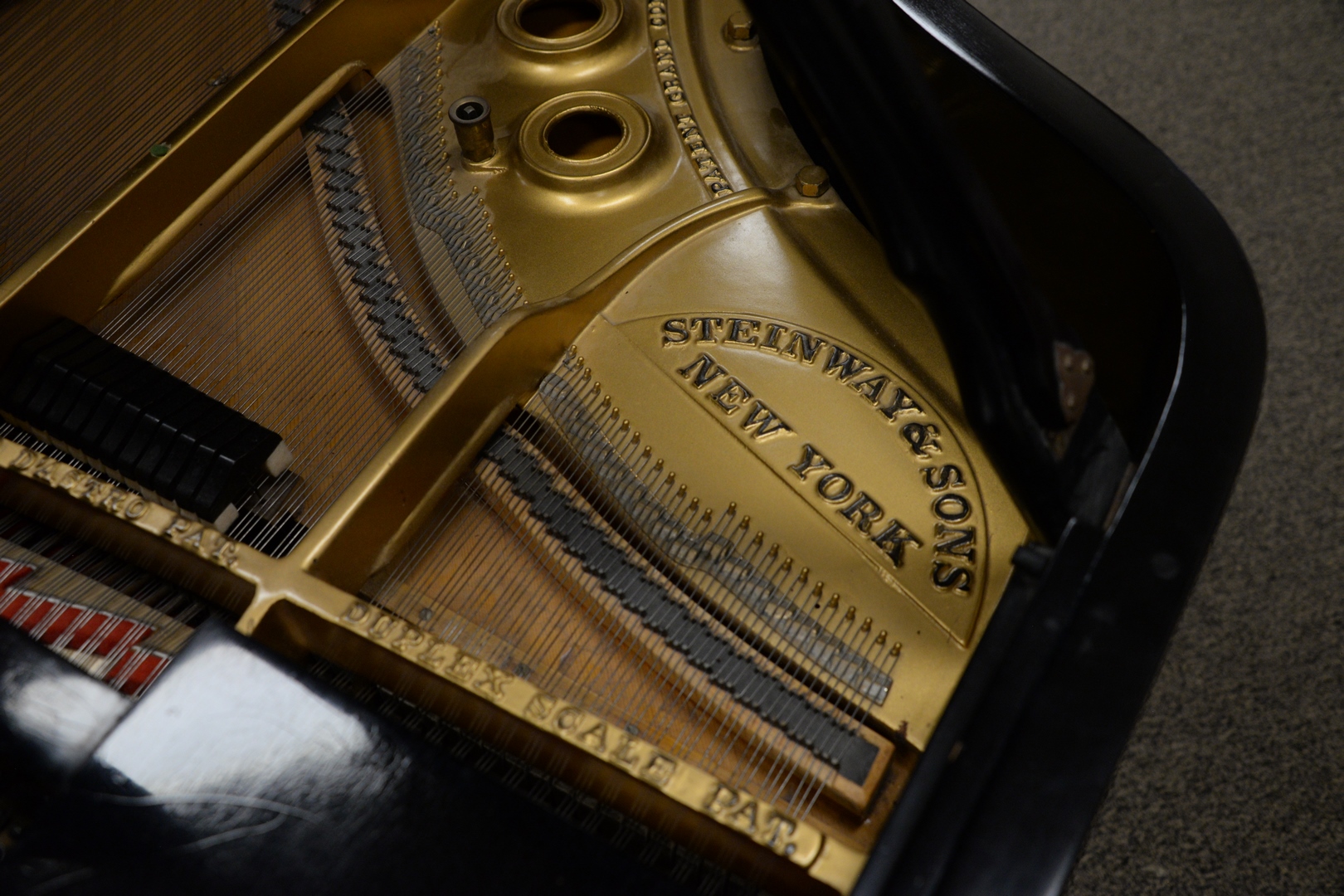 Lot 50: Steinway and Sons Grand Piano model A ebonized with Capo D’Astro Pat duplex scale cracked soundboard.