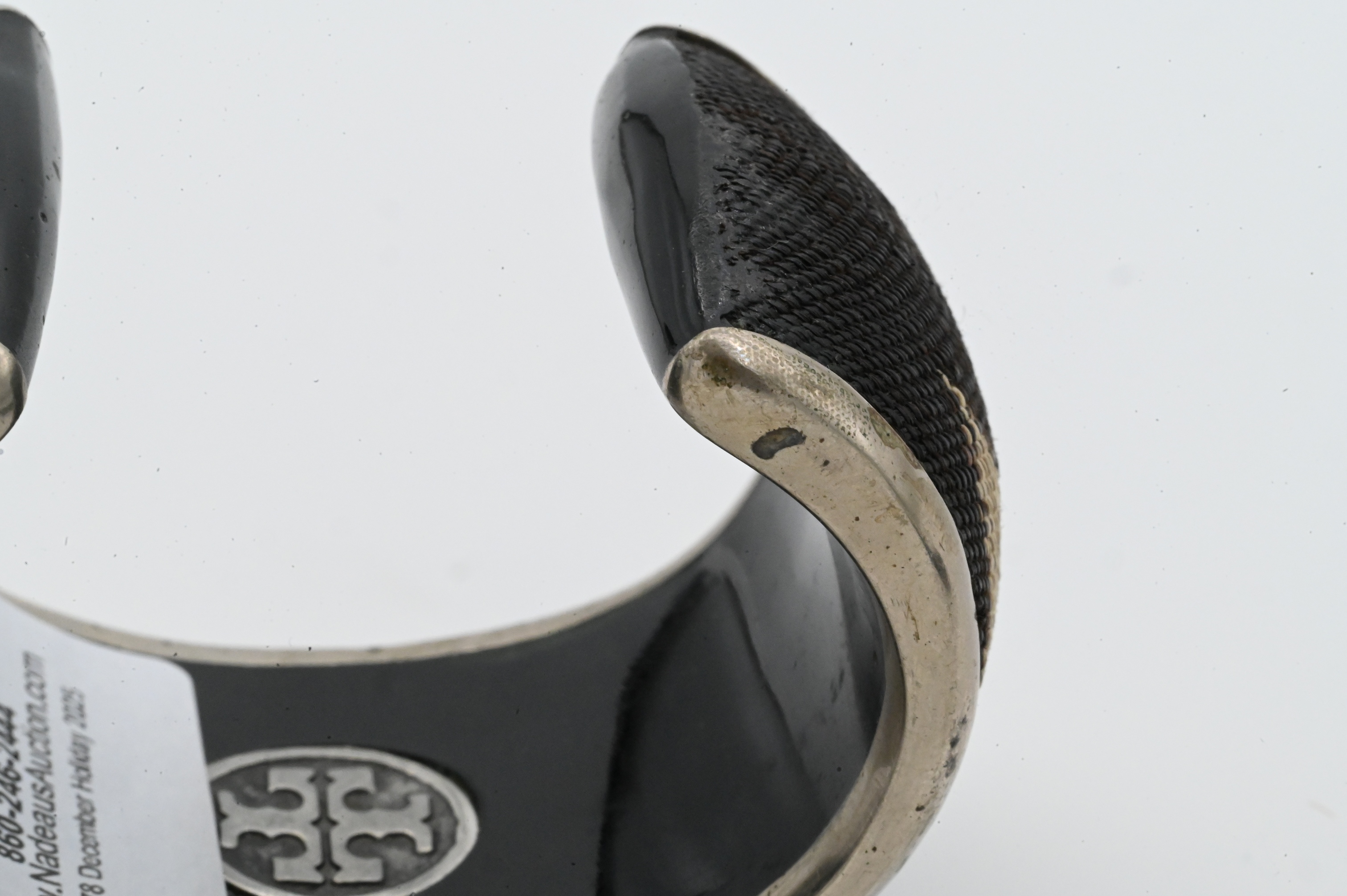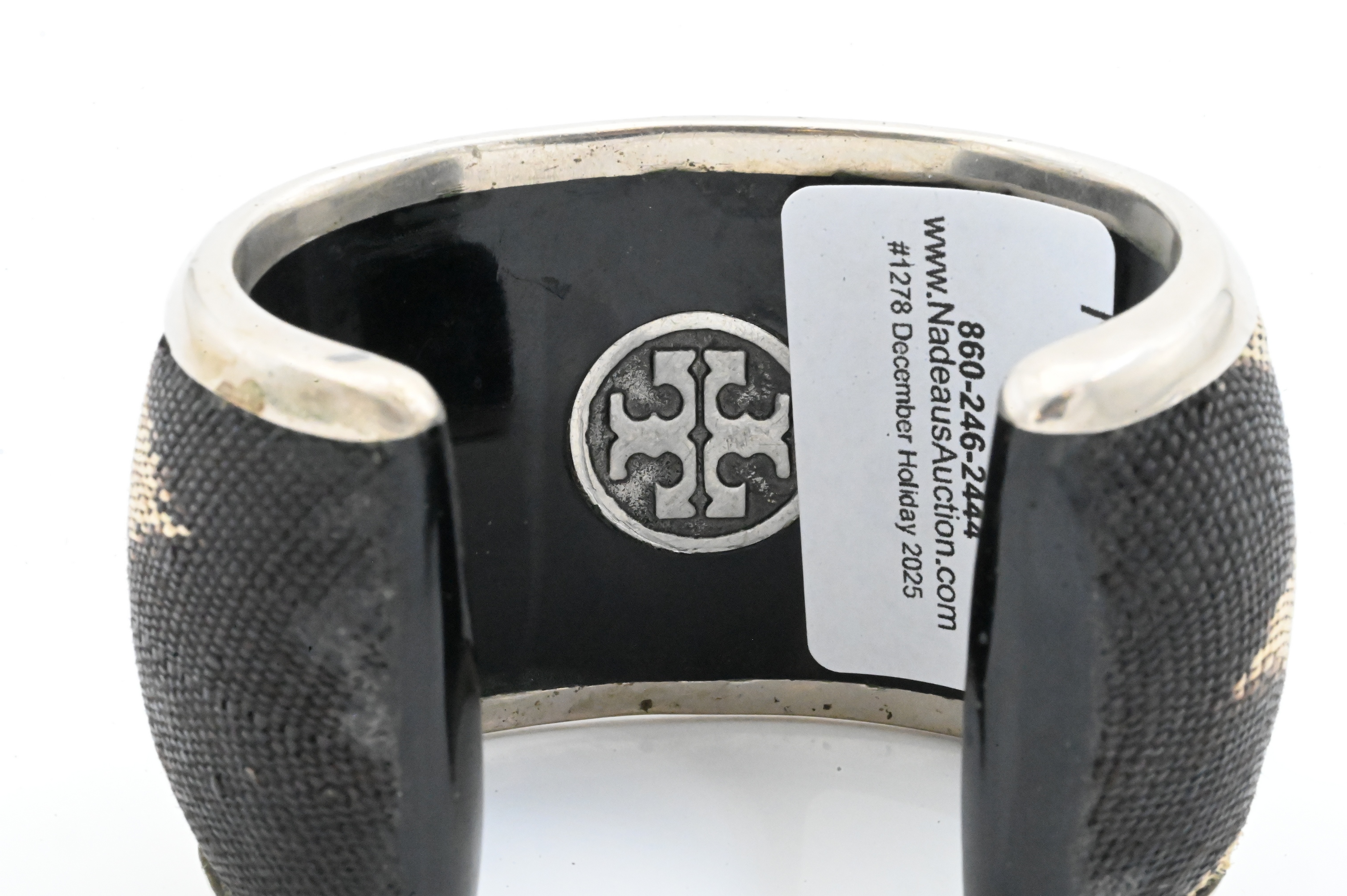 Lot 50: Tory Burch Enamel and Fabric Cuff Bracelet