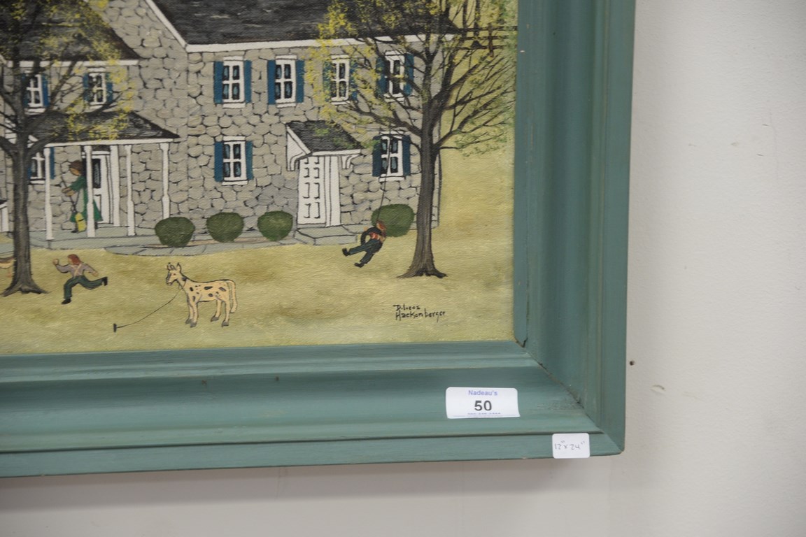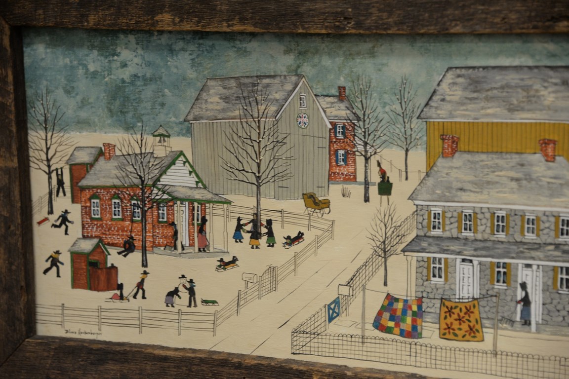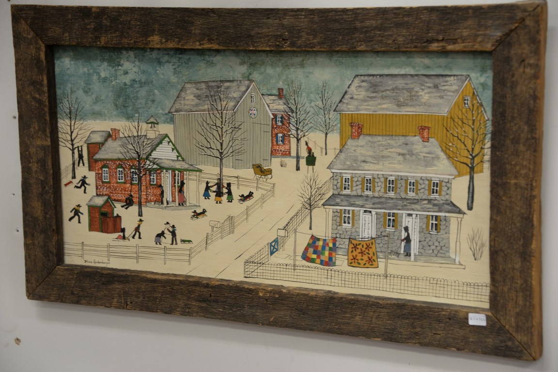 Lot 50: Two Dolores Hackenberger 1930 paintings including primitive oil on board winter scene signed lower left Dolores Hackenberger 12…