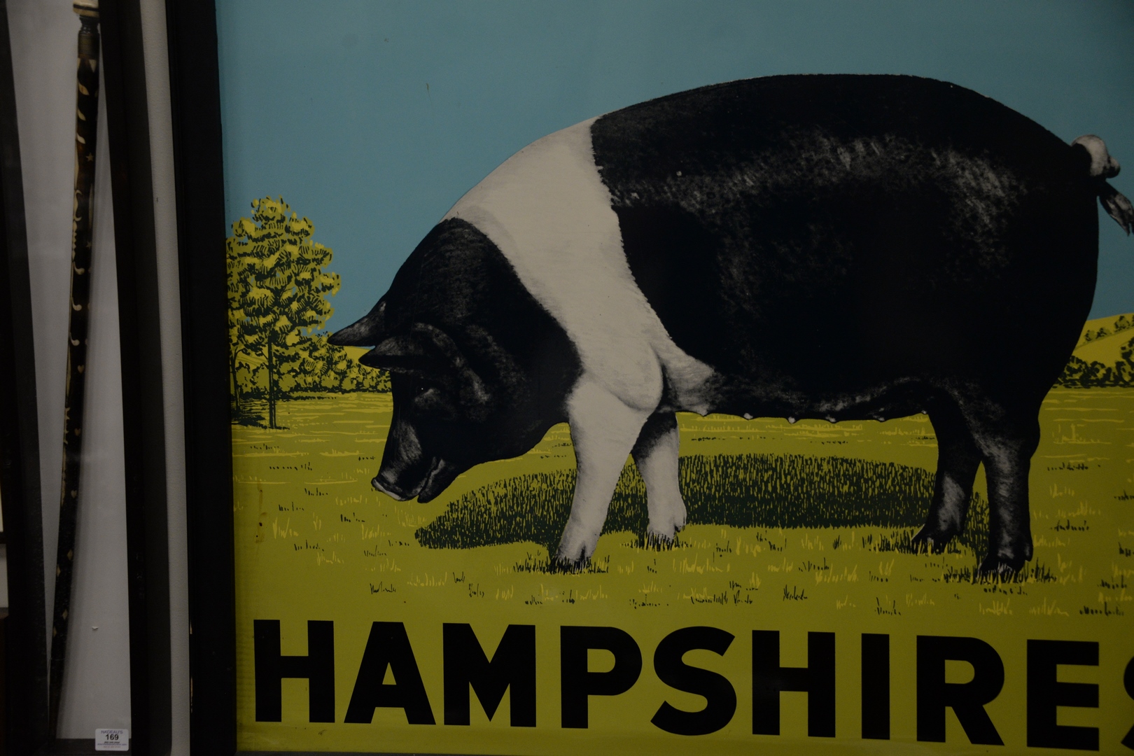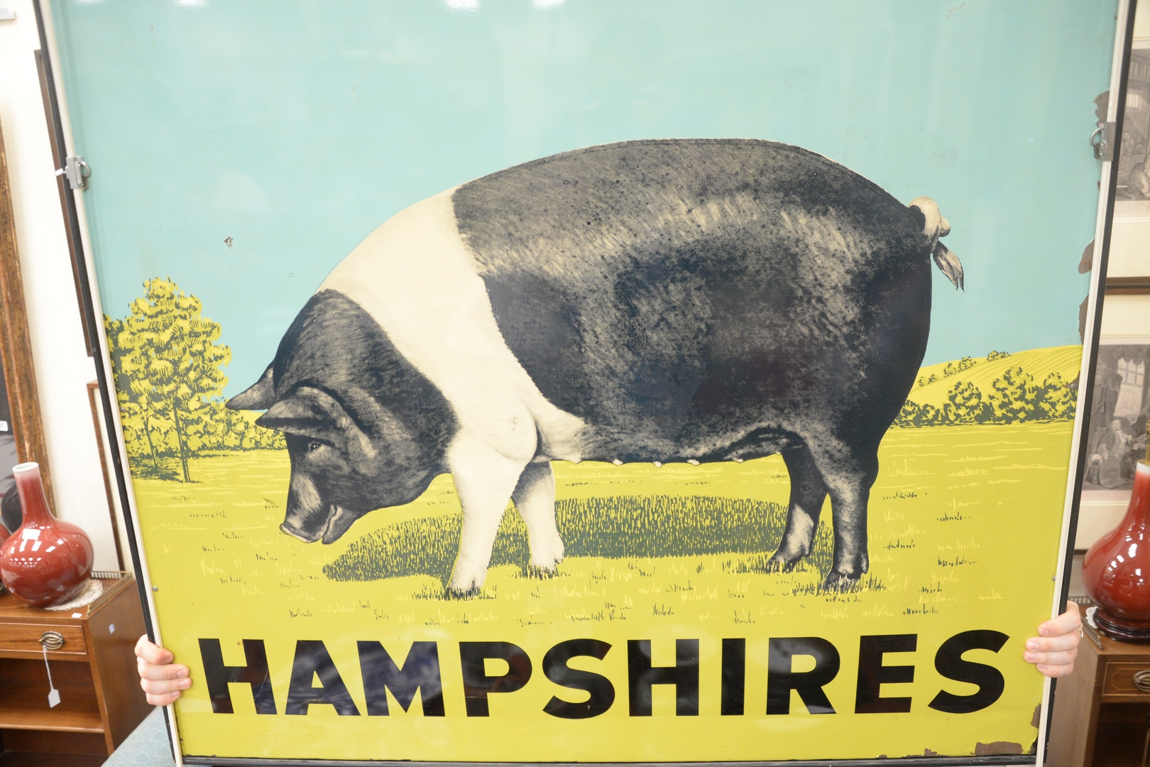 American Silk Screened Metal Hampshires Pig Sign, circa 1920, height 42 inches, width 4 feet.