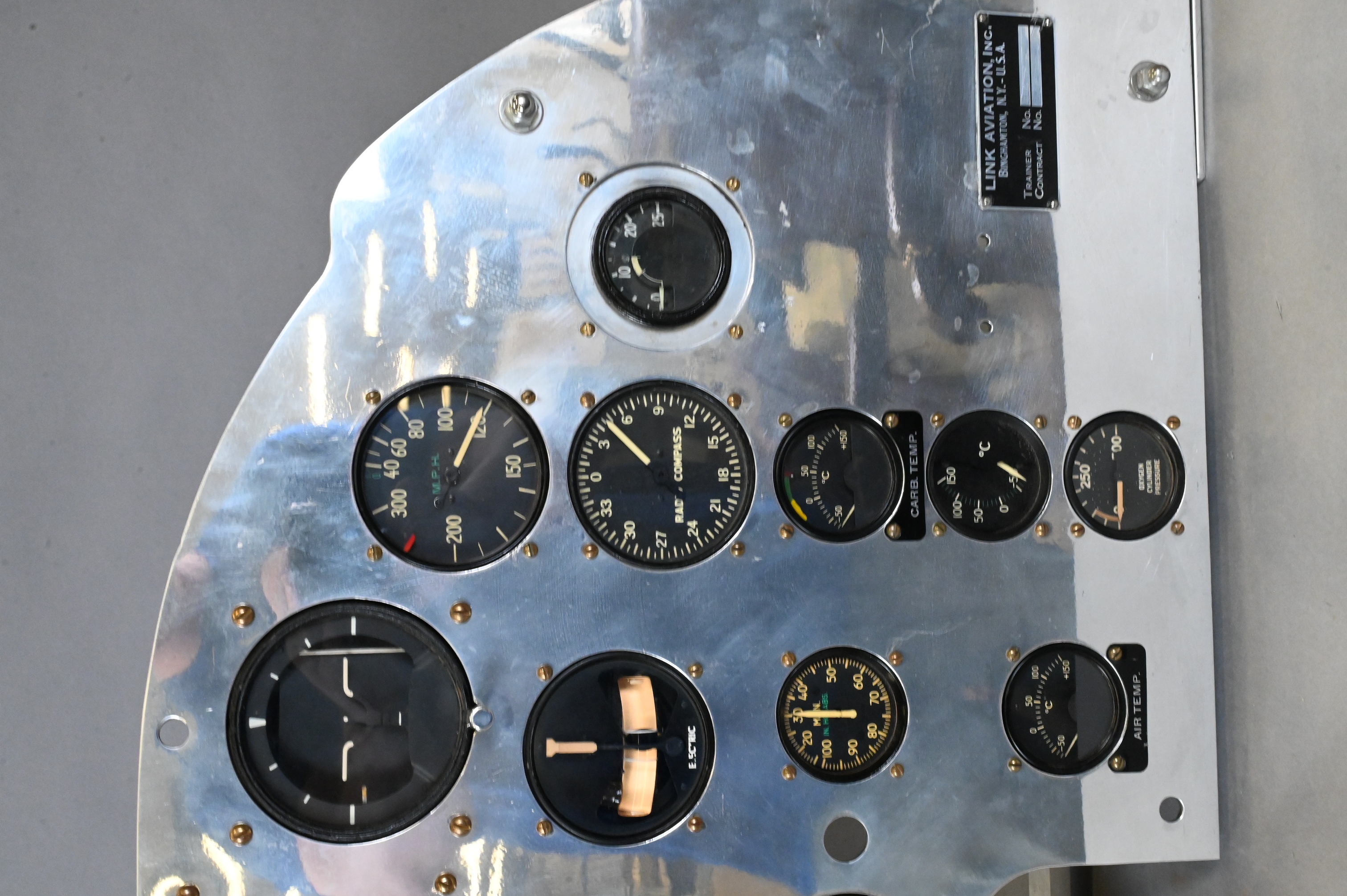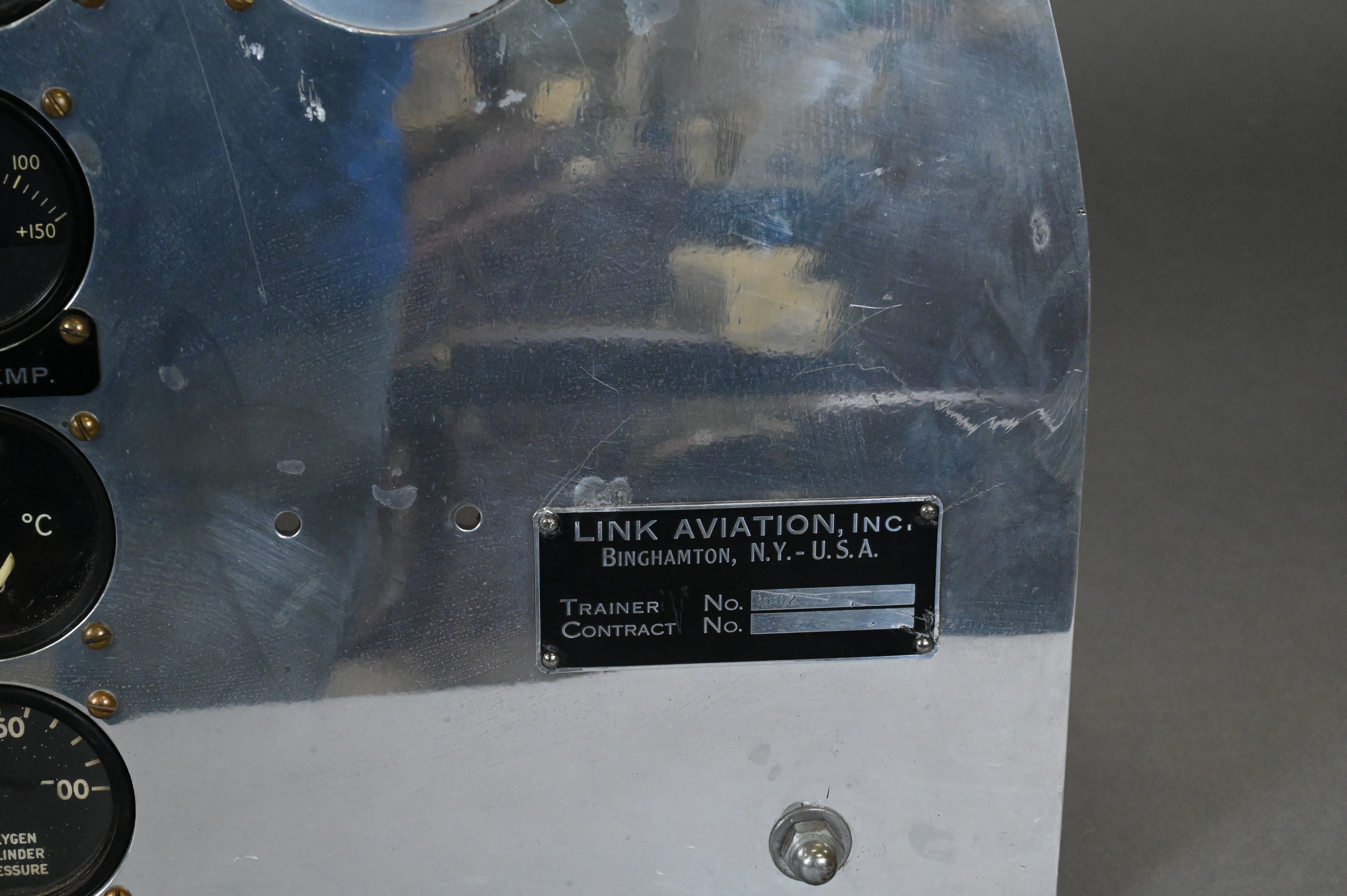 chrome plated metal having airplane gauges World War II flight simulator, label lower right Link Aviation Inc. Binghamton New York, USA, circa 1940
