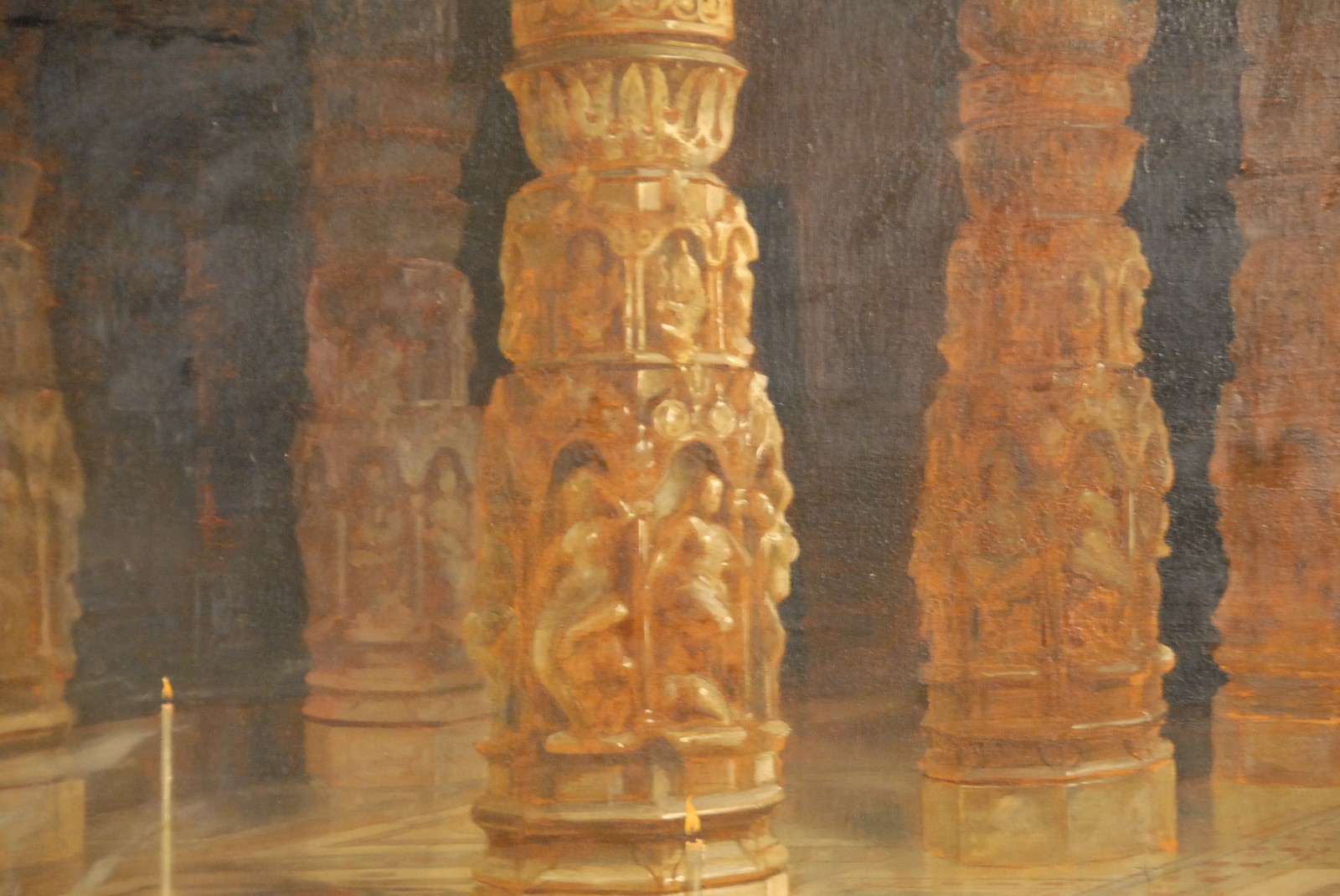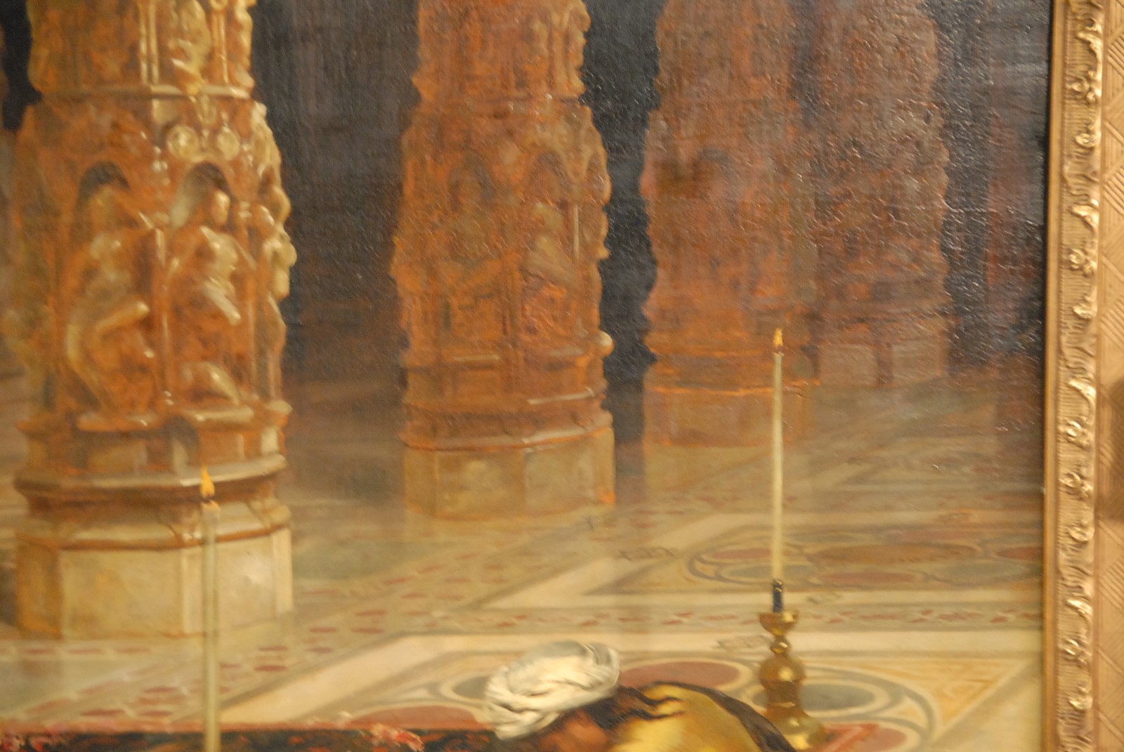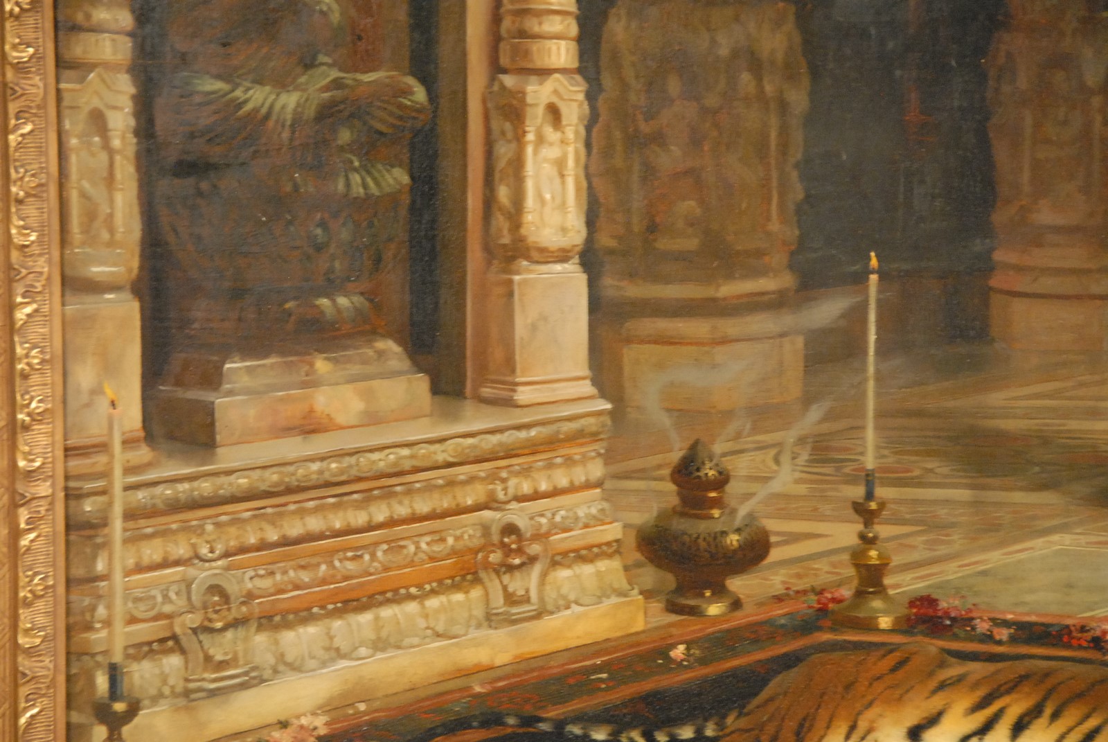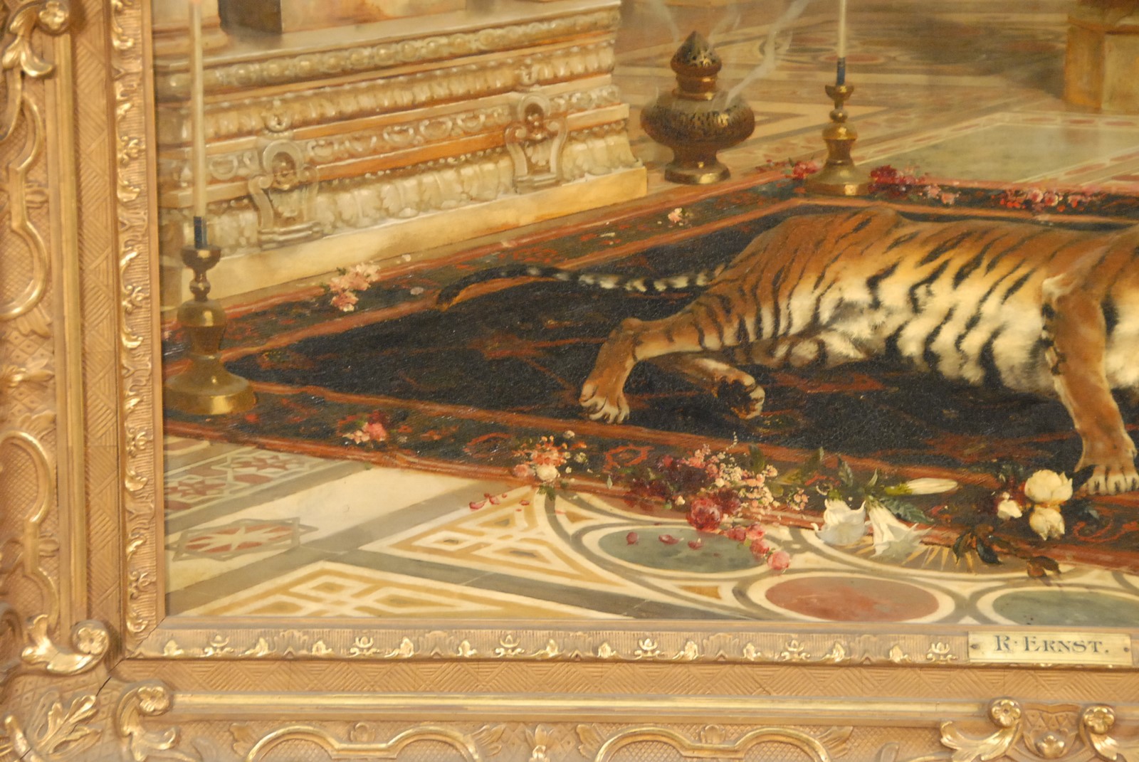 Lot 500: Rudolf Ernst 1854-1932 MOURNING A TIGER interior palace scene oil on panel signed lower right R. Ernst 30 x 39