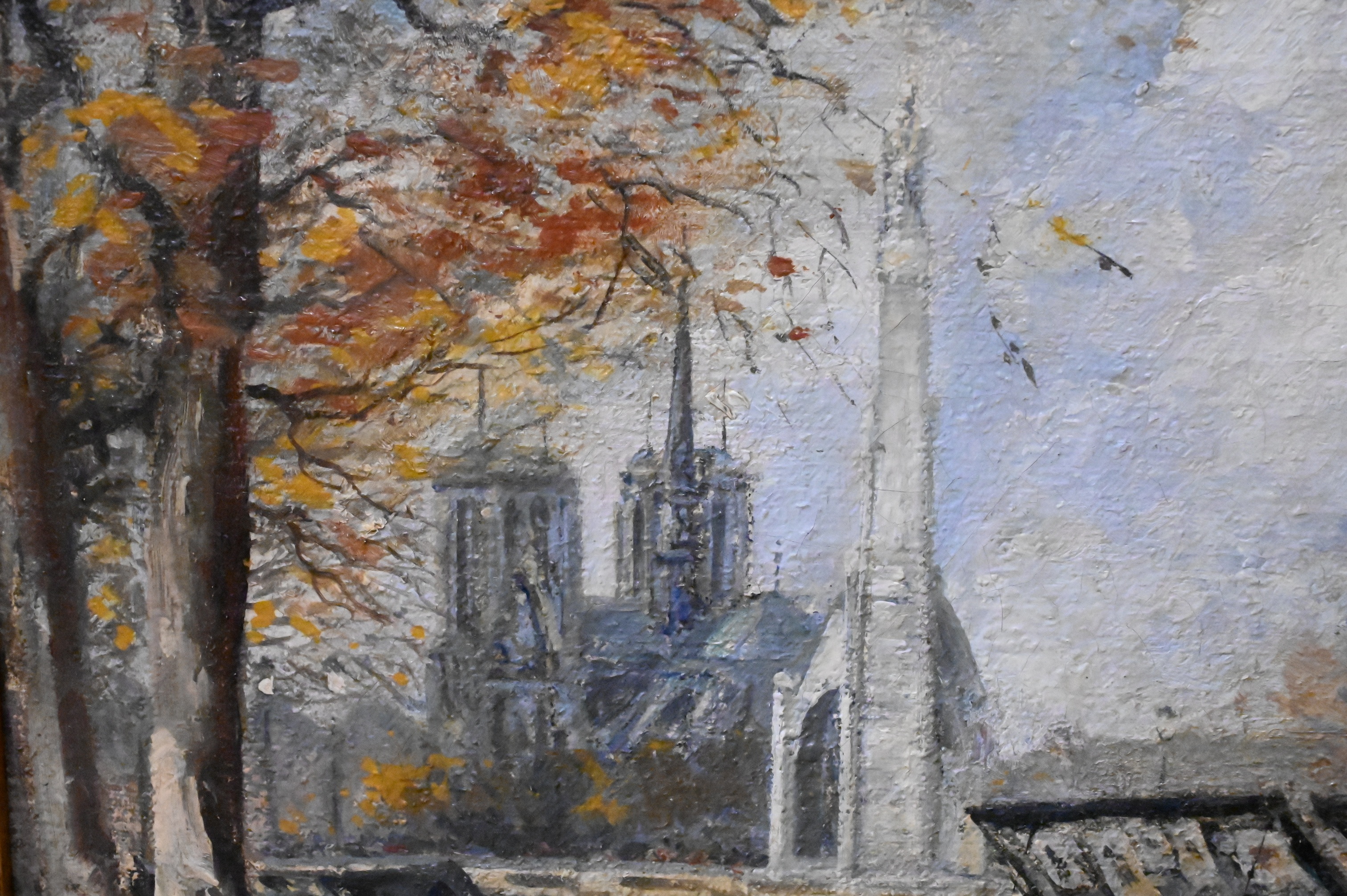 “Quai de la Tournelle et Statue St. Genevieve” View of Notre Dame Cathedral