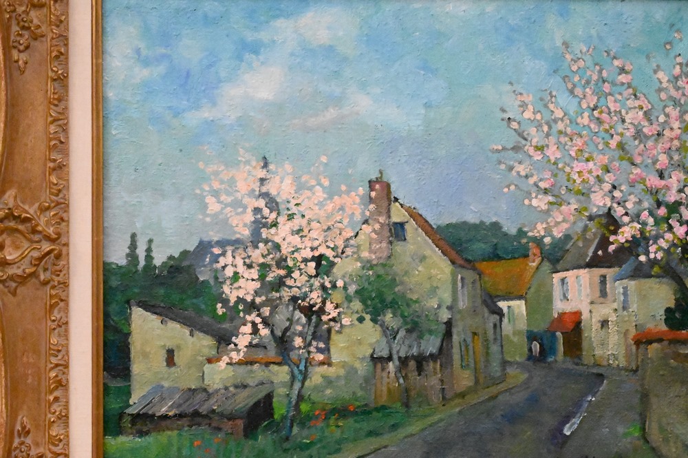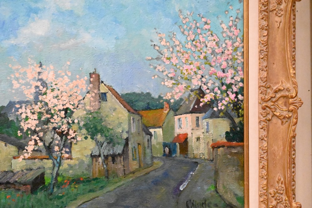 Constantin Kluge (1912 – 2003), street scene with blossoming trees, oil on canvas, signed lower right C Kluge, 19″ x 23 1/2″.