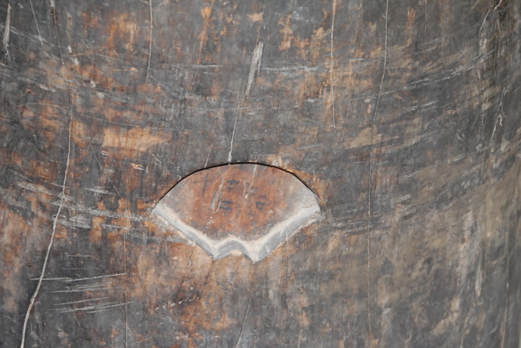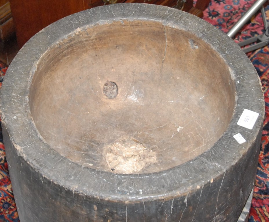 Early Oriental wooden mortar, 18th century. height 22in. diameter 18 1/2in.
