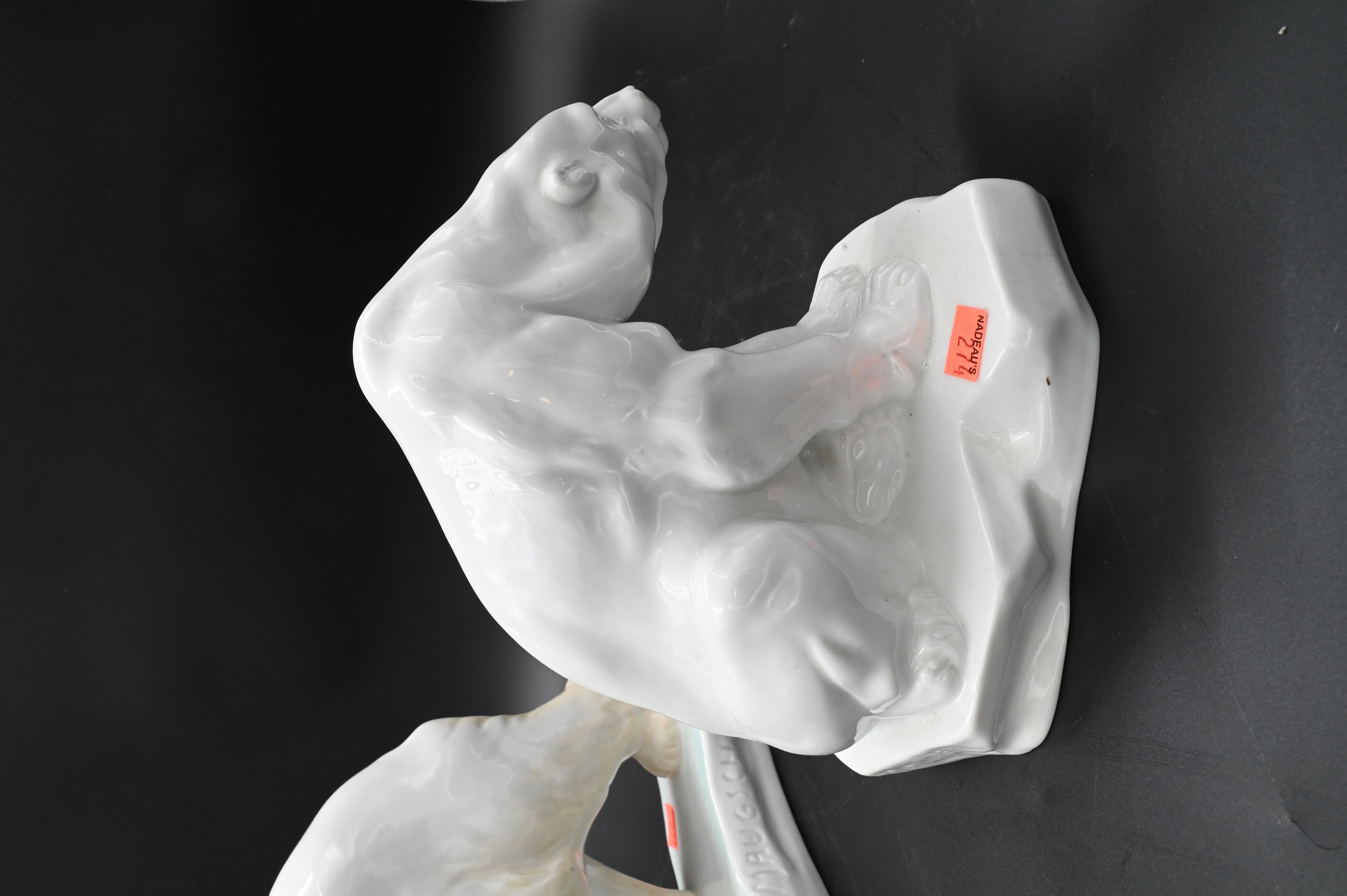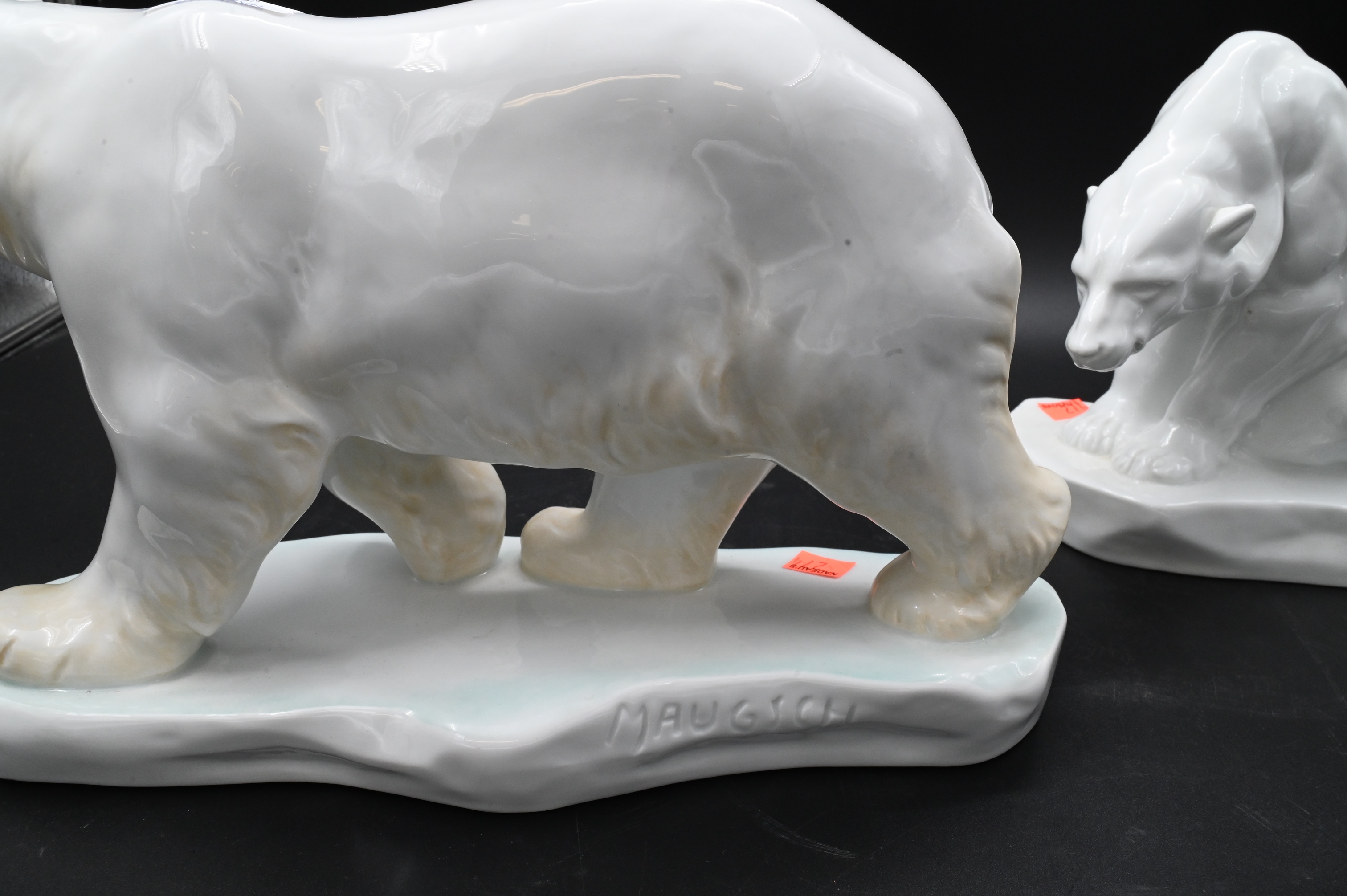 to include large white polar bear on base signed “Gyula Maugsch”, and large white seated bear signed “Markup Bela 1927”