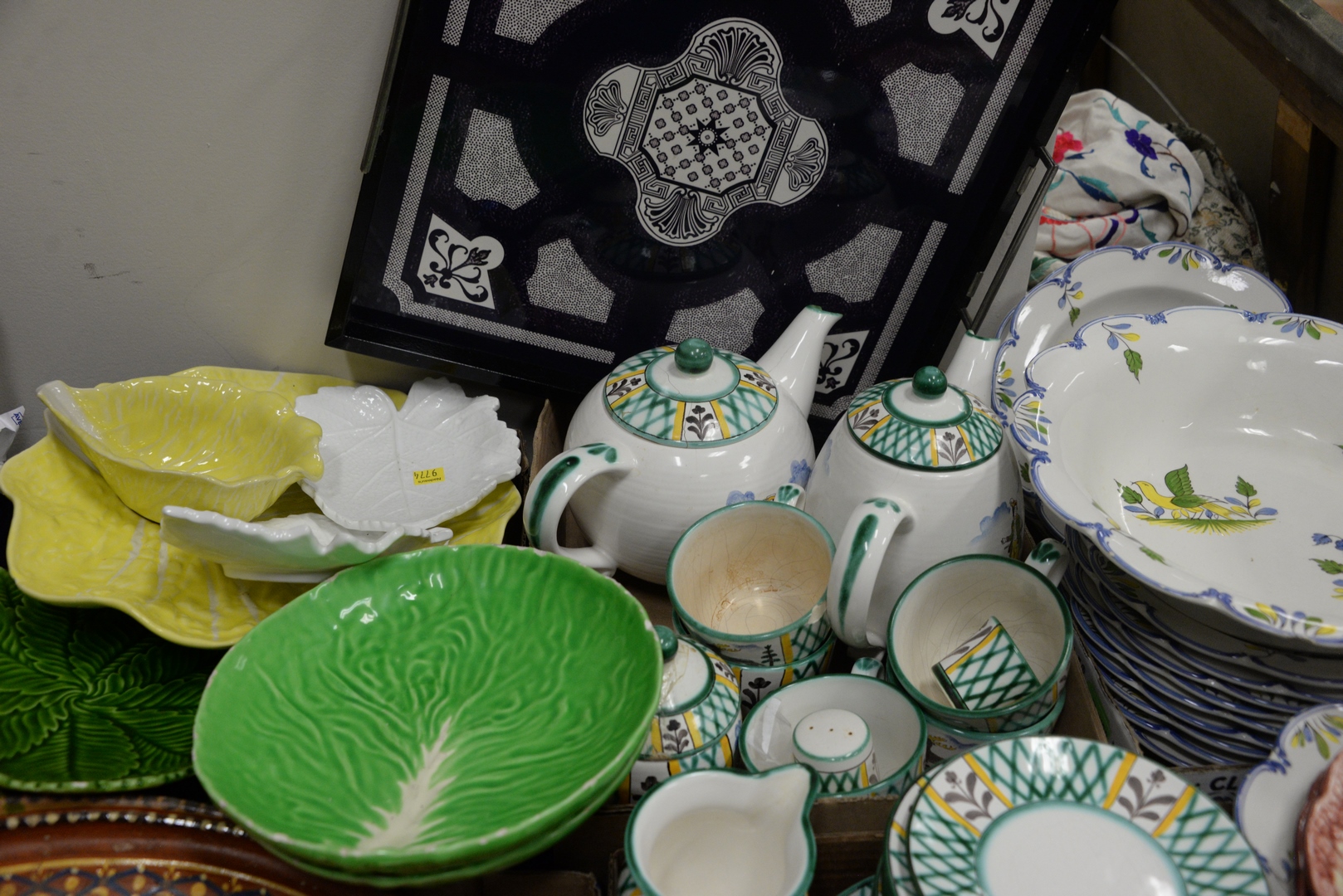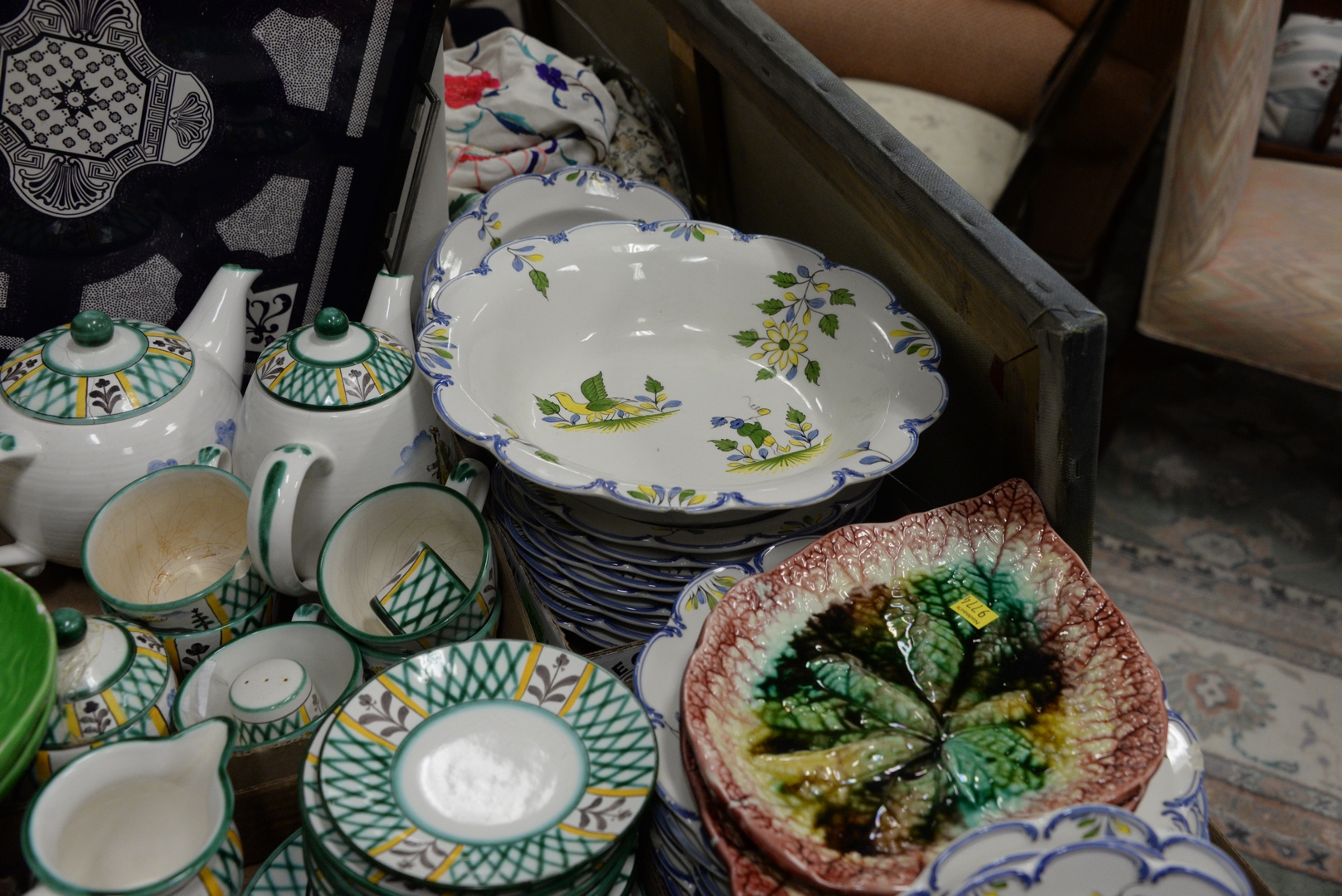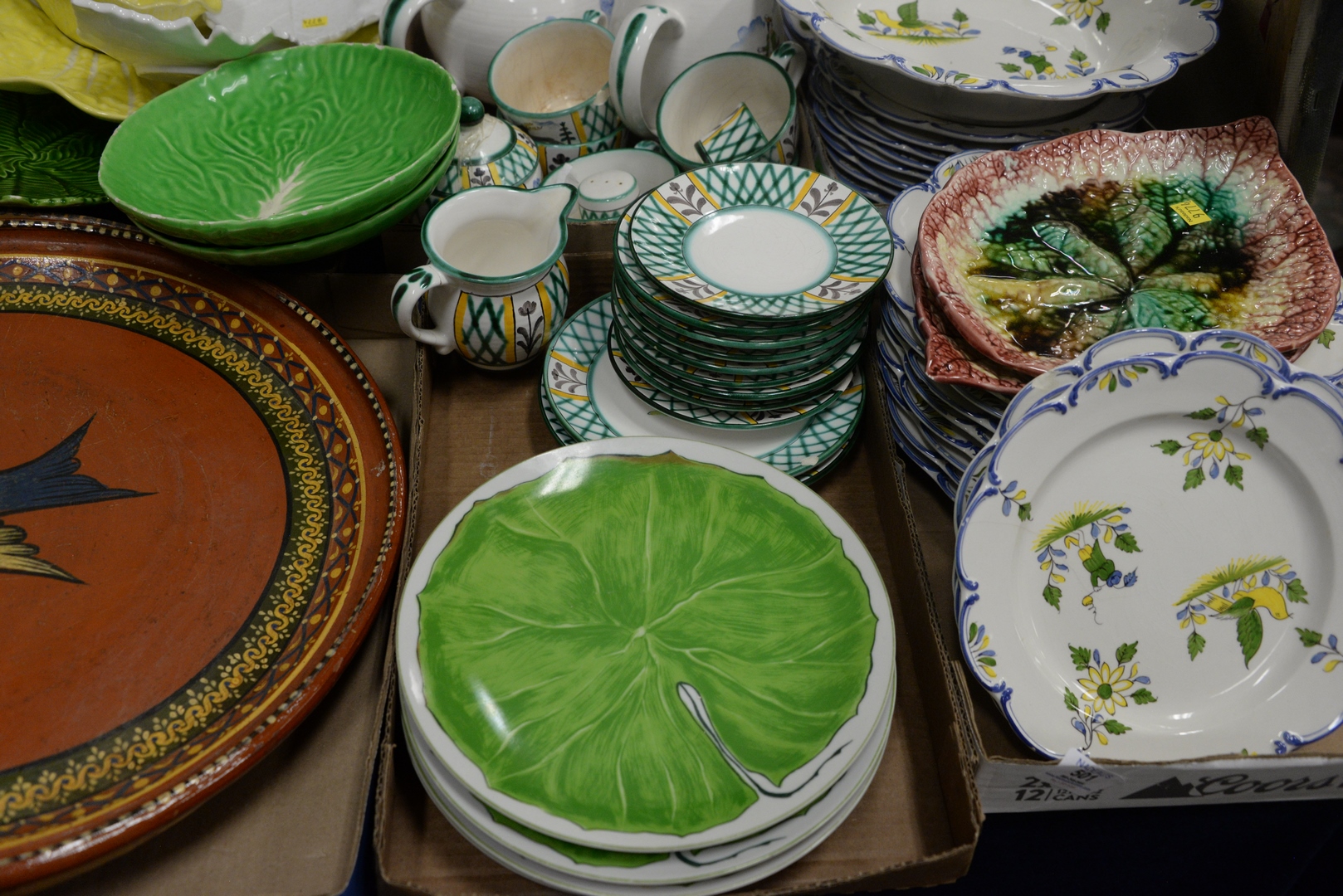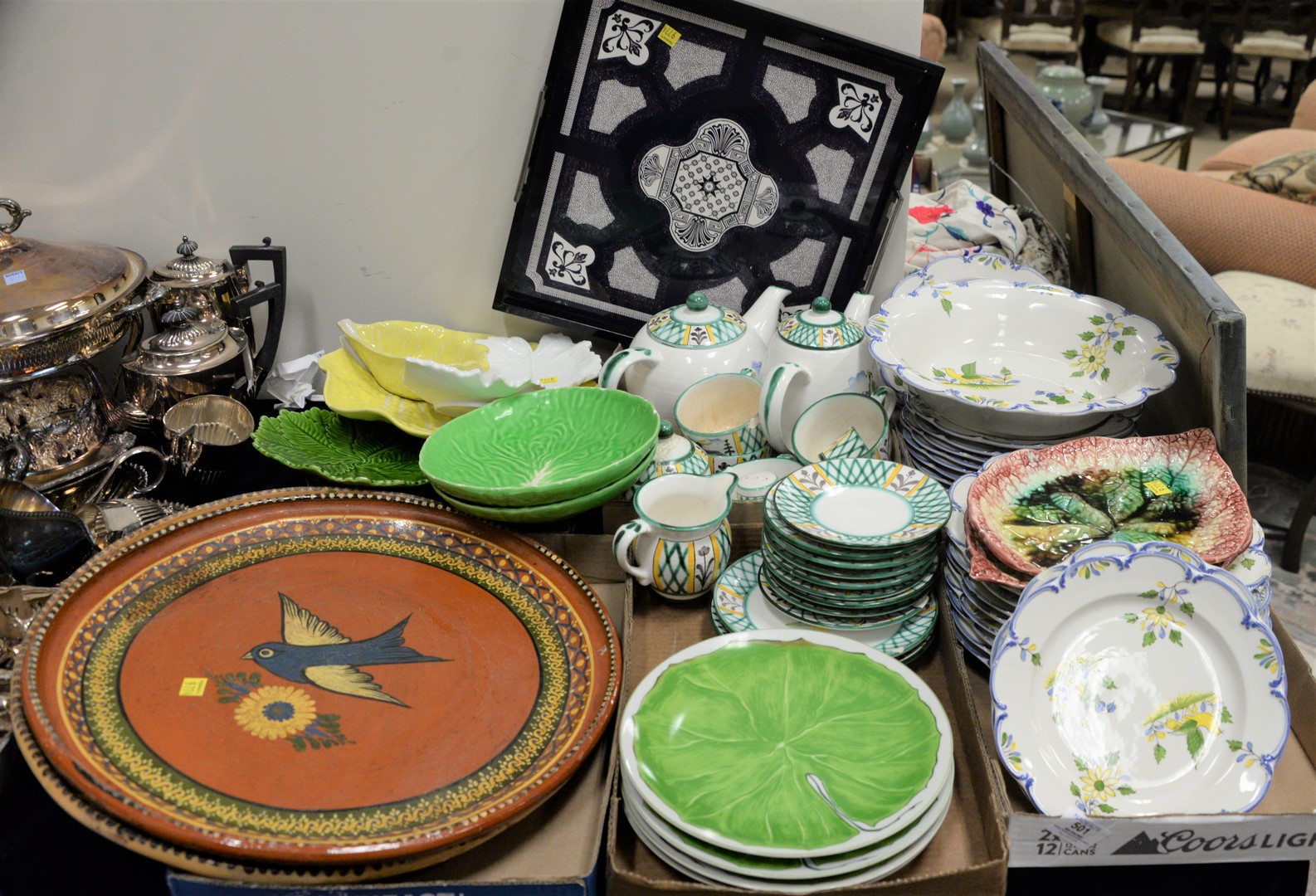 Lot 501: Six Tray Lots of Majolica, Italian and Austrian Faience, along with two terracotta painted chargers, diameter 17 1/2 inches.