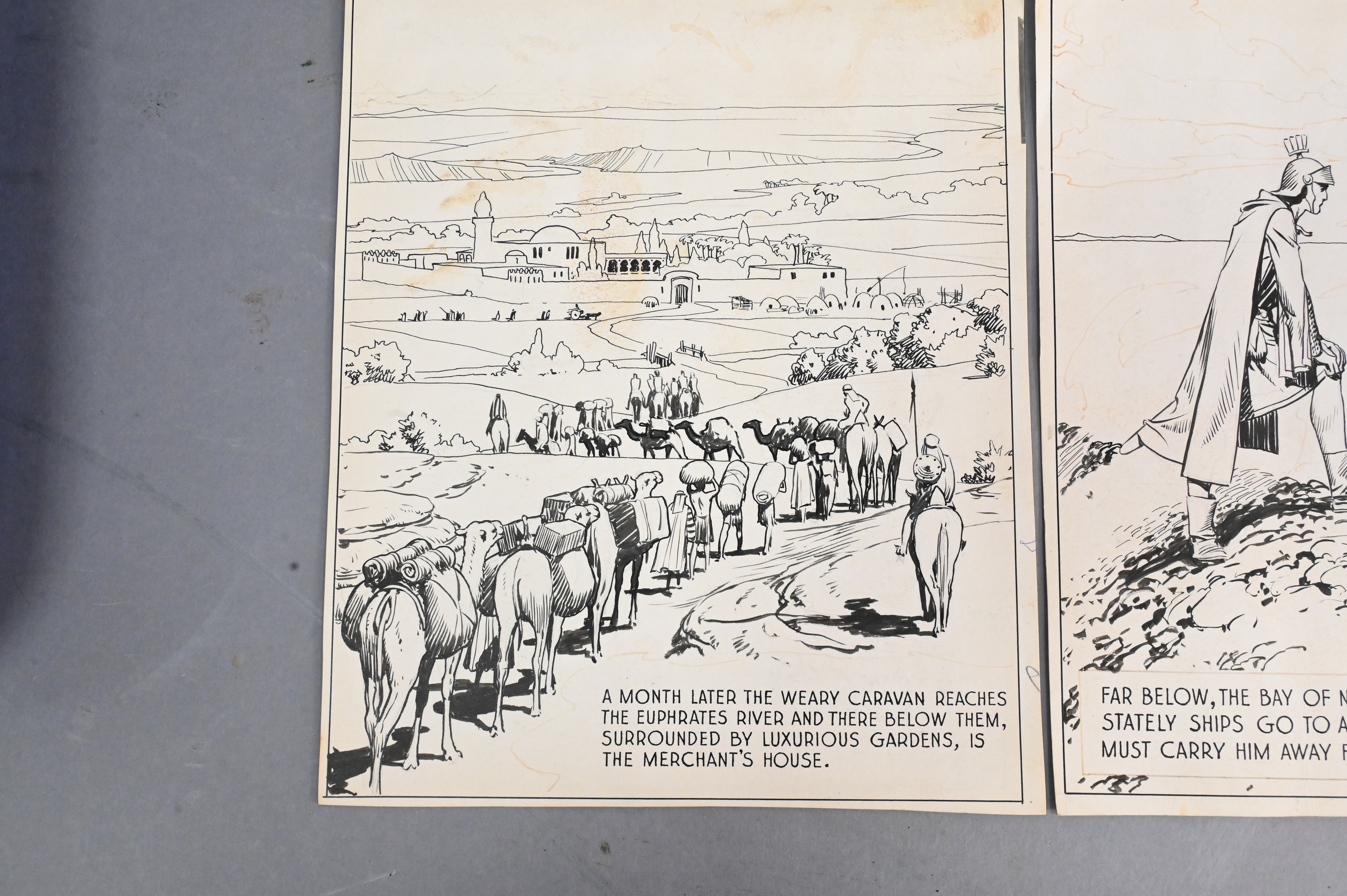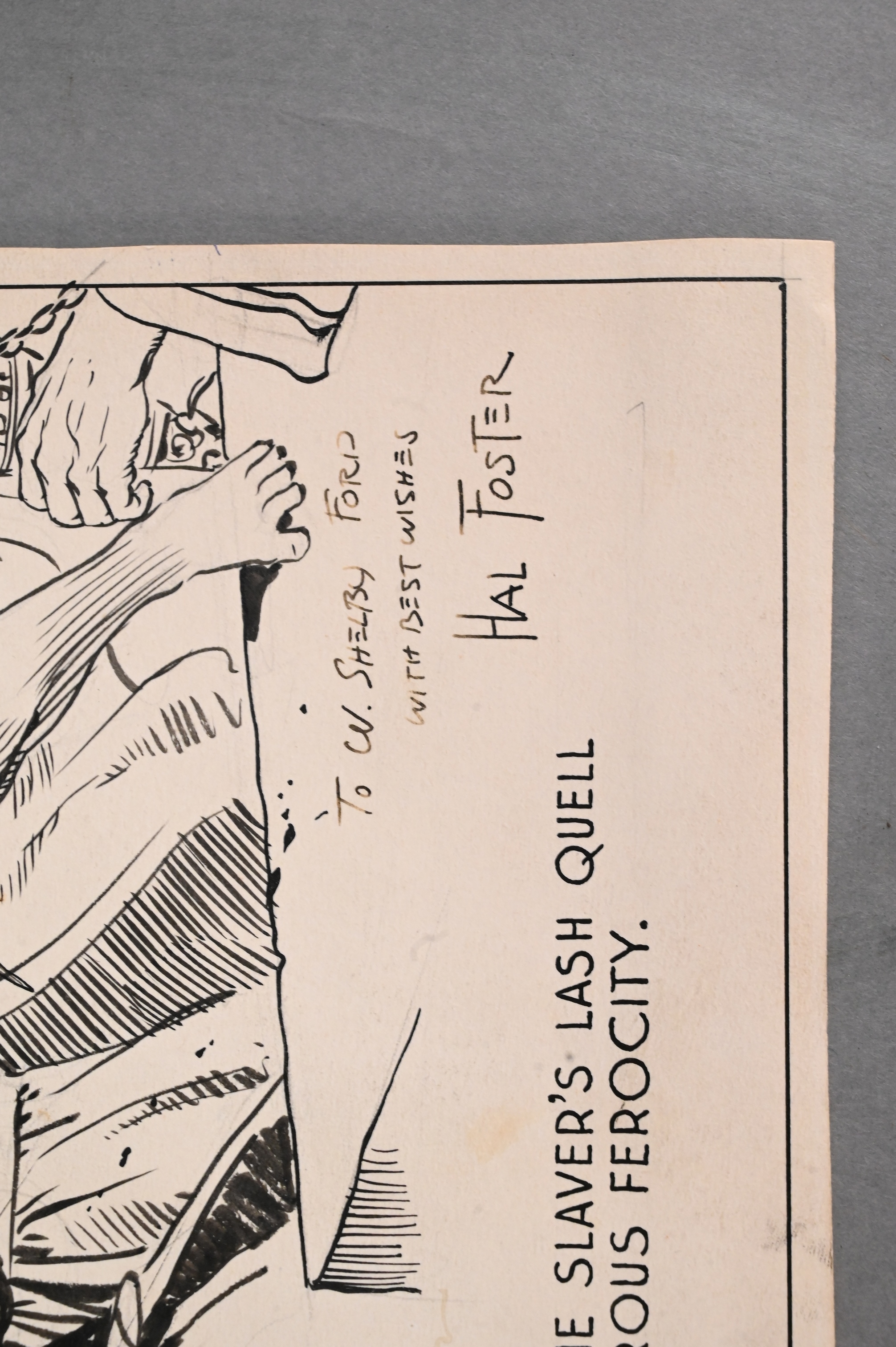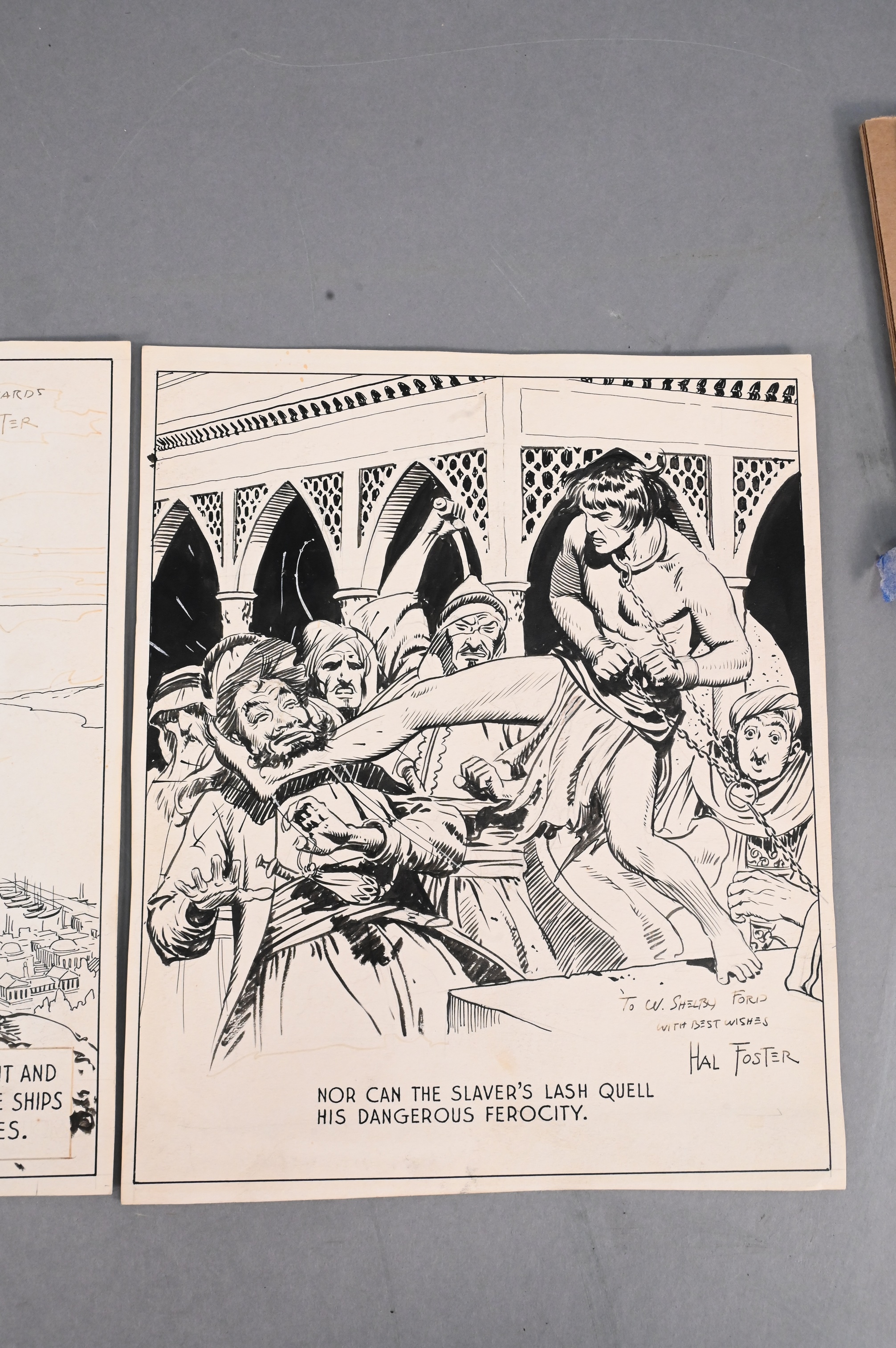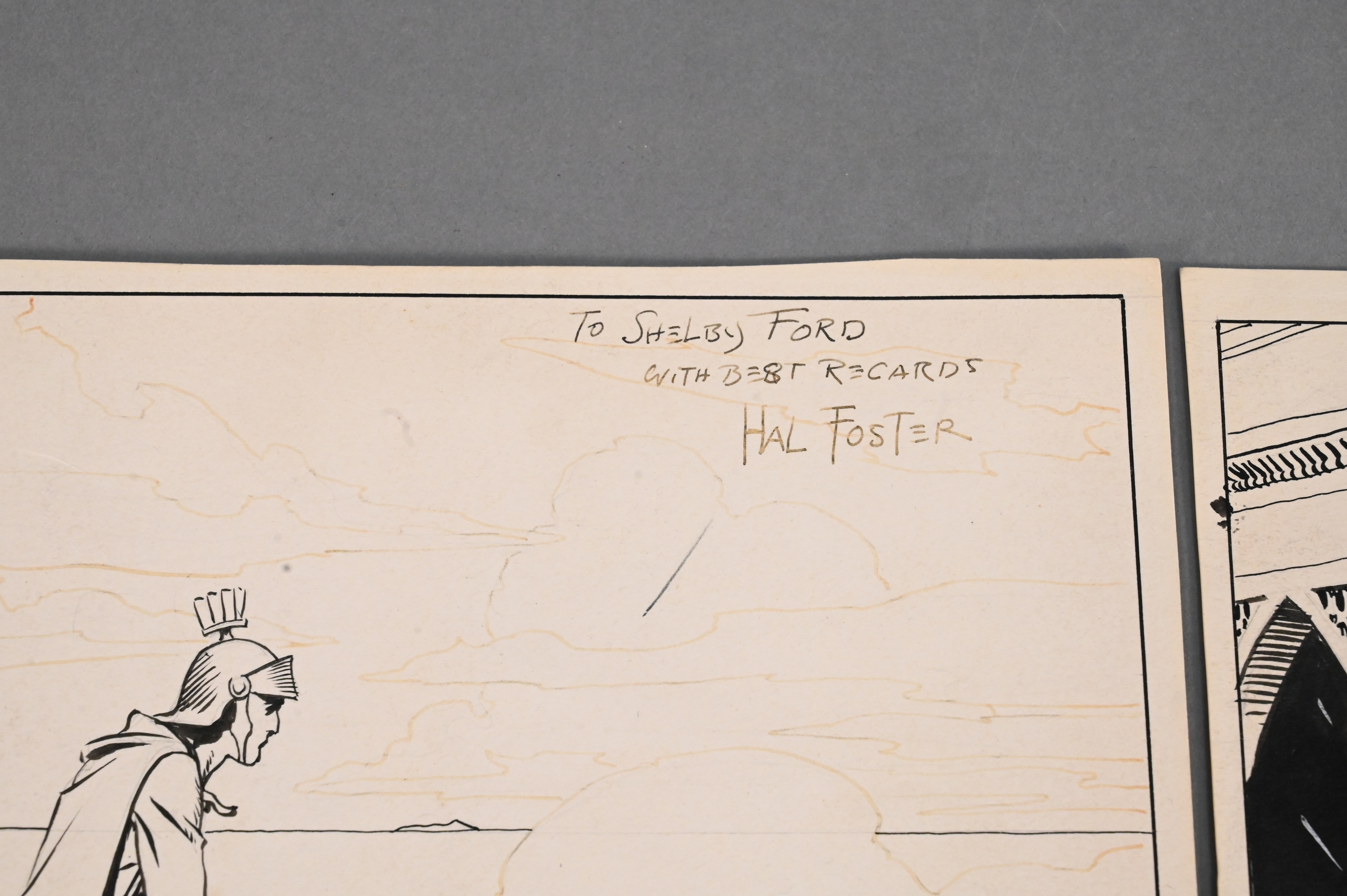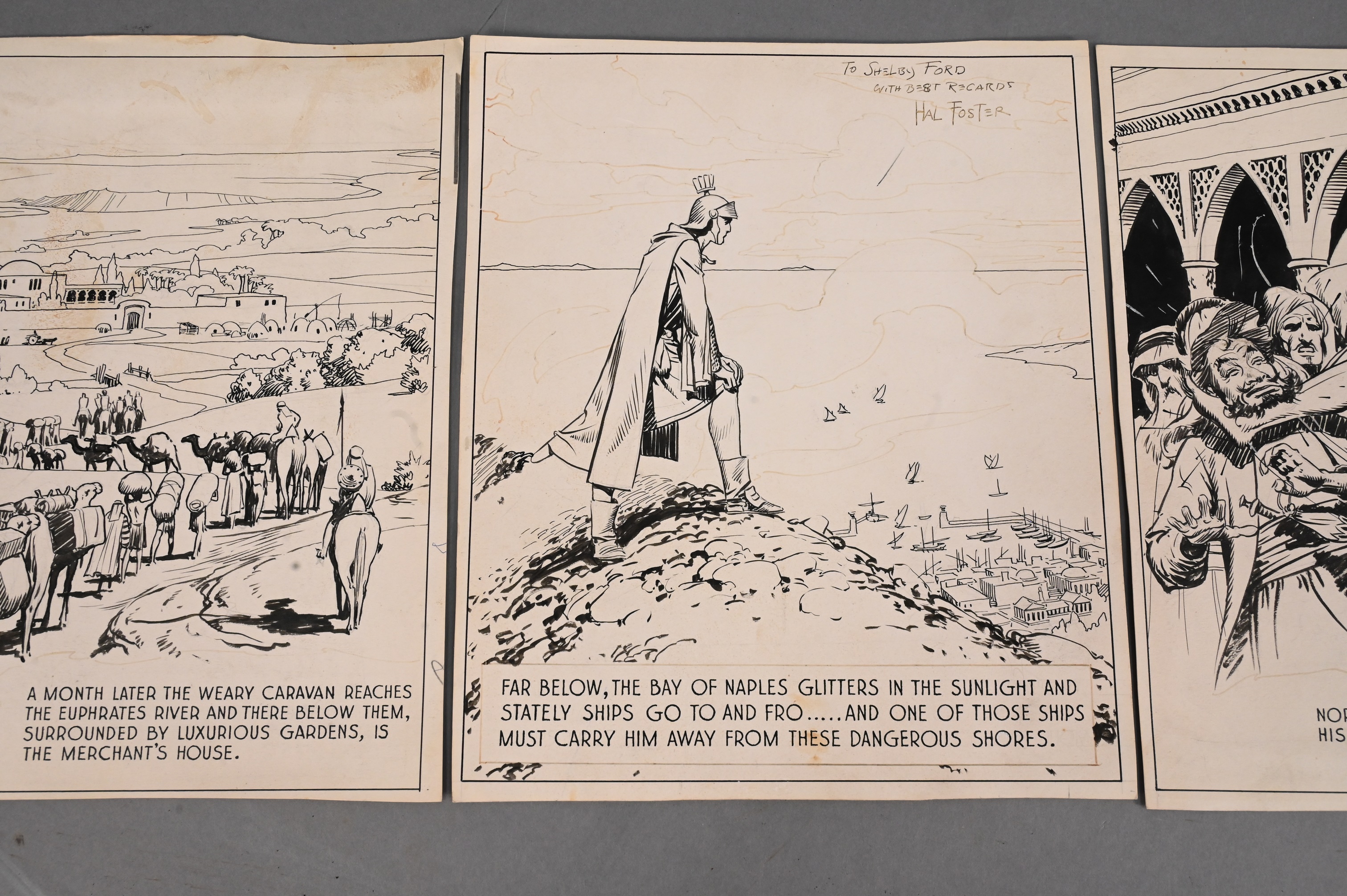 Three Hal Foster Pen and Ink on Paper, Prince Valiant, Sunday comic strip panel, each 9″ x 10 1/2″.