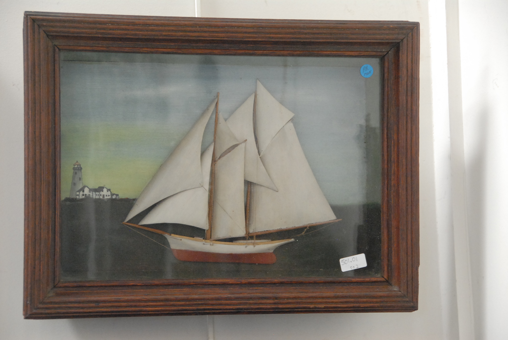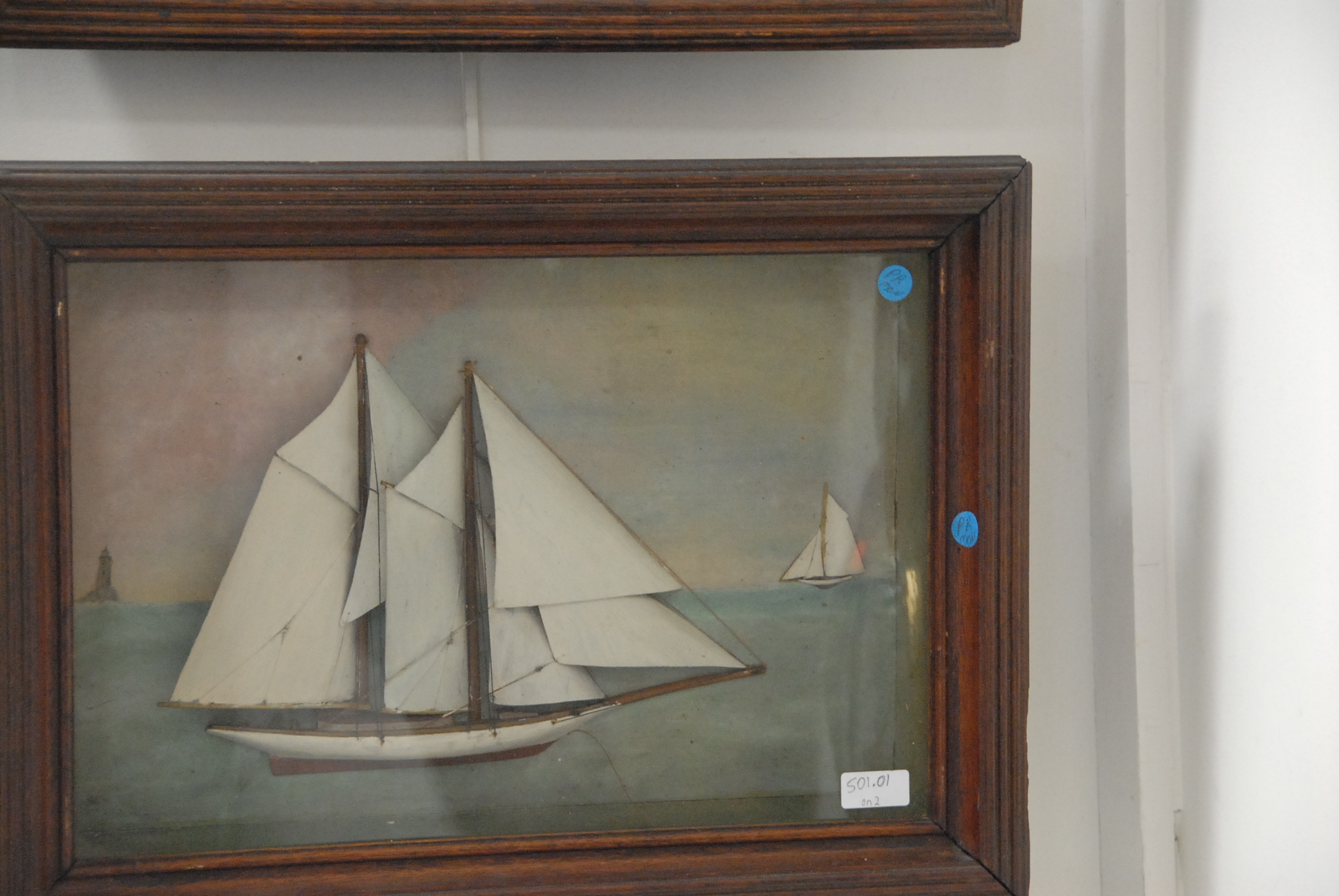 Lot 501a: Pair of diarama with masted sailing vessel in