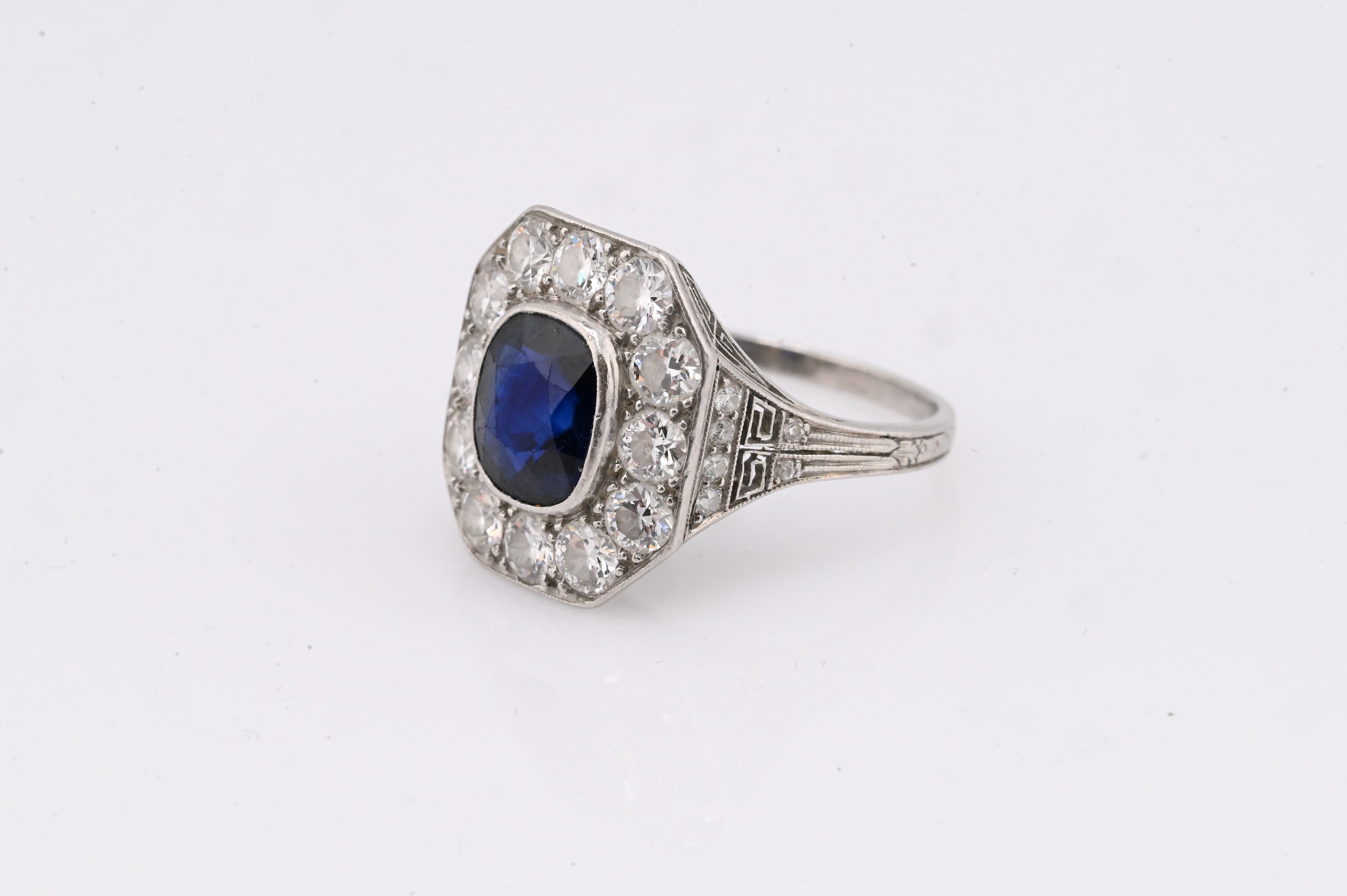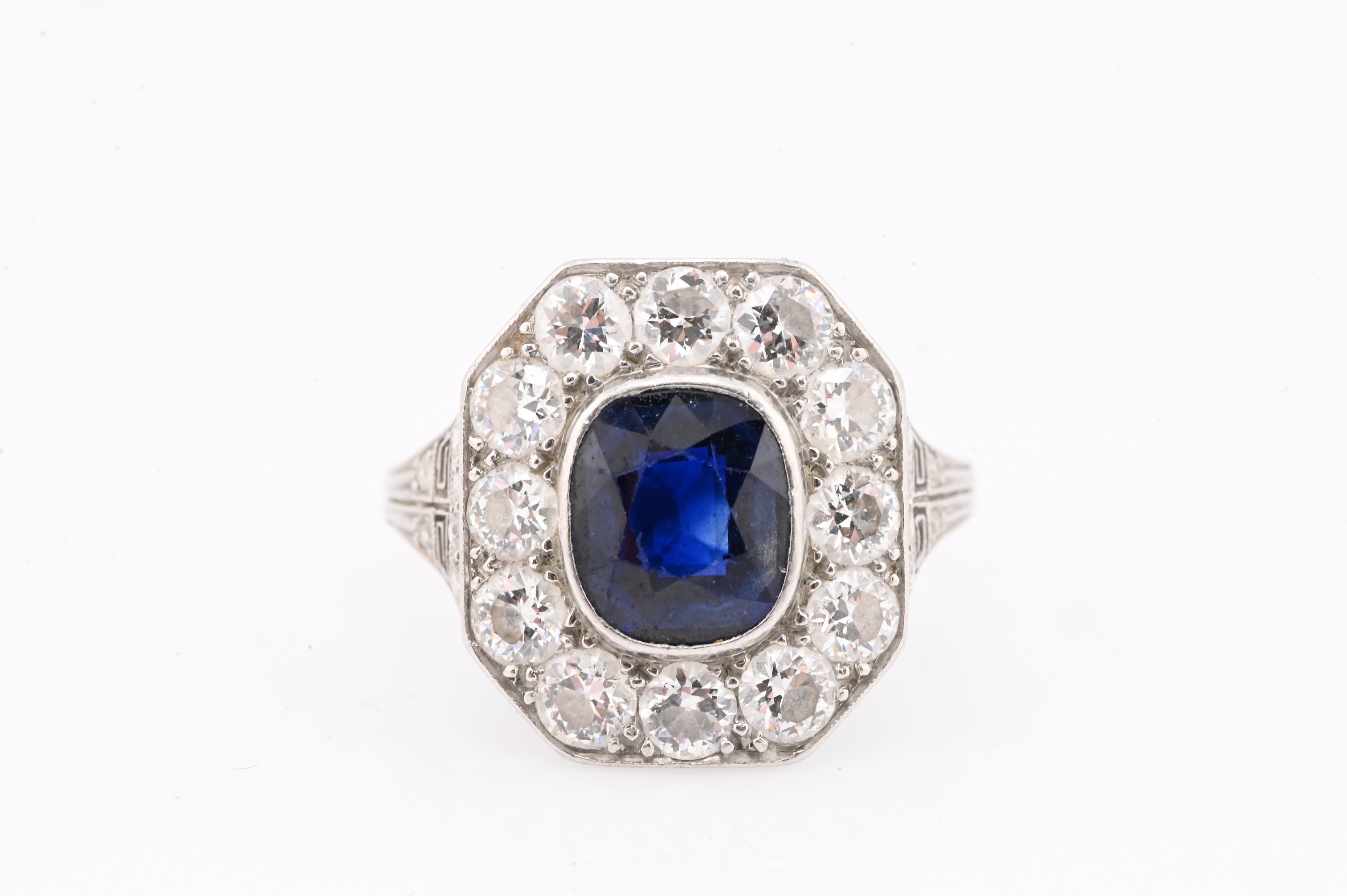 Lot 502: Marcus Platinum Sapphire and Diamond Ring