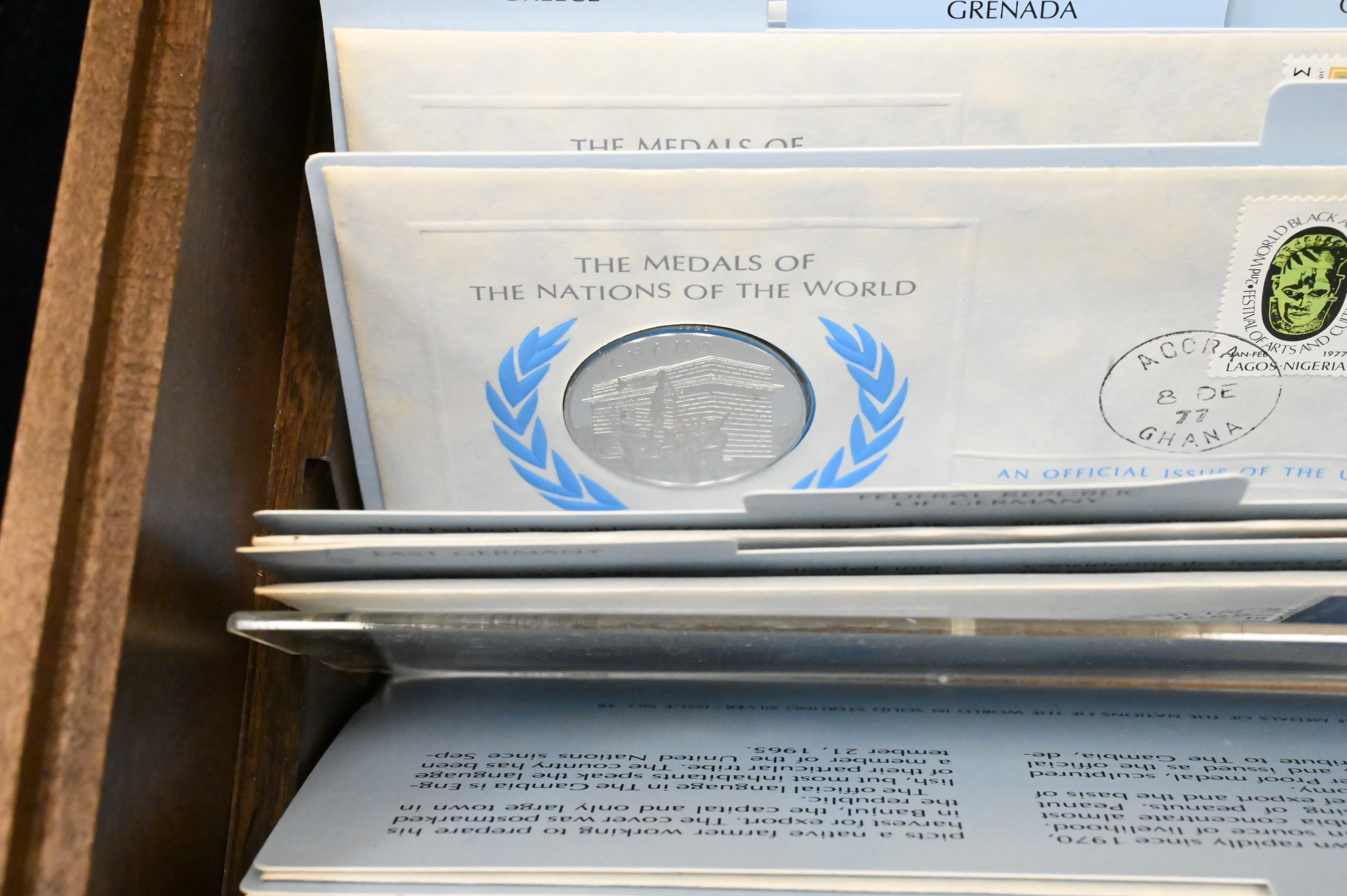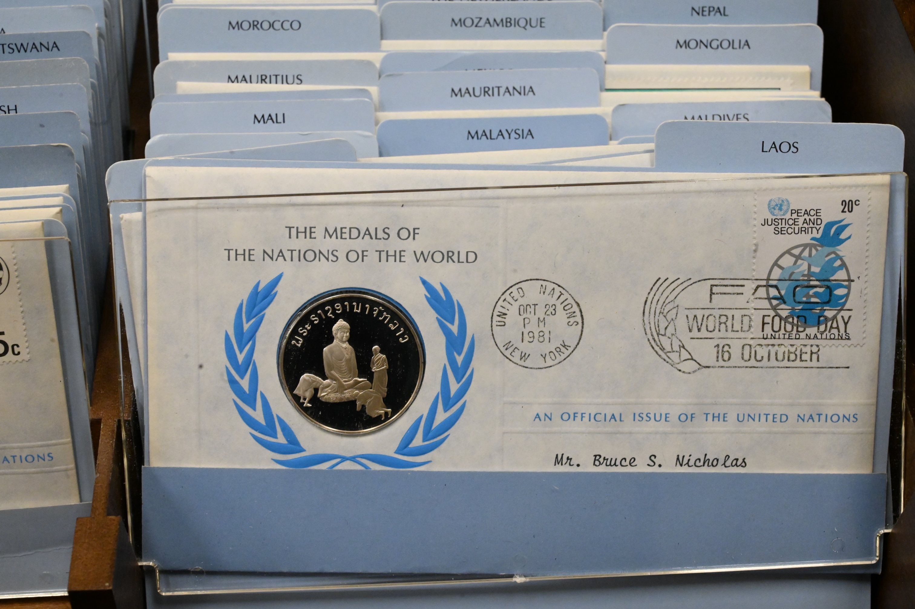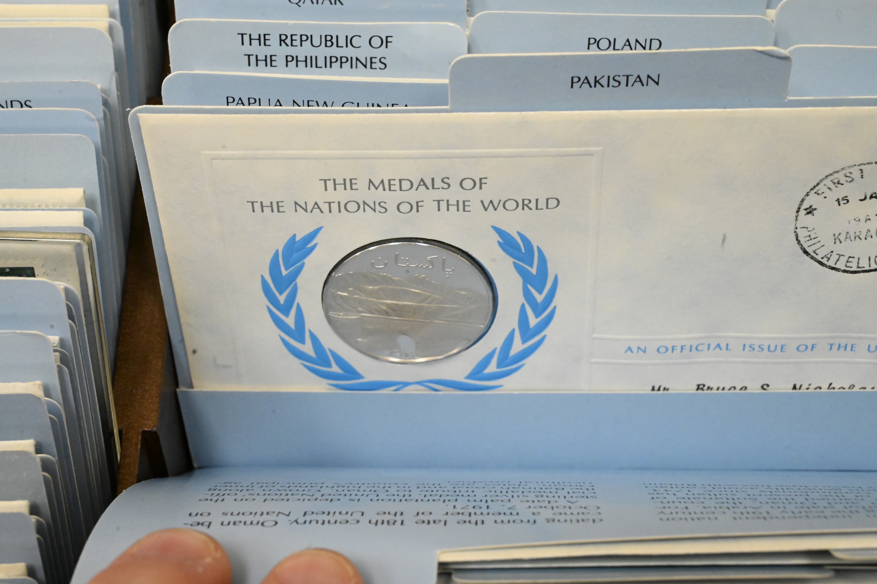 Medals of the Nations of the World, 141 pieces, 49 ounces sterling silver.