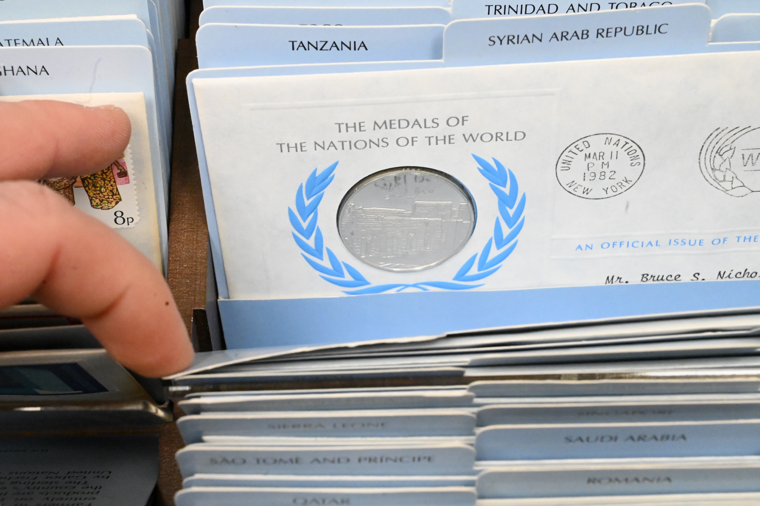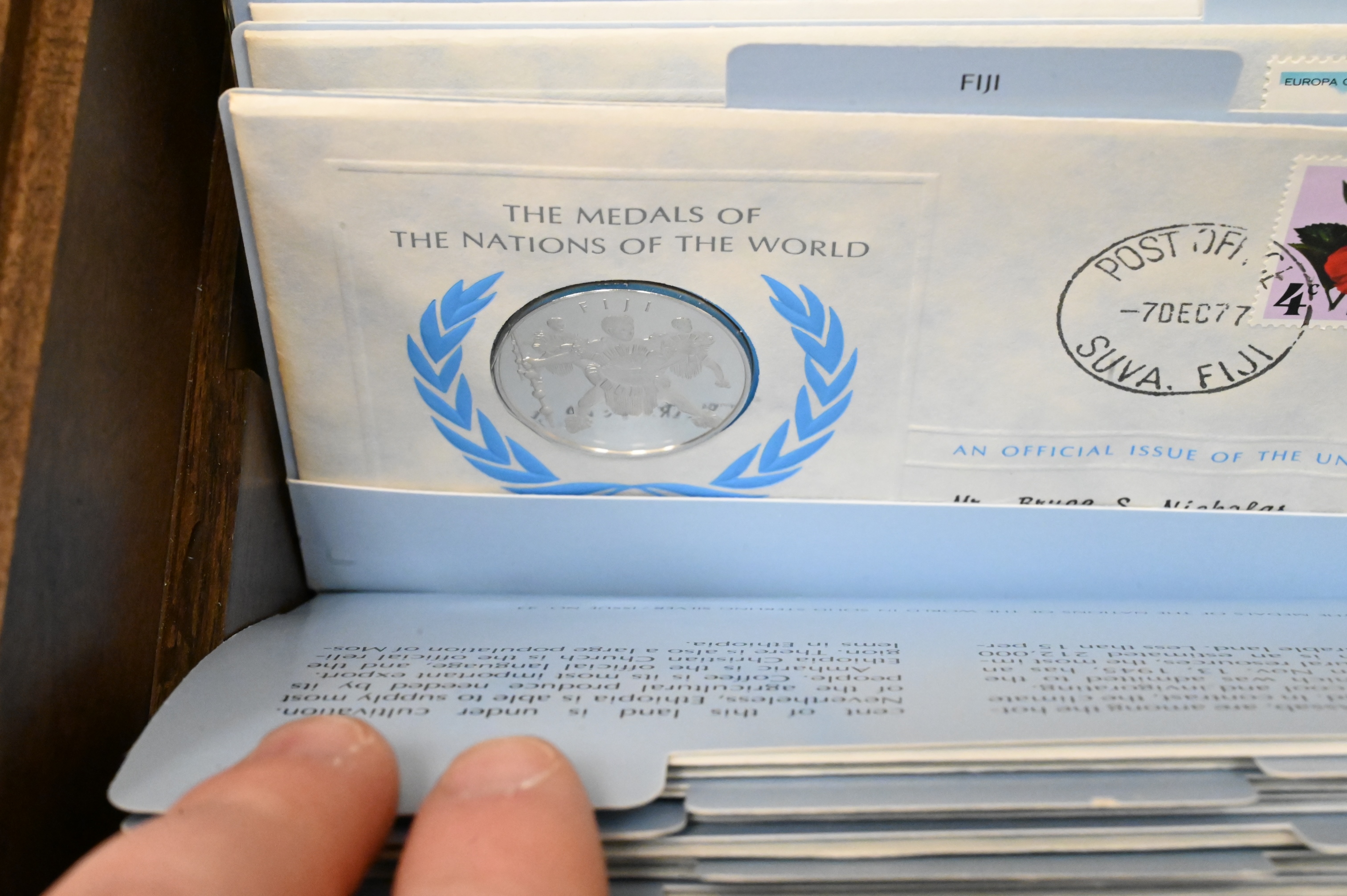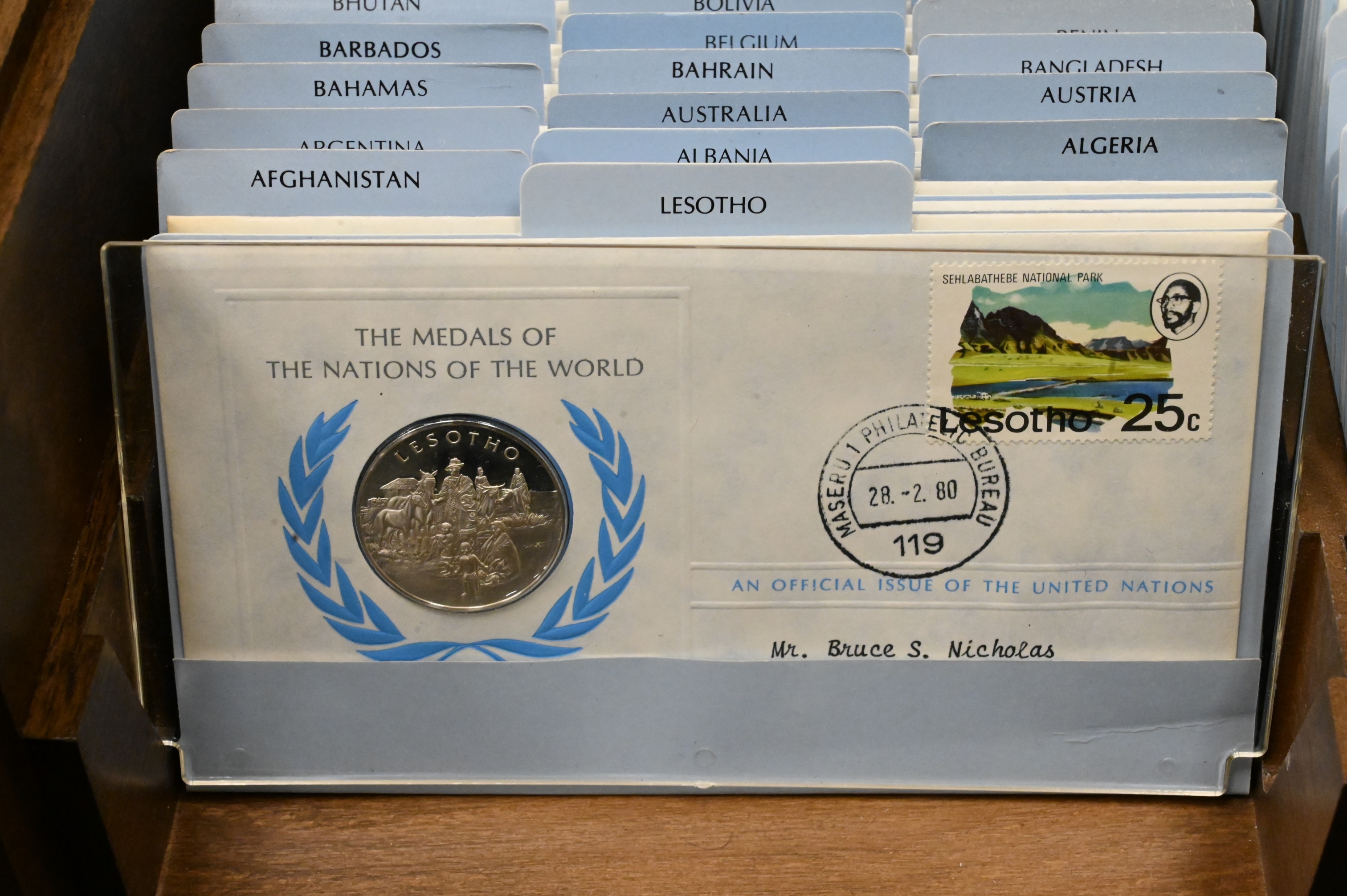 Medals of the Nations of the World, 141 pieces, 49 ounces sterling silver.