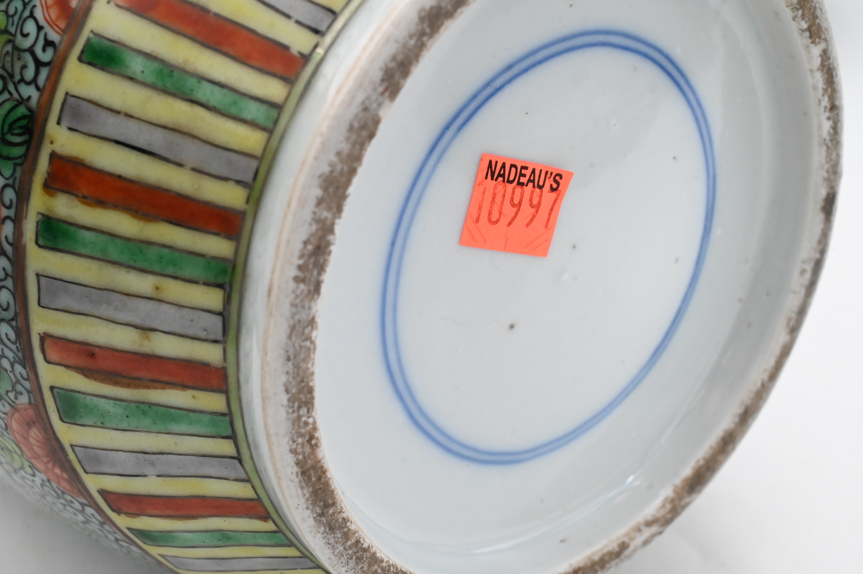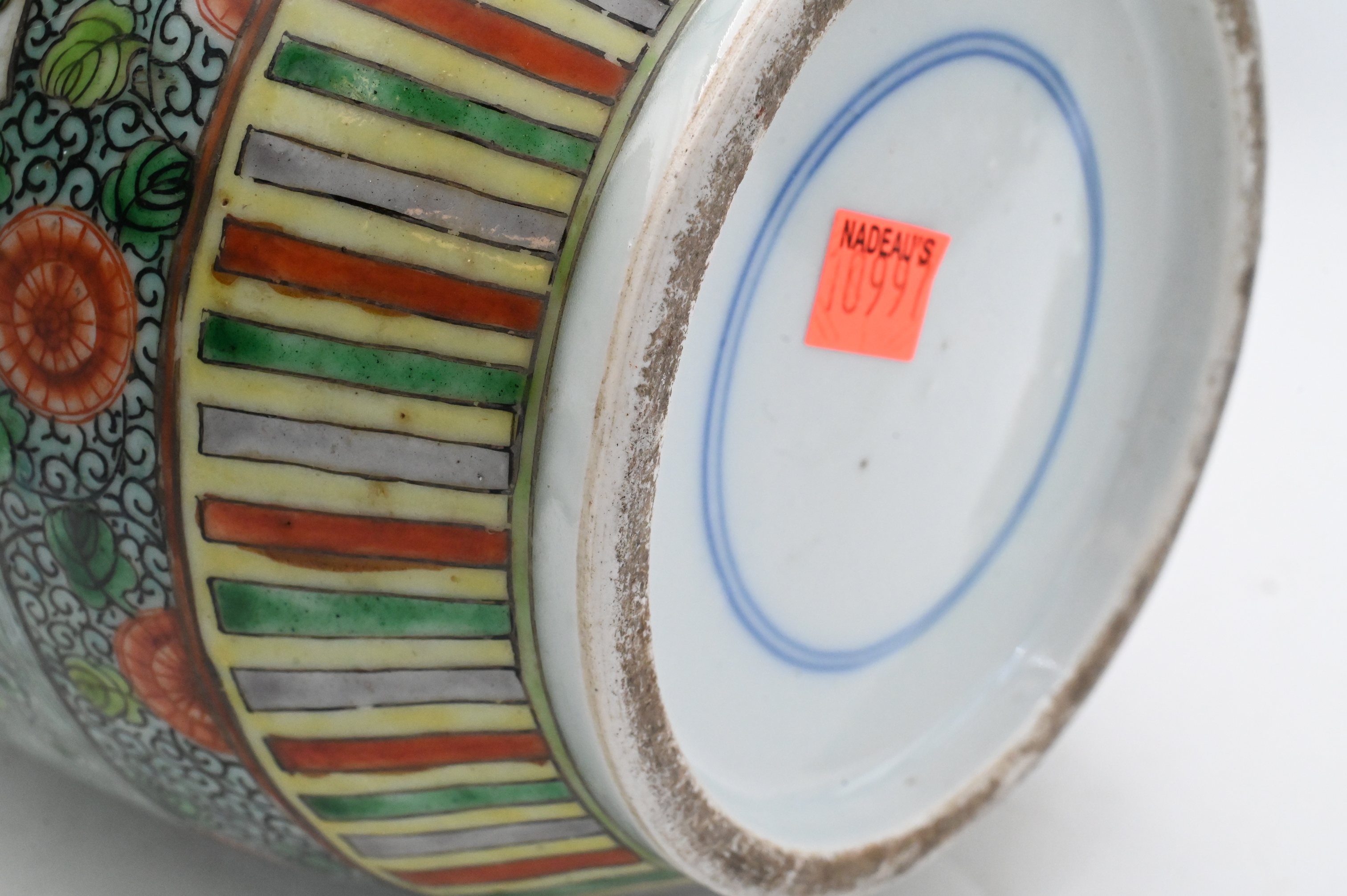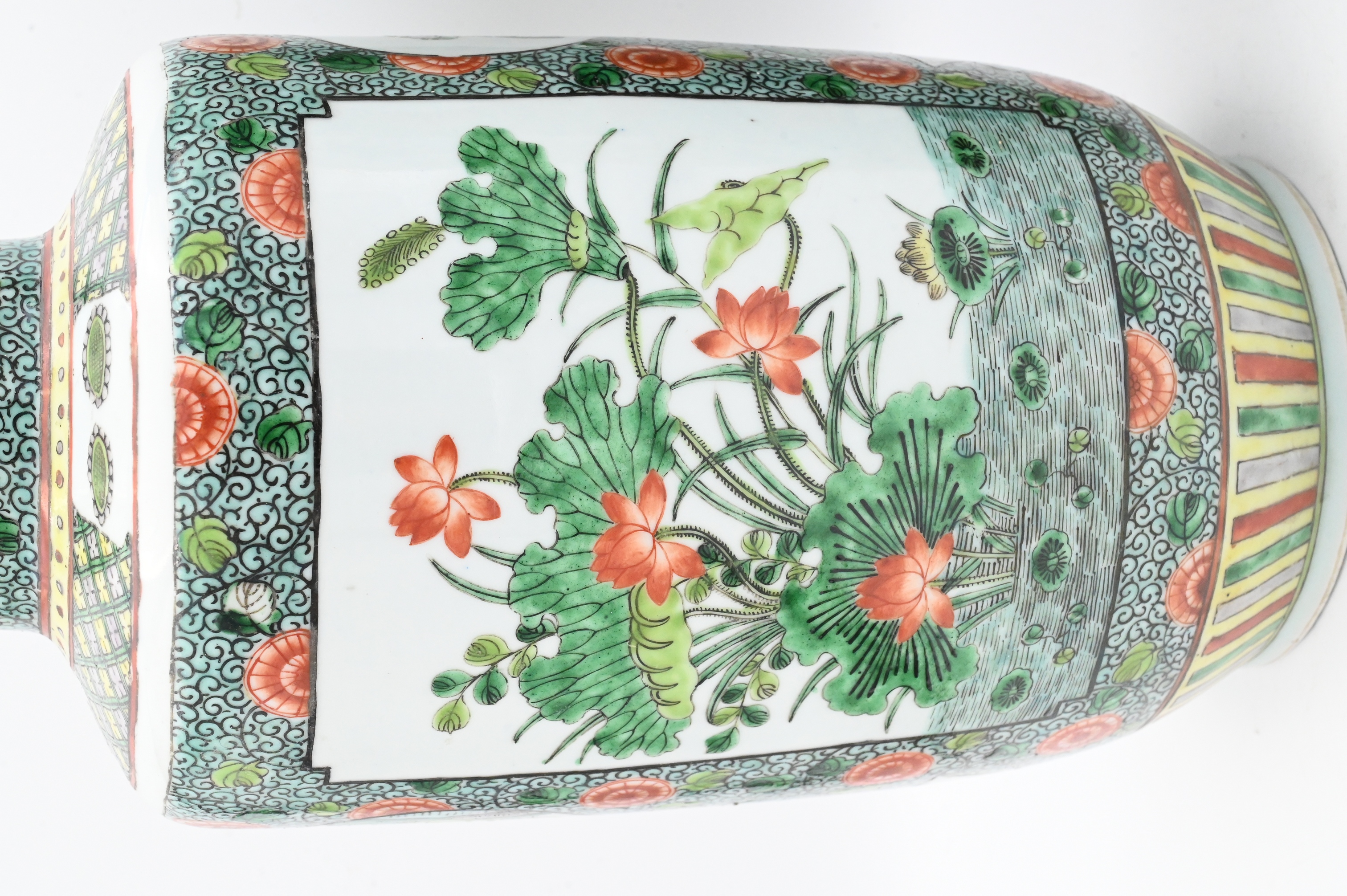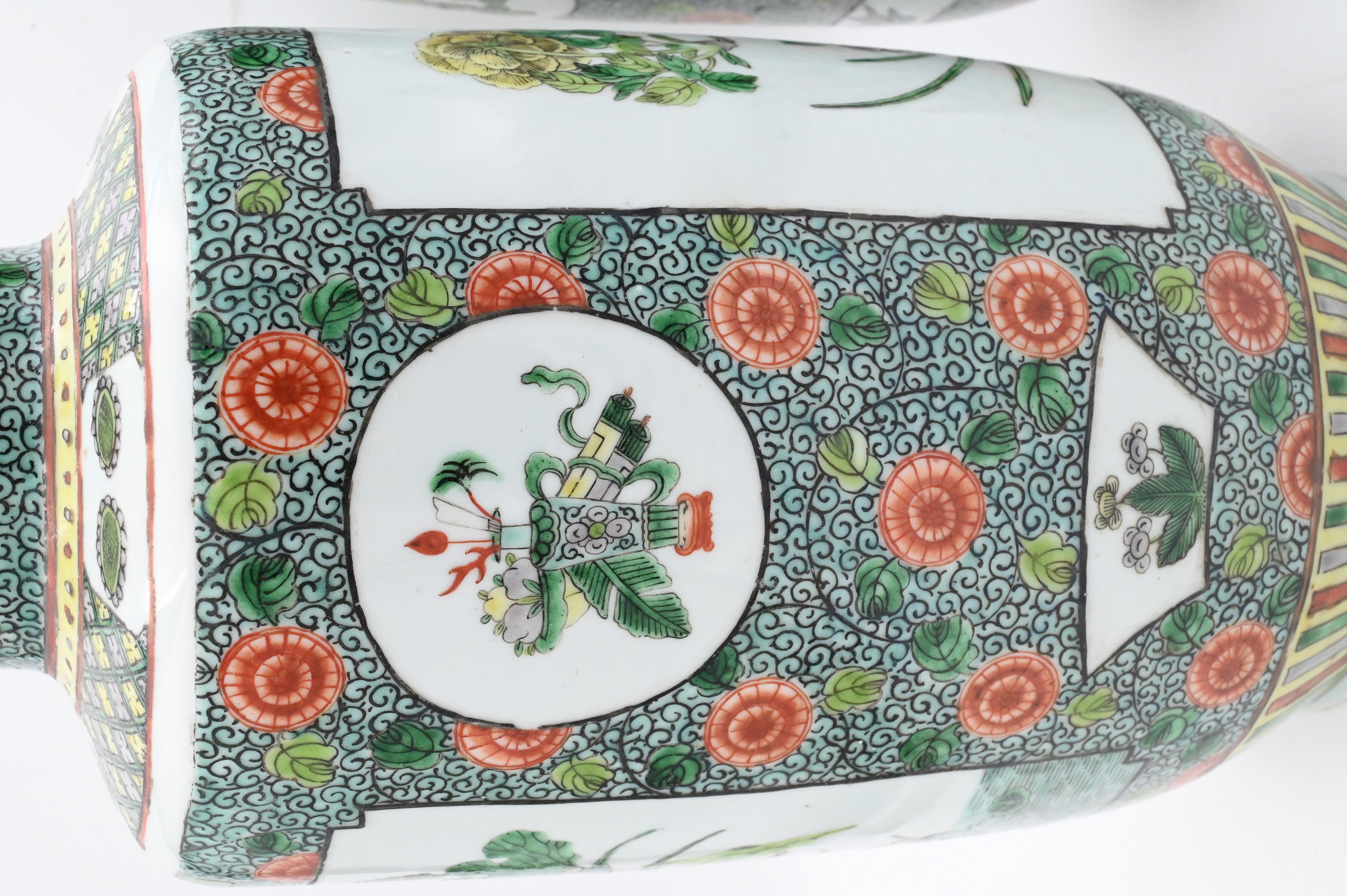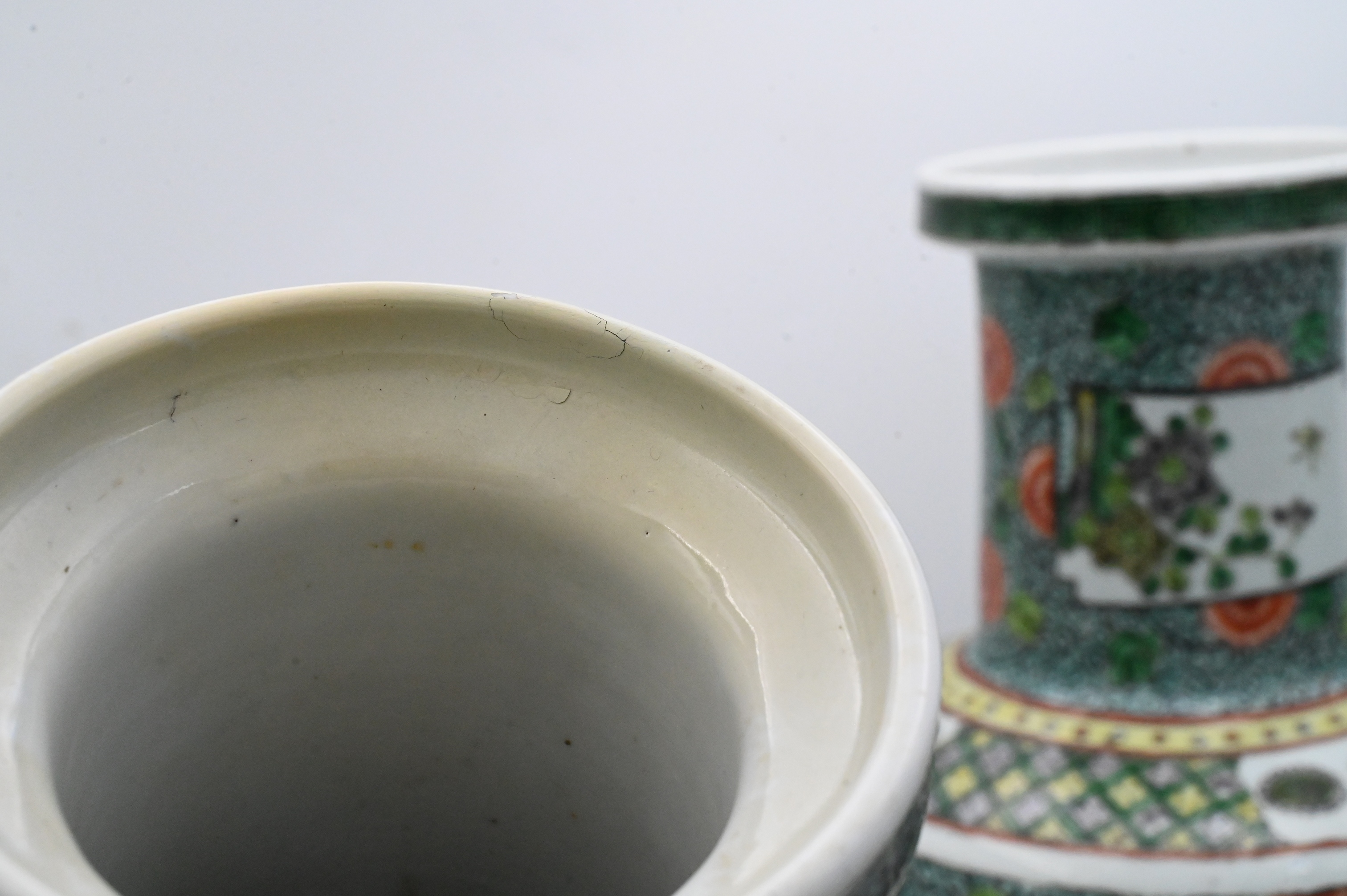 Lot 502: Pair of Chinese Famille Verte Rouleau Vases