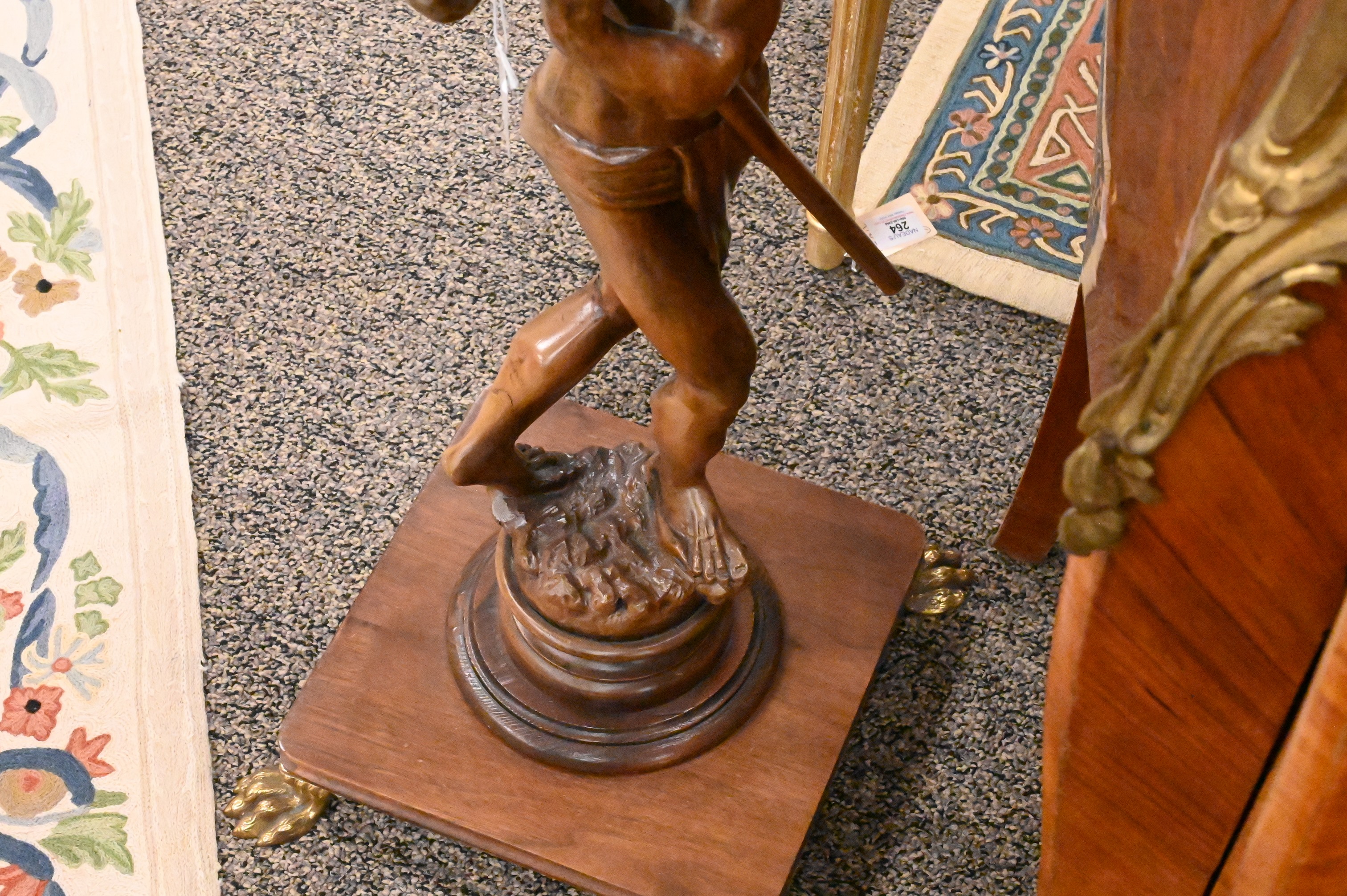 Condition: leg having male figure repaired at both ankles, both arms, above the head, bottom veneer surface lifting slightly
