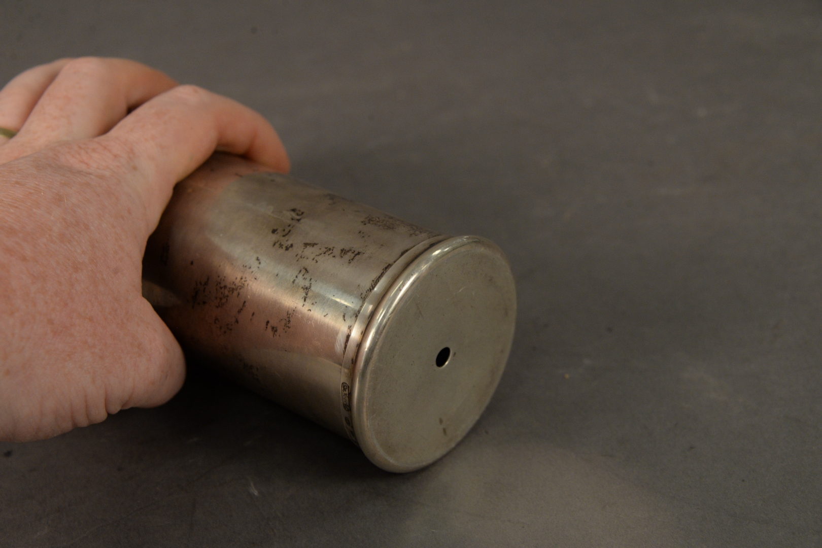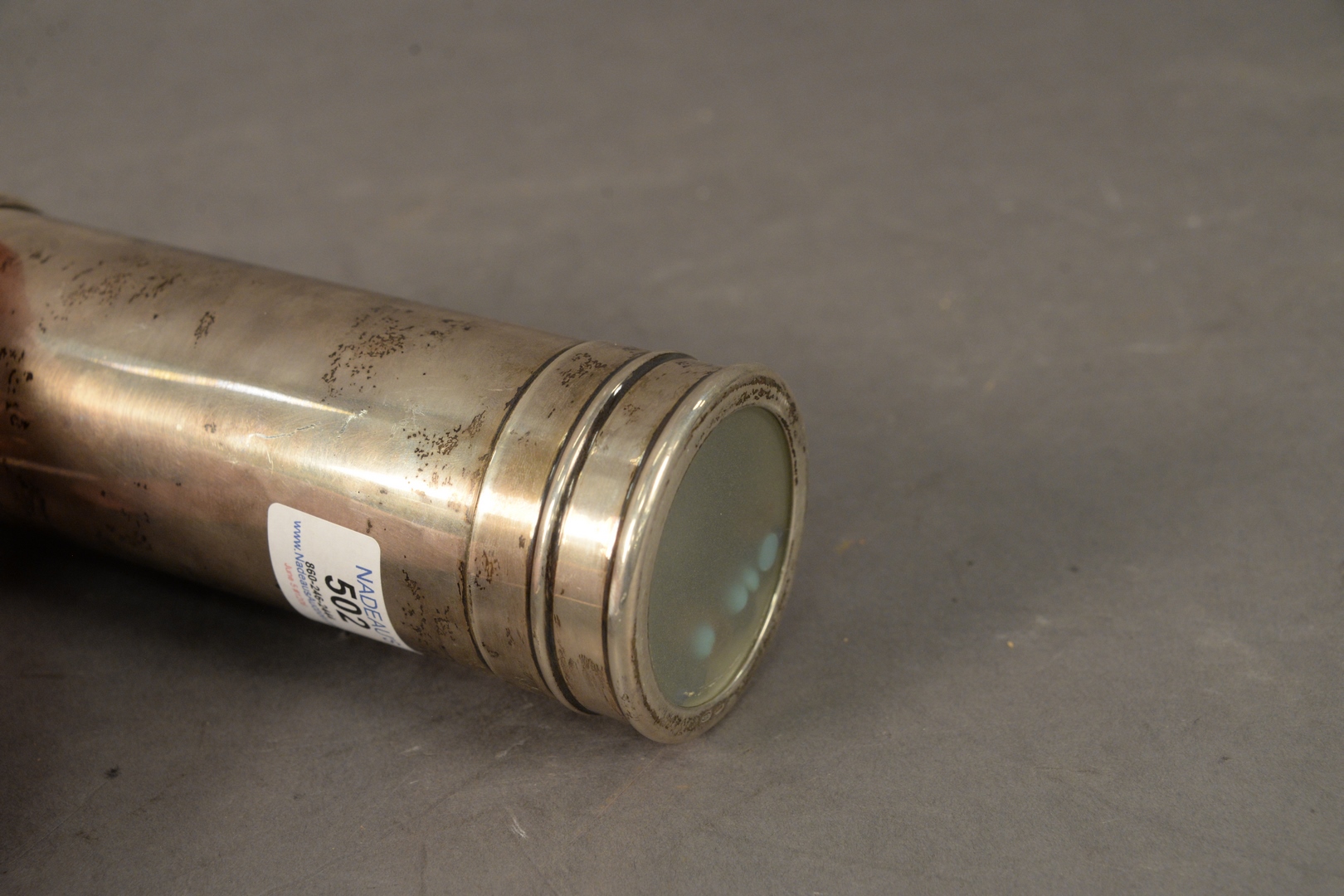 Lot 502: Sterling Silver Kaleidoscope, marked ‘925 Italy’ to the rim, height 7 1/2 inches, diameter 2 1/2 inches, weighted.