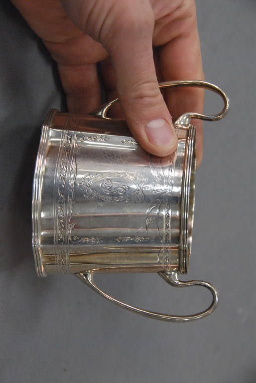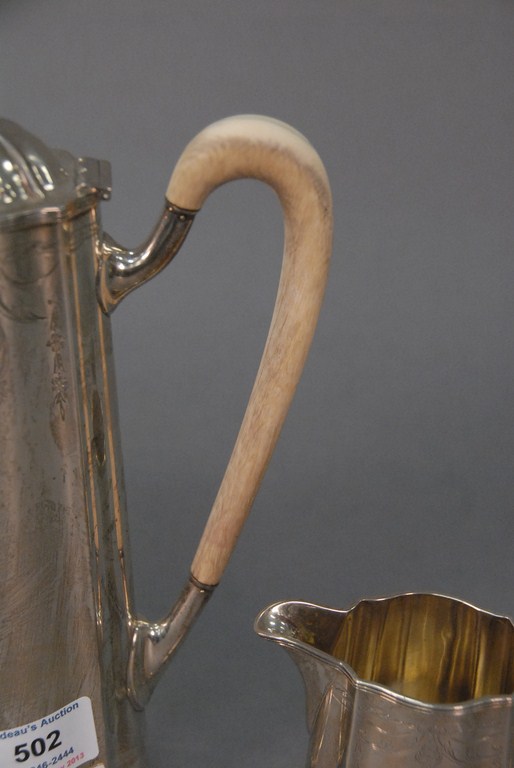 Lot 502: Sterling silver three piece tea set with tall teapot with ivory handle. Provenance: Estate of Charles Archibald Goodwin and Ruth Che…