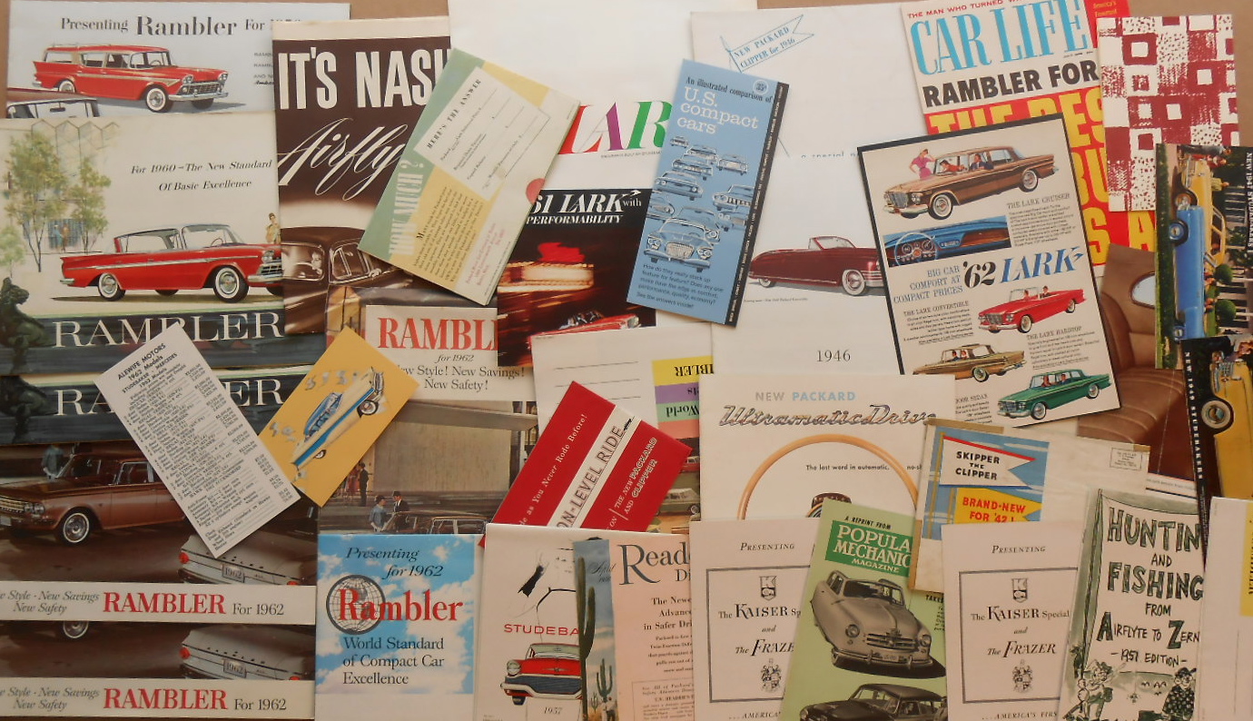 Lot 503: 1939-1962 Kaiser, Frazer, Hudson, Packard, Nash, Stude, Rambler, Jeepster – 50 total, 30 lg, 20 small