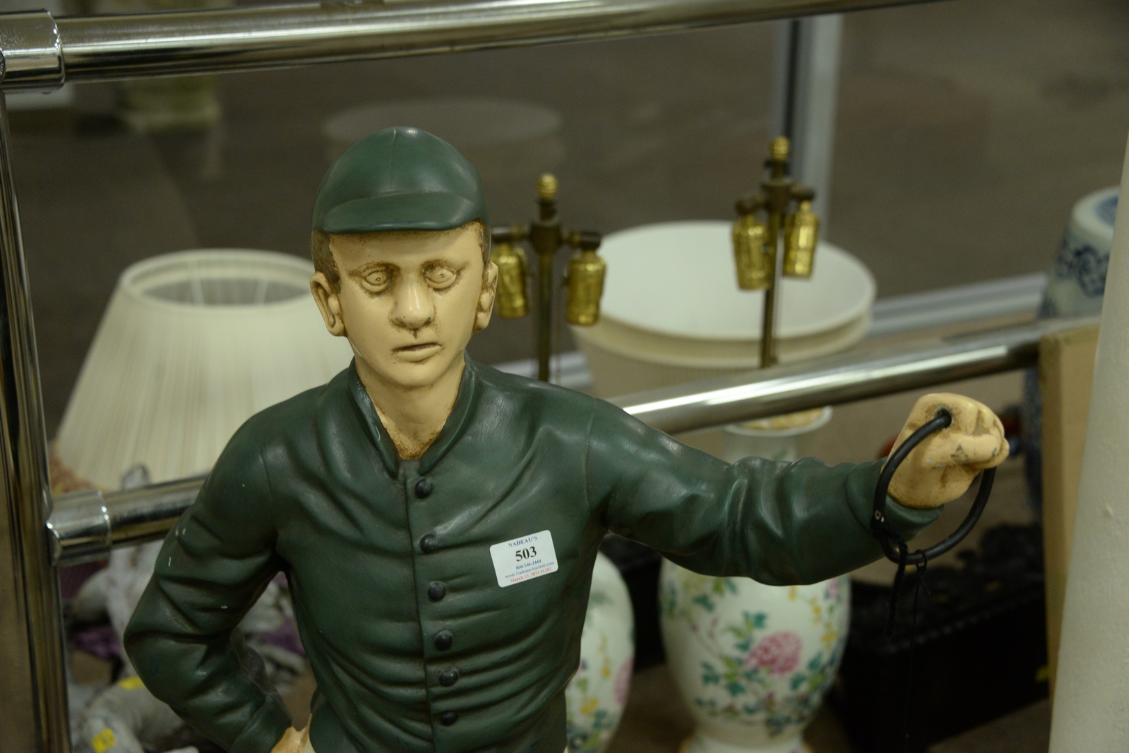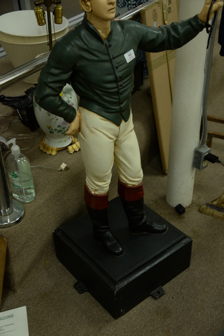 Lot 503: Cast Iron painted Hitching post, modelled as a jockey, height 48 inches, purchased from Christie’s, South Kensington, September 27, …