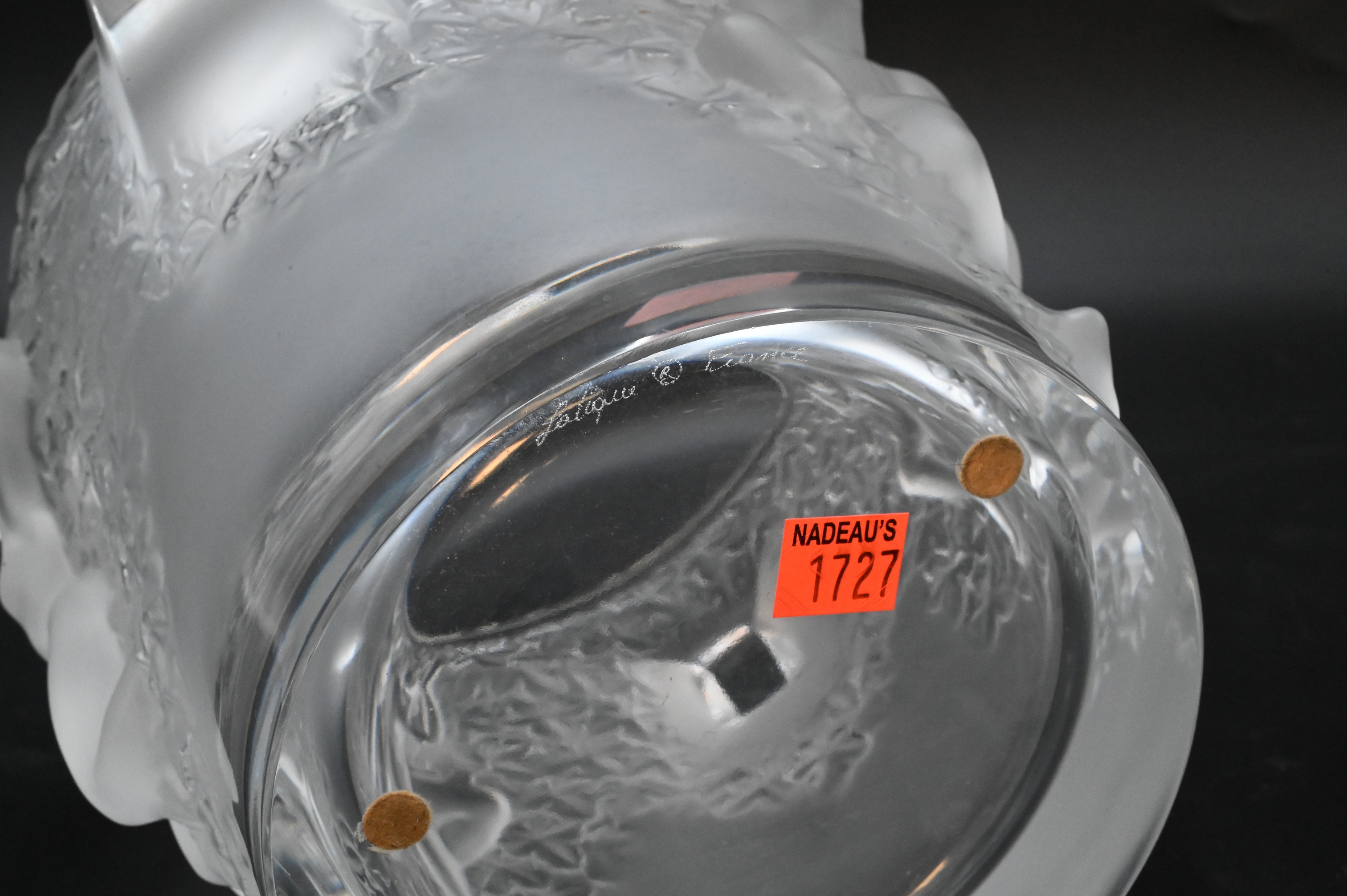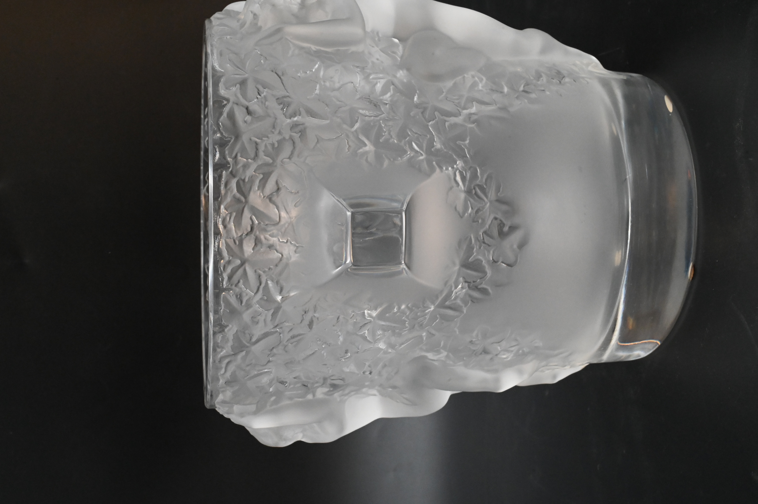 having frosted putti figures on the exterior, marked Lalique France