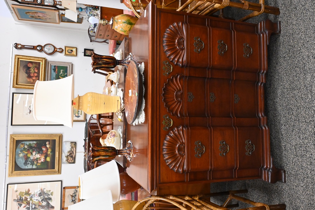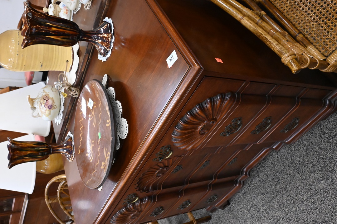 Mahogany Chippendale Style Triple Shell Carved Chest, height 35 inches, width 40 inches, top 20″ x 40″.
