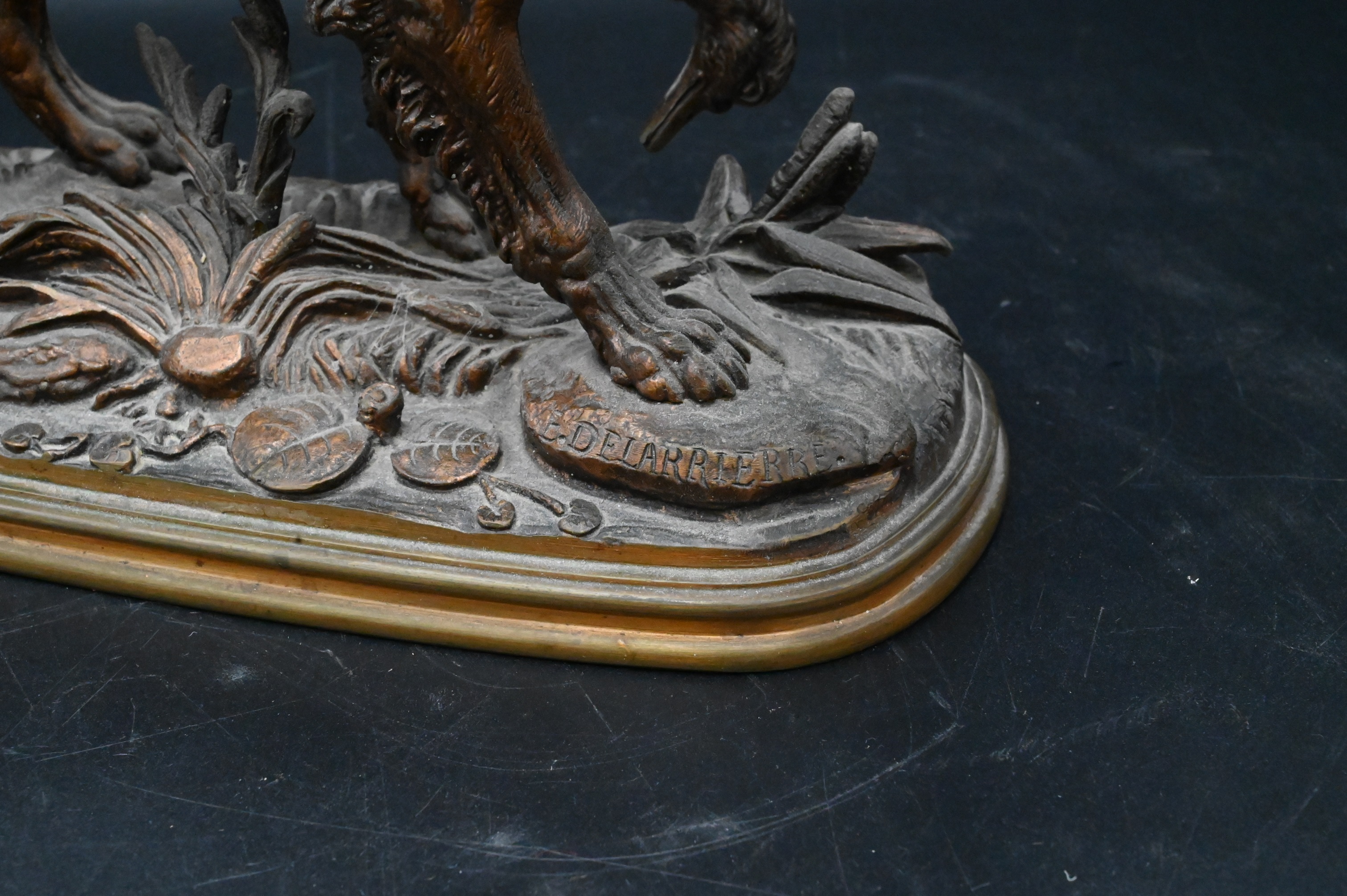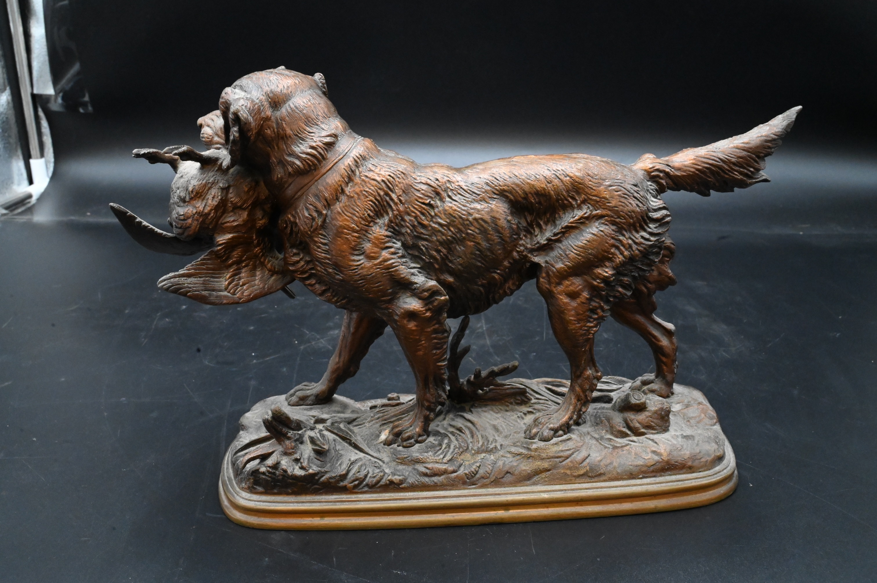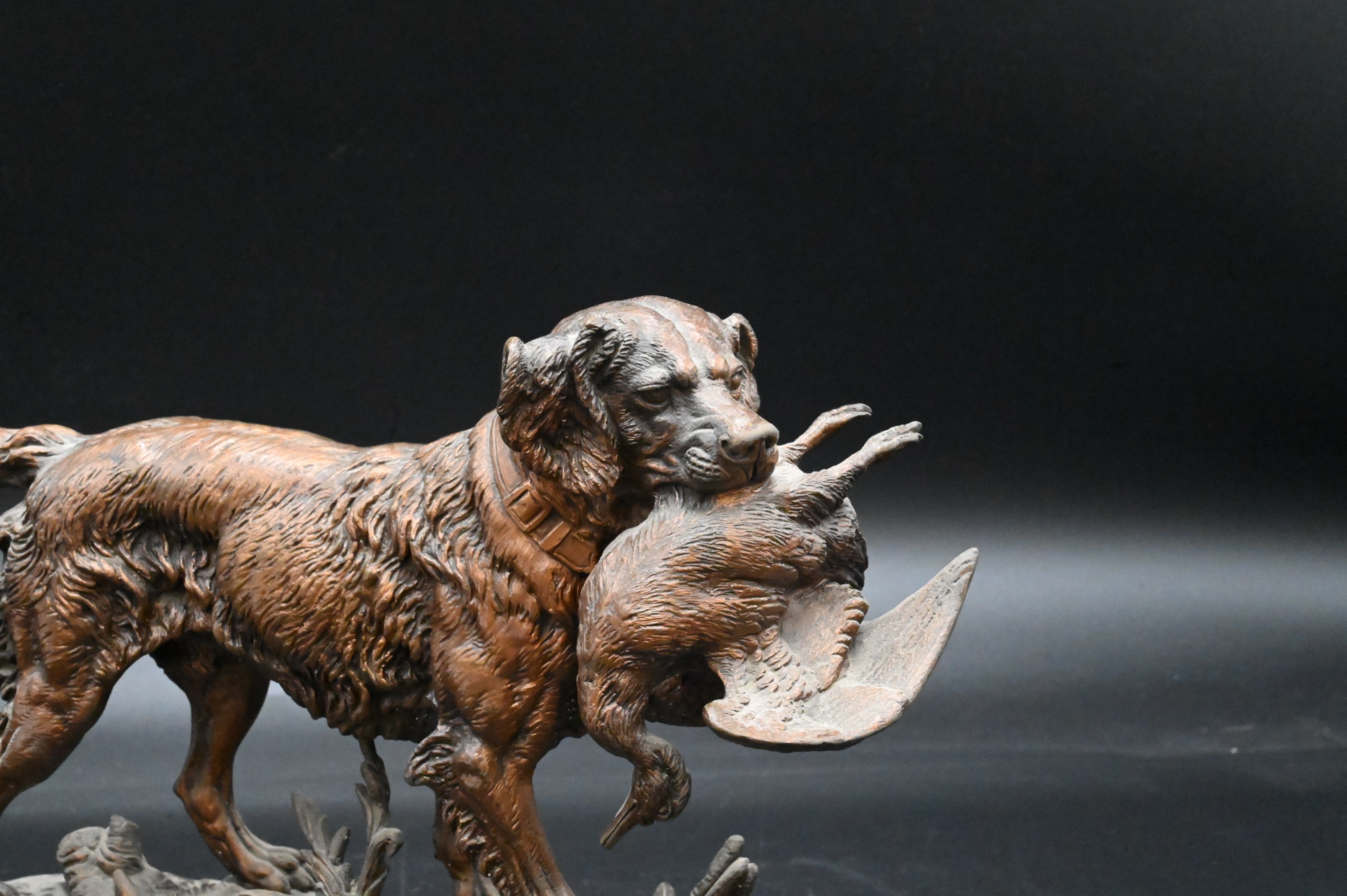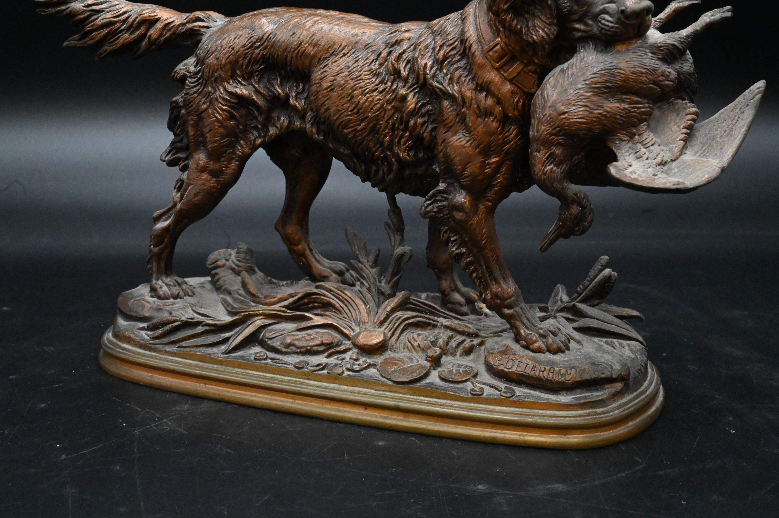 Paul Edouard Delabrierre (French, 1829 – 1912), “Epagneul Delivering a duck”, bronze, signed “E. Delabrierre” on rock, height 8 1/2 inches, width 13 inches.